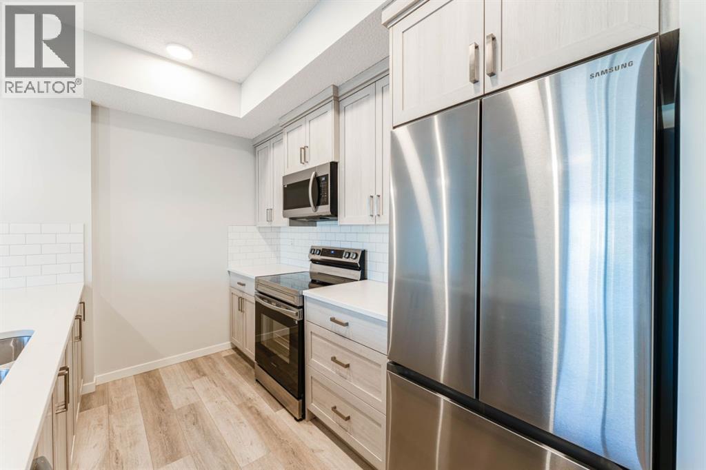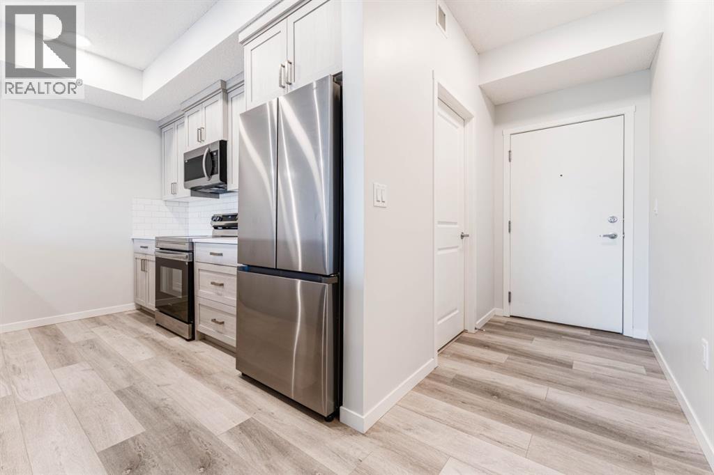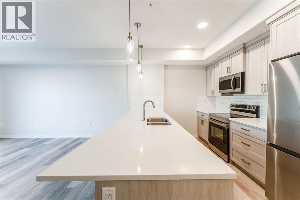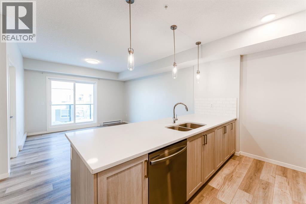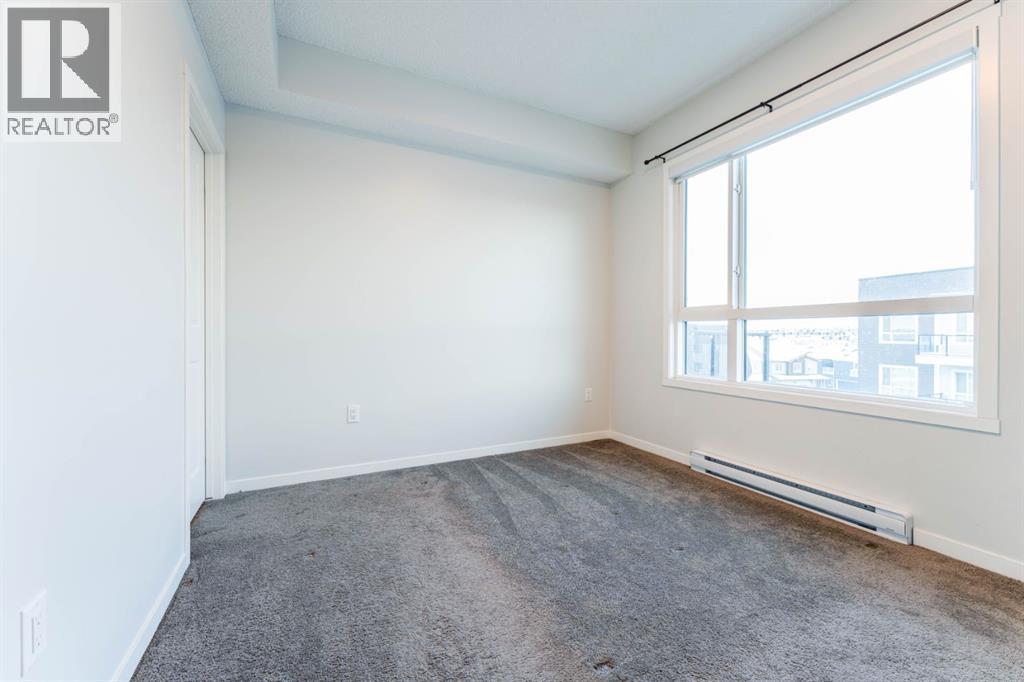 Welcome to this beautifully appointed 2-bedroom, 2-bathroom condo, perfectly located in the vibrant community of Carrington. Designed with a blend of modern style and everyday practicality, this bright, spacious home is ideal for first-time buyers, downsizers, or investors.Step into an open-concept floor plan highlighted by 9-foot ceilings and luxury vinyl plank flooring that flows throughout. Large windows fill the space with natural light, creating a warm and inviting atmosphere perfect for relaxing or hosting friends.The contemporary kitchen stands out with its full-height cabinetry, sleek quartz countertops, stainless steel appliances, and a large island with seating—ideal for casual dining or entertaining. The unit also includes titled underground parking for added convenience.The living area flows effortlessly onto a private balcony, offering a quiet space for your morning coffee or evening downtime. A thoughtful split-bedroom layout provides exceptional privacy—great for roommates, guests, or a dedicated home office.Both bedrooms are generously sized, with the primary suite featuring a walk-through closet and a modern ensuite. A second full bathroom and an oversized laundry/storage room add even more comfort and functionality.Located just steps from beautiful parks, walking paths, and Carrington’s growing mix of shops and amenities, this condo also offers quick access to Stoney Trail and Deerfoot Trail, making travel across Calgary simple and convenient.Stylish, practical, and perfectly situated—this Carrington condo is ready for its next owner. Book your private showing today. (31438780)