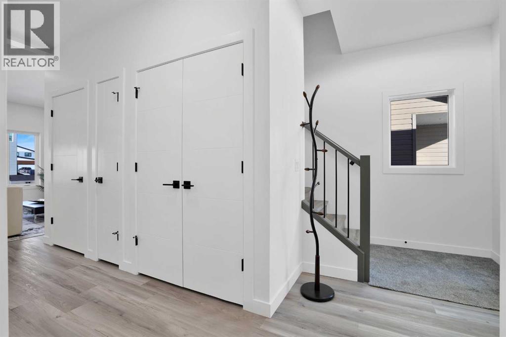Welcome to the RUBY built by Award Winning Abbey Platinum Master Built on the highly desirable Palmer Circle in Blackfalds. This 1586 sq foot 2 storey has an amazing modern sight lines and curb appeal with stunning brick accents, wood grain metal siding . A spacious entrance greets you as you enter this 3 bedroom 2.5 bath home. An open floor plan , living room with a fireplace , large kitchen with amazing backsplash and quartz countertops . As you take a walk upstairs you will find a Primary bedroom with a 3 pcs ensuite, as well as 2 more ample sized bedrooms and a 4 pc bath. This home has an upstairs laundry are for added convivence. The unfinished basement features 9 foot ceilings and can accommodate a 4 pcs bath, family room and a bedroom, just add your own creative design. (31440419)