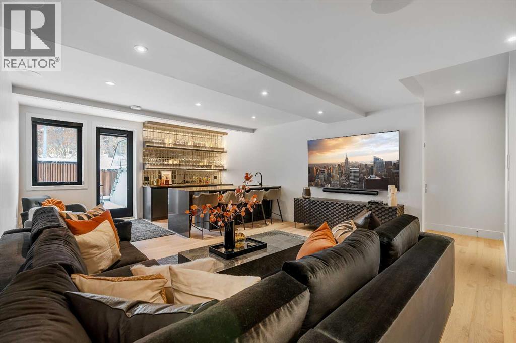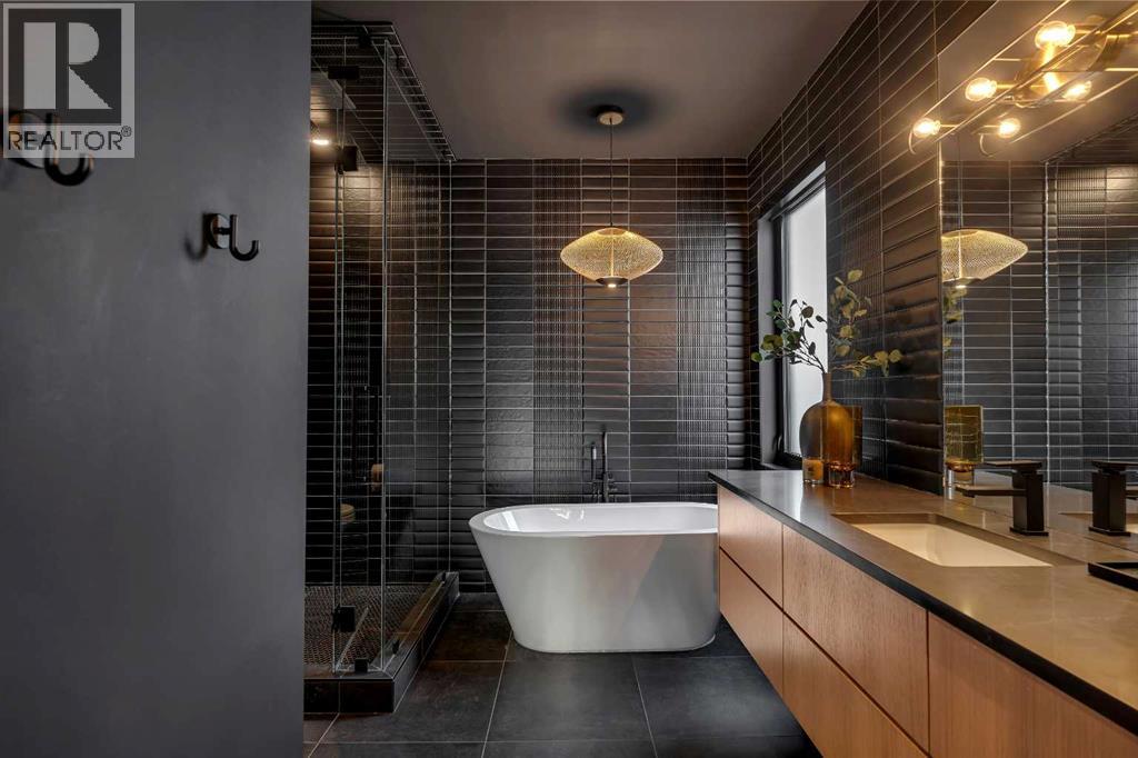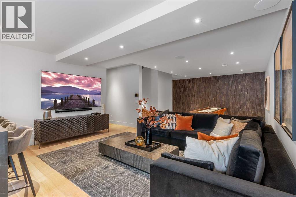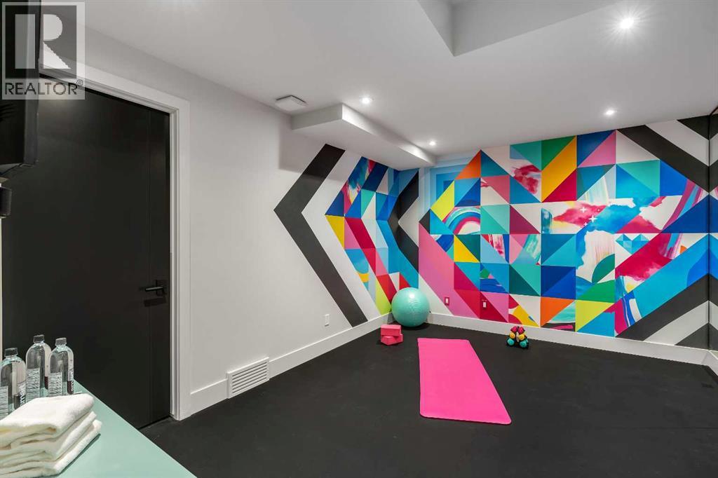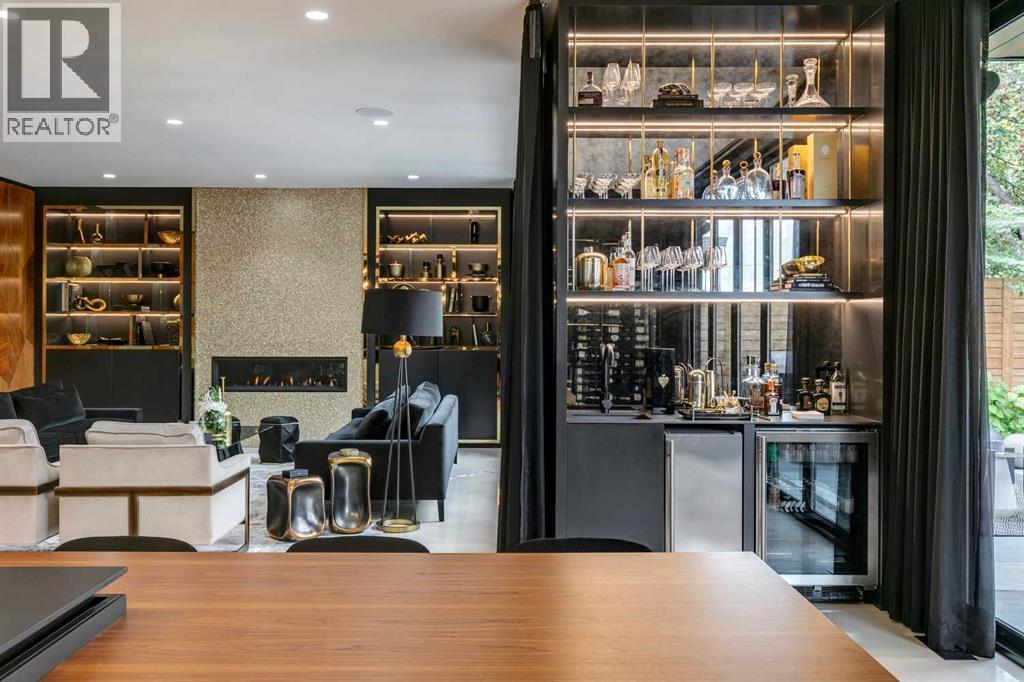 Understated elegance & sophistication describe this gorgeous property located on one of Elbow Park’s most sought after streets. Offering 4+1 bedroom’s, 9 bathrooms and 7,136 SF of livable space this home has been meticulously brought to life by DWK Interiors and was a finalist for Western Living’s ‘Interior Designer of the Year’ Award. You are welcomed in to a large foyer and will immediately feel the bespoke finishing as your view takes in the Pearl White Epoxy floor and smoky finished mirrors. The heart of a home is the kitchen where Black Dekton Stone is freely used for countertops, backsplash and cabinetry that is beautifully contrasted with walnut features. The 60” Wolf Range and SubZero Refrigerator are best in class. The Dekton continues into the Butler Pantry which offers augmented prep space and an oversized 2nd Fridge and Freezer. Take your eyes off of the 16’ Island and oversized rain-drop light fixture and you won’t miss the temperature controlled wine cellar (220 Bottles) that leads right into the rear wall which is a full Nano Accordion Door that fully opens to the outdoor space. A custom wall bar compliments all these spaces as you move into the living room which makes a statement with the Walnut feature wall! From the living room you can easily walk past a chic powder room and find yourself immersed in the event space set up with entertainment in mind. This room exudes class with White Oak herringbone patterned hardwood grounded by a black & gold diamond design built-in. The ceiling is covered in black leather-like wall paper and all leads to a formal dining area lit up by a 10’ gold custom chain link layered fixture. Venture upstairs to 3 secondary bedrooms that are all Suite-Like with exclusive ensuites and customized perfectly for the whole family. The Primary Suite offers 2 separate walk-in closets and an ensuite which features more Dekton counters with accents of gold and white & full slab tiled walls. LOVE the floating bath and the steam sho wer showcasing Italian wood textured tile. Upstairs laundry room with double washer and dryers completes this floor. The 3rd story loft is perfect as a bonus room, office or craft room with private bathroom and roof-top patio. It offers a fridge, sink and mini dishwasher with custom millwork and built-ins. The walk-up lower level functions perfectly as a family retreat and games space with a full service bar area. A Large fitness room also showcases a custom one-of-kind wall mural by internationally known artist Michelle Hoogsveld. The 5th bedroom and private ensuite is set up for a live-in nanny or house guests. Huge mud-room with lockers and cabinetry allow for hiding all your gear. Oversized triple/tandem garage has slat walks to assist with storage, dog or bike wash and heated epoxy floors. The rear yard offers multiple multiple options for play-time or relaxation with an oversized pool with swim up bar and fully appointed outdoor kitchen including pizza oven! Call for private showing today! (31441387)
