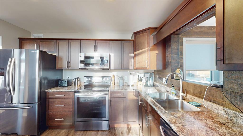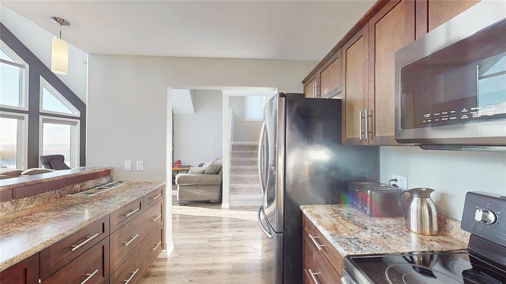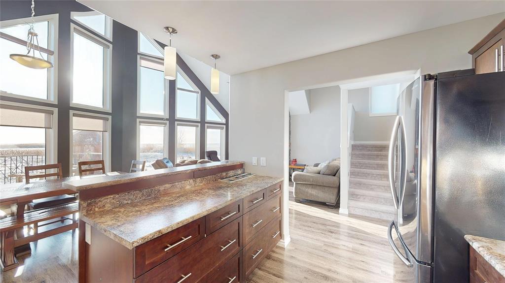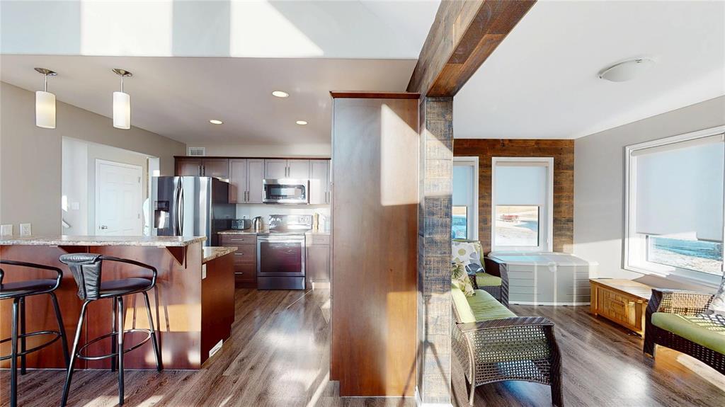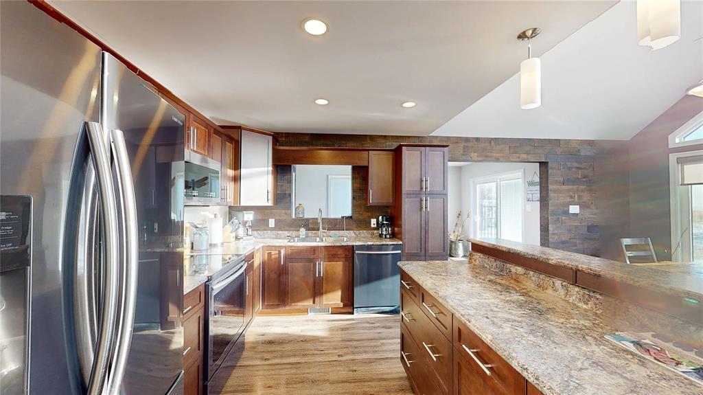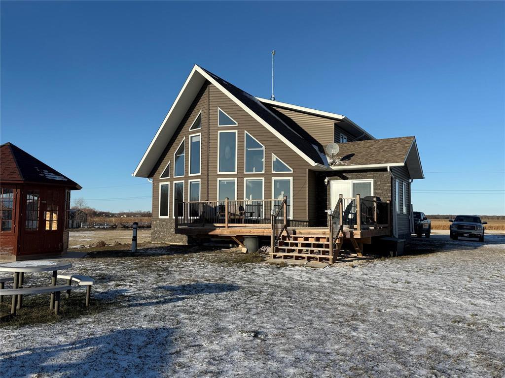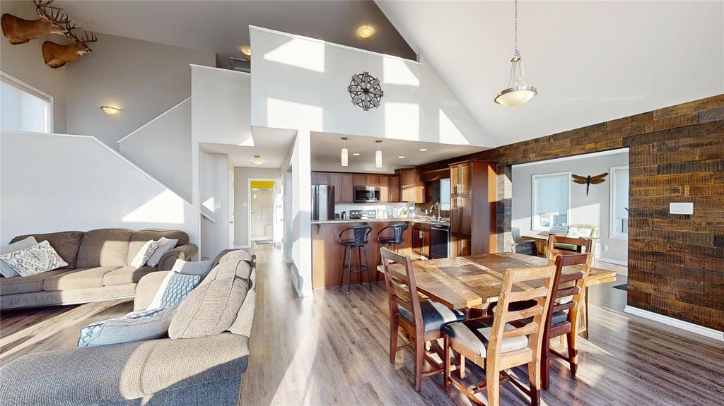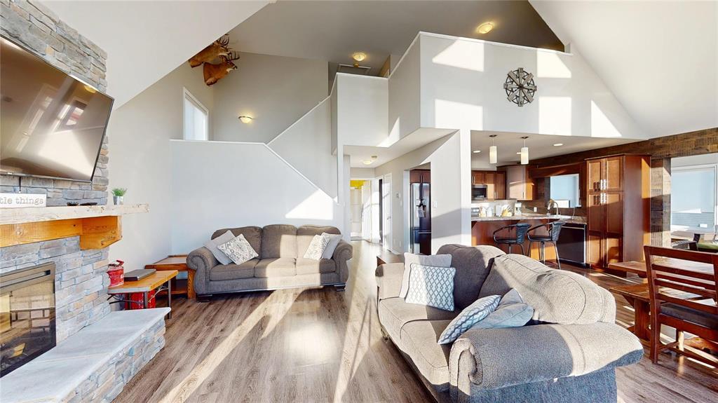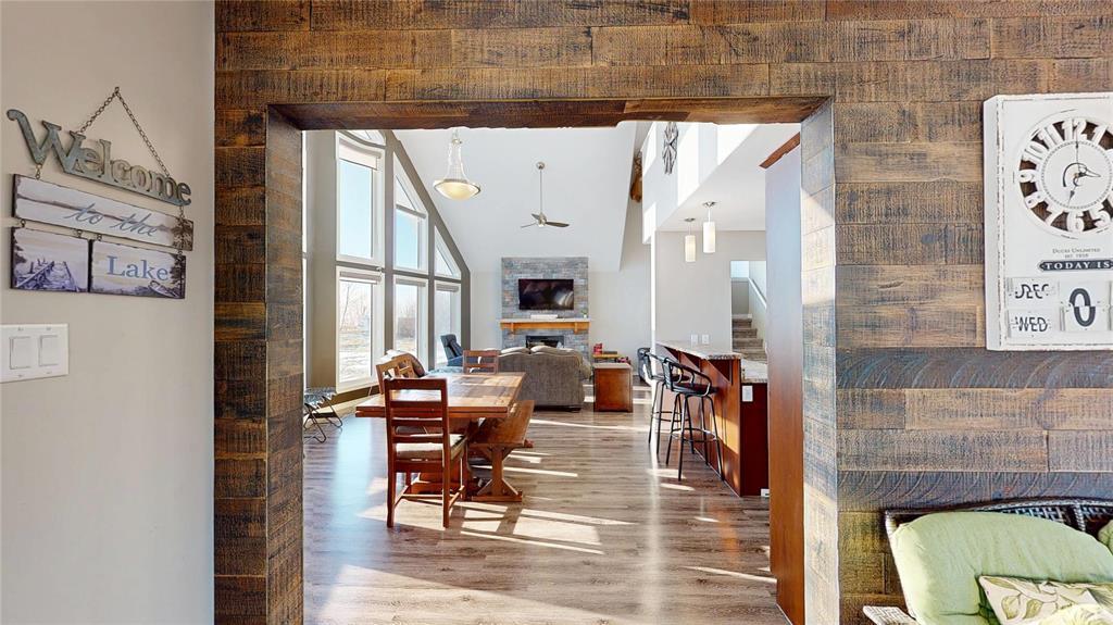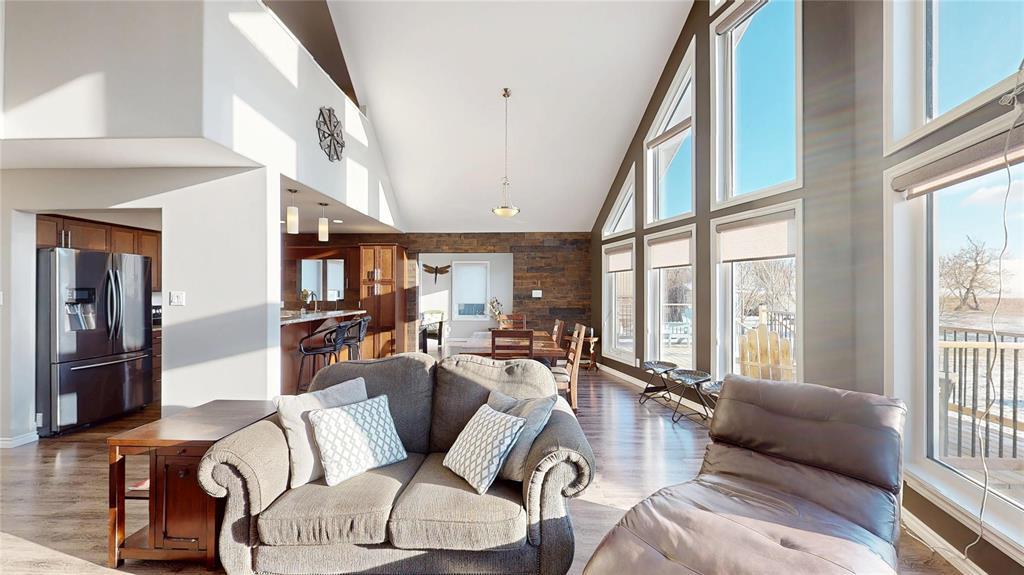 R19//Lundar/Lakefront all season home where tranquility can be yours, just 10 paved minutes from the town of Lundar. Peace and quiet, abundant wildlife and the clear blue waters of Lake Manitoba are at your doorstep. Built in 2017 and barely lived in, this home is move in ready and the furnishings are also negotiable. Soaring cathedral ceilings and a two story wall of windows overlooking the lake in the main living area. Spacious dining room and island kitchen with stainless steel appliances including built in dishwasher and microwave/hood fan. Four season sunroom off kitchen with doors to deck. Main floor laundry, bedroom and full bath. Upper level features loft area with an amazing view, two additional bedrooms and a full bath. Includes all appliances and custom blinds throughout, forced air electric heat, maintenance free vinyl exterior, storage shed, lots of parking and room for your toys. Enjoy the breathtaking sunsets from your gazebo overlooking Lake Manitoba and year round fun and outdoor recreation on the lake. 115 kms north of Winnipeg via Highway #6. (231697428)