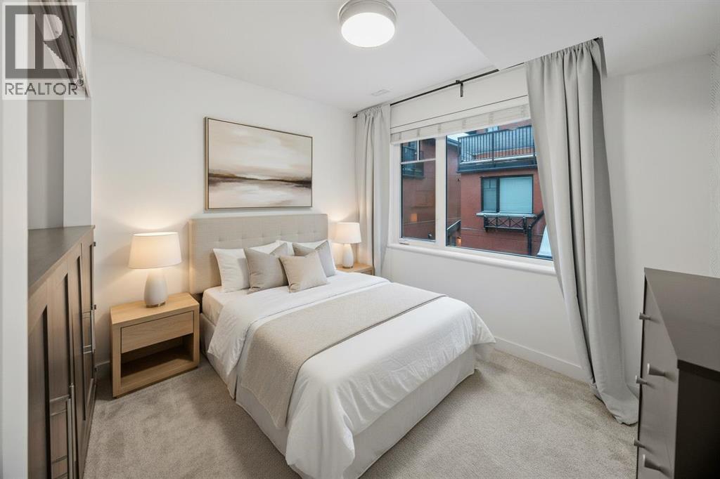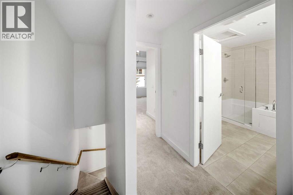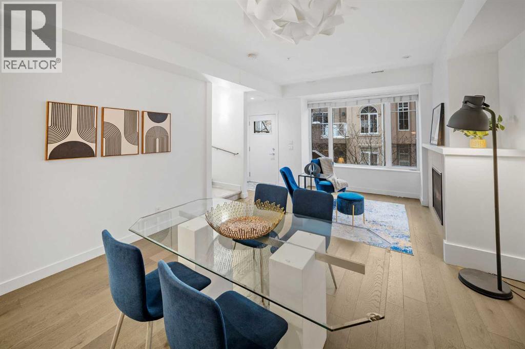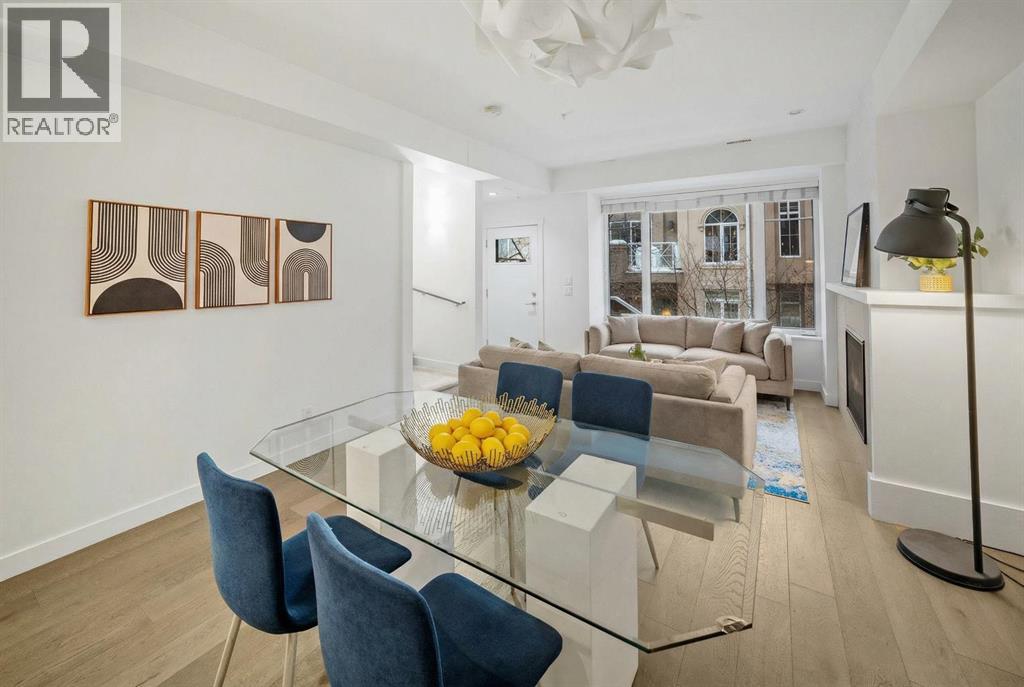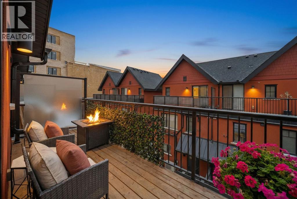 Three bedrooms, two bathrooms, dedicated storage, and titled parking come together in a boutique brick row building with subtle brownstone vibes and classic urban styling. This townhome blends vibrancy, privacy, and low maintenance living in one of Calgary’s most walkable locations. Just moments from the energy of 17th Avenue and the Beltline, you are surrounded by fabulous local dining, cafes, boutique fitness, and everything that makes inner city living so coveted. Tucked away from the street for added peace, the secure setting of the building creates an inviting atmosphere where, in the warmer months, neighbours often unwind on their own private terraces with barbecues or a glass of wine, adding a warm community feeling while maintaining personal privacy. Inside, this home offers the spaciousness of a traditional layout with the ease of condominium living. The modern kitchen features quartz counters, stainless steel appliances including a five burner gas range, generous cabinetry, a breakfast bar for casual meals, and the option to take dinner parties to the dining table that easily seats six. It all flows naturally into the inviting living area where a cozy gas fireplace anchors the room. The second level includes two comfortable bedrooms, a four-piece bathroom, and full size laundry. One more level up is the dedicated entirely to the primary retreat, the true showstopper of the home. This primary bedroom feels both serene and elevated with its soaring vaulted ceilings, wrapped in windows and offers a truly calming sense of space. A generous walkthrough closet offers abundant hanging space and leads to the relaxing spa inspired ensuite complete with double vanities, a glass shower, a deep soaker tub, and the added luxury of heated floors. Topping off this decadent level is the private balcony, perfectly positioned to overlook the front courtyard while capturing beautiful westerly views. The lower parkade entry level has a spacious flex or storage room which prov ides loads of shelving for effortless organization. This home also includes two additional outdoor lounging spaces; A charming backyard area offers a quiet spot for al fresco dining and relaxing, while the welcoming front terrace is ideal for morning coffee, evening wine, and summer barbecuing with friends. Small pets are welcome too (with board approval), and some owners have created a cute outdoor relief spot in their backyard - on leash or with board approved fencing, ideal for quick winter outings with your furry friend. Your secured and titled indoor/heated parking stall is conveniently located beside your parkade door with room for a bike. This beautifully maintained unit is also offered turn-key (move-in ready) with it’s furnishings & all kitchen items … for a seamless move. With only nine units in the building and close proximity to parks, schools, gyms, hot yoga, shopping, transit, and major routes, this home delivers elevated inner city living at its finest. (31443349)