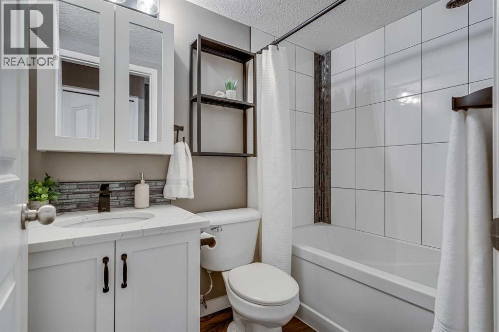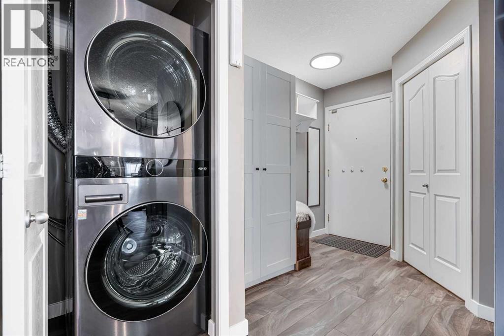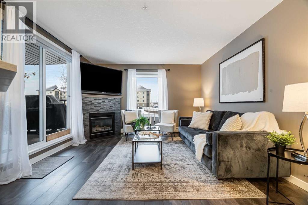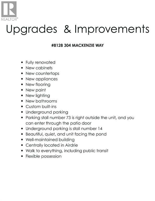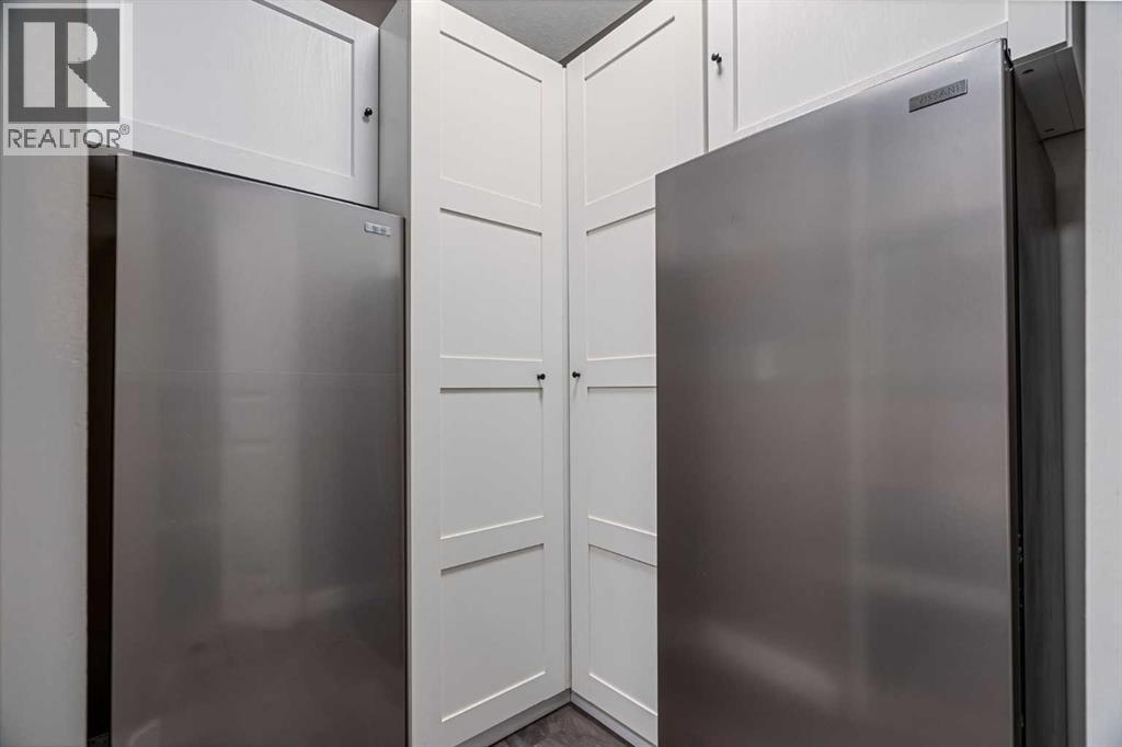 This stunning condo is a rare find — over 1000 sq ft, and beautifully renovated from top to bottom! This unit is set in one of Airdrie’s most peaceful locations, backing onto a serene pond with lots of beautiful nature to obsrve. Inside, every detail has been refreshed: new paint, flooring, trim, light fixtures, knock-down ceilings, and a brand-new kitchen with quartz counters, stylish cabinetry, hidden spice rack, “magic corner” storage, instant hot water tap at the kitchen sink, and all new stainless-steel appliances. Thoughtful touches continue throughout — built-in storage, an extra fridge and freezer, and new washer & dryer. The spacious primary suite offers not one but two walk-in closets with built in storage, and a full ensuite. Enjoy morning coffee or evening sunsets on your large wraparound patio with no neighbours in sight. This well-managed building includes ALL utilities (heat, electricity, water, sewer, garbage, insurance, and reserve fund) — truly worry-free living. Comes with one titled underground stall and one above-ground stall for convenience, as well as a 24 Sq Ft storage cage.Peaceful, stylish, and completely move-in ready — this is the perfect blend of comfort, quality, and quiet living right in the heart of Airdrie. (31443499)