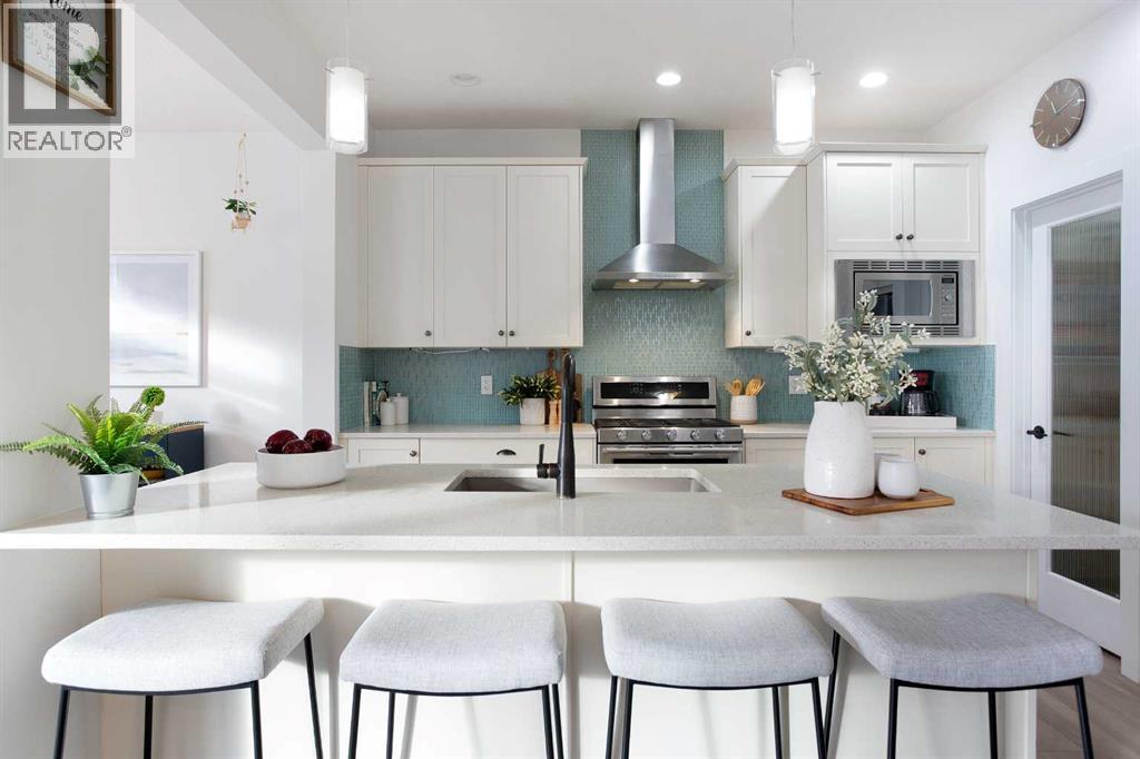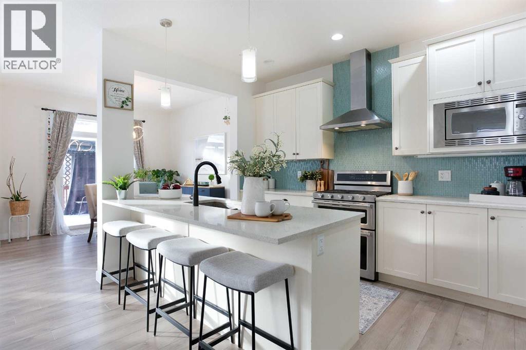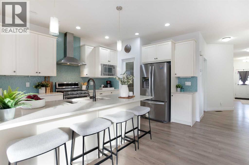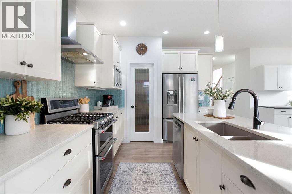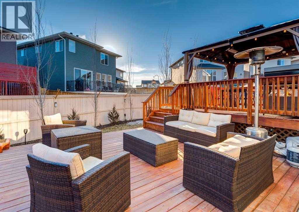 Welcome home to your 2-storey family sanctuary in the heart of highly sought-after Bayview. This spacious home, boasting 5 bedrooms and 3.5 bathrooms across an impressive 3,000 sq ft, is situated on a rare, oversized 4,525 sq ft pie-shaped lot—the ultimate blend of convenience and tranquility. From the moment you walk through the door, the home feels expansive and refined, thanks to nine-foot ceilings and a sophisticated palette across three fully finished levels. The open-concept main floor, anchored by a beautiful gas fireplace, is where life happens. Chefs will adore the gourmet kitchen, which features creamy white cabinetry, a luxurious double wall oven, a powerful gas range, and a brilliant walk-through pantry. Plus, a dedicated main-floor den with custom built-ins ensures you have the perfect quiet spot for working. Upstairs is designed entirely for rest and retreat. The spacious upper-level features new carpeting, generously sized bedrooms, with an expansive primary suite with a spa-like bath, including separate vanities and an oversized glass shower, plus a walk-in closet. 2 additional bedrooms, 4-piece main bathroom and a convenient laundry room, are all located on the 2nd floor. Additionally, the smart layout even features a large family room - ideal for kids' play or family movie nights, that can easily transform into an enormous 5th bedroom! To top it all off, the finished lower level provides the ideal setup for guests or extended family, offering an additional bedroom, an oversized recreation room, a 4-piece bathroom, ample storage spaces. With central air conditioning and a widened driveway, this home truly delivers modern luxury without compromise, but the true jewel is outside. Your massive, private yard is an entertainer's masterpiece! Picture yourself hosting effortless parties on the majestic two-tier deck, sheltered by a gazebo, and complete with a natural gas connection for the BBQ. There's a designated spot for your hot tub and a separate area for a cozy fire pit. Located in the family-friendly community of Bayview, this peaceful haven is steps from everything—parks, walking paths, canals, great schools, shopping, and easy access to Deerfoot! Seamlessly blending style, functionality, and ultimate comfort, it’s time to experience modern living at its finest, and it's completely turn-key! Don't miss this opportunity; contact us to arrange your private showing today! (31440746)