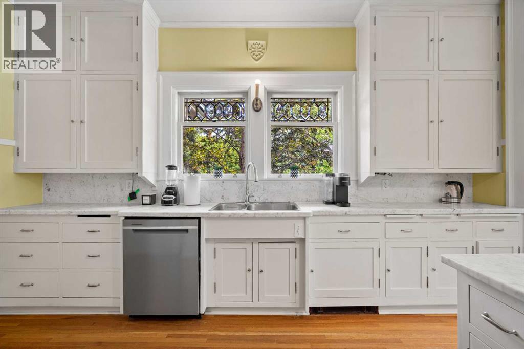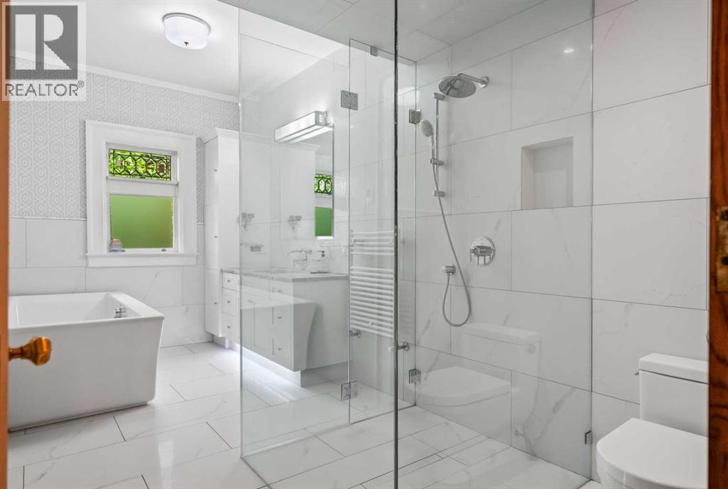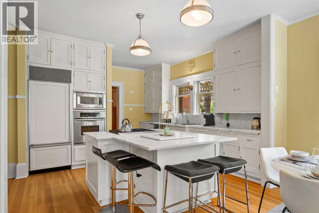Situated in the heart of Calgary’s renowned Cliff Bungalow neighborhood, combines historic charm with modern comfort and unbeatable convenience. Explore vibrant restaurants, cafés, boutique shops, and the lively energy of 4th Street and 17th Avenue, while scenic river pathways, downtown amenities, and everyday conveniences are all just steps away. The home is also just a short walk from Western Canada High School, one of the city’s top public schools offering the International Baccalaureate (IB) program, —making location one of the home’s greatest highlights. This rare 5-bedroom home with 10ft ceilings features thoughtful upgrades, including a fully refreshed wrap-around verandah with new wood flooring, updated venting pipes, refinished kitchen taps, basement has in floor heating, a mostly new hot water tank, new basement flooring. The boiler has been replaced with an efficient model. and a new cedar shake roof was installed in 2019 at a cost of over $60,000, All old knob-and-tube wiring has been removed and replaced with modern electrical systems and a steam shower for added modern comfort . All original main-floor woodwork has been carefully cleaned and refinished with high-gloss varnish, preserving its historic integrity. Each room features individual thermal control, with a total of 8 thermostat-controlled zones throughout the house, ensuring personalized comfort in every space. Over $200,000 in renovations give this cherished historic home a renewed appearance that honors its heritage while offering modern functionality and comfort.Inside, the home opens to a grand oak-clad hallway and a flowing floor plan highlighted by original quarter-sawn oak millwork, built-in cabinetry, and beveled-glass windows that showcase the craftsmanship of the period. The dining room leads to a sunroom with leaded glass windows, while the kitchen is equipped with floor-to-ceiling built-ins and a functional dumbwaiter. The grand living room features a striking fireplace, and th e master suite offers a luxurious soaking tub. Dedicated leisure spaces include a poker room and a lower-level recreation area with ping pong and pool tables, a wet bar, and lounge space. Historic elegance, modern comfort, and an unbeatable location—all in one home. (31447904)