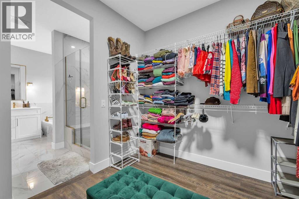 ** Open House: Feb. 7th 1:00-3:00pm ** 5 Bedrooms Above Grade | 4 Bathrooms | Three Level Design | Backs Onto Green Space | Upgraded Bosch Appliances | 9 ft Ceilings on All Levels | Heated Garage.Welcome to this stunning 2024 built home in Pine Creek, offering more than 2,700 square feet across three beautifully designed levels. Warm, bright, and thoughtfully upgraded, this home blends comfort, style, and modern convenience in a truly welcoming way.The main floor features a sun filled open layout with upgraded LVP flooring and a gorgeous chef’s kitchen equipped with Bosch appliances, a gas cooktop, hood fan, quartz countertops throughout, and a Silgranit upgraded sink. The kitchen flows seamlessly into the bright living and dining areas, all overlooking the peaceful green space behind the home. This level also includes a main floor bedroom and a full four piece bathroom, offering exceptional flexibility for guests, extended family, or a private workspace.The second level offers three spacious bedrooms, each with its own walk in closet, along with a bright bonus room and a full four piece bathroom. One bedroom enjoys its own ensuite, and the laundry room is conveniently located on this floor.The third level is a private retreat featuring the primary bedroom, a relaxing five piece ensuite, a generous walk in closet, a sunny balcony, and an additional flex room perfect for a lounge, workspace, or nursery.This home includes nine foot ceilings on every level, CAT 6 wiring throughout, a water softener, central AC, EV charger rough in, a gas line for backyard barbecues, and a heated garage for year round comfort. The backyard is a standout feature, backing directly onto quiet green space with no neighbors behind.Modern, spacious, and perfectly located in beautiful Pine Creek, this home is ready to welcome its next family. (31451952)
