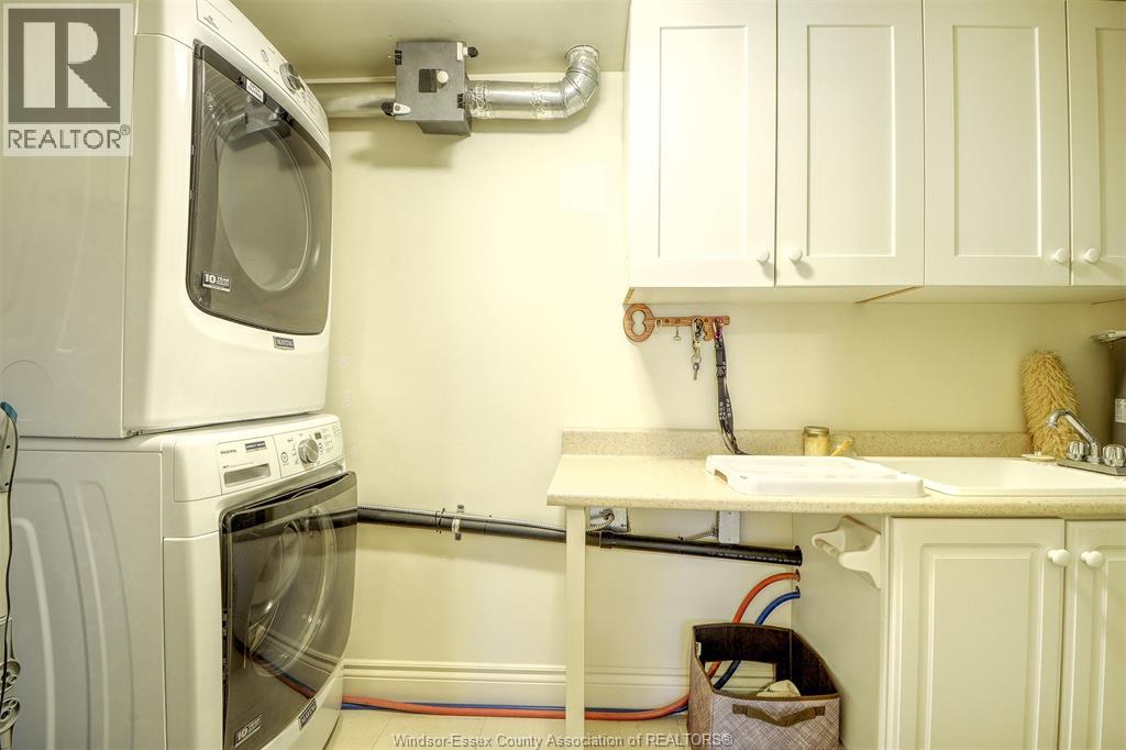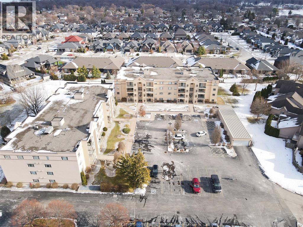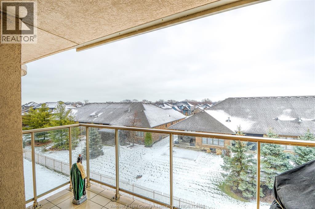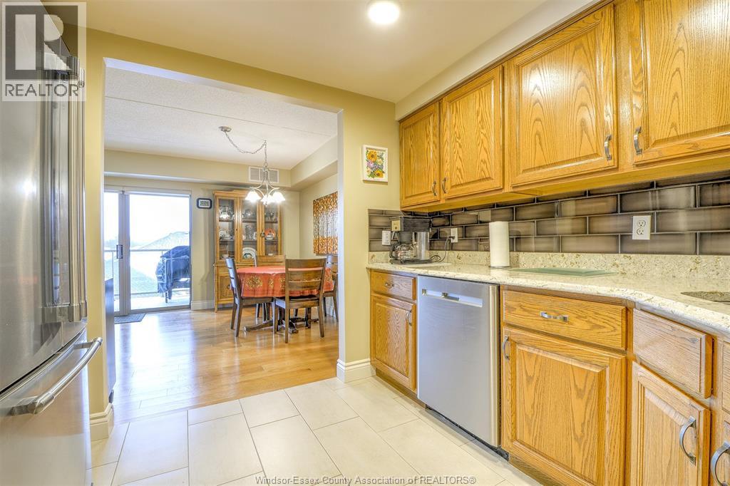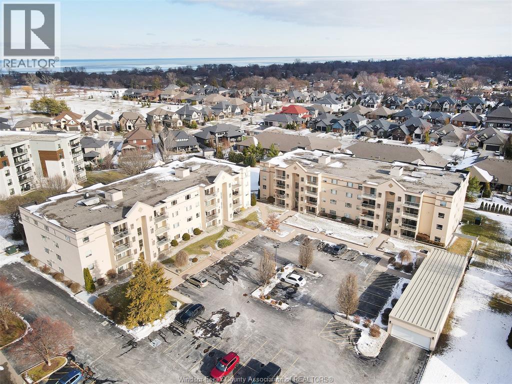 Maintenance-free living in beautiful St. Clair Beach/Tecumseh located in sought-after Village Grove, just one block from Lakewood Park, trails, shopping, banking, professional services and restaurants. This updated 2 bedroom, 2 bath suite offers a remodeled kitchen with custom oak cabinets, roll-outs, pantry, ceramic backs plash, granite counters and stainless steel appliances. Both bathrooms feature custom walk-in showers. The primary bedroom includes a walk-in closet and ensuite. In-suite laundry with washer, dryer, and storage. Ceramic and engineered hardwood floors throughout. A triple-wide patio door opens to a private balcony with gas BBQ hook up and quiet east exposure. Most doors are 36"" with pocket doors for wheelchair accessibility. Deeded underground parking and assigned storage locker included. Concrete constructed building with north and south entrances, each with its own elevator and only 4 suites per floor, per side. This is a LARGER CORNER SUITE at the rear of the building with peaceful North/East exposure. Amenities include outdoor pool, racquet courts, party room with fully equipped kitchen, fitness area with saunas and bathrooms. Enjoy the lifestyle you deserve (54211168)