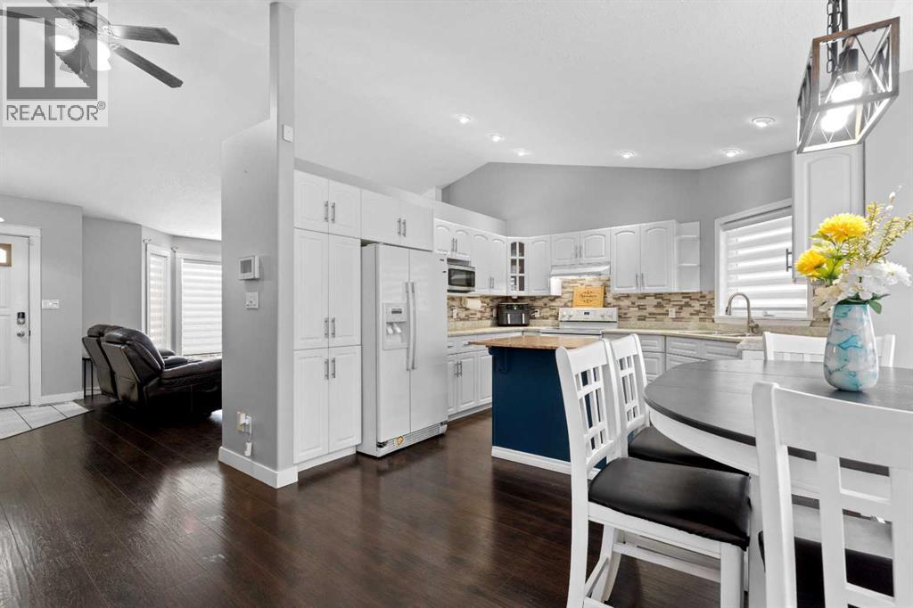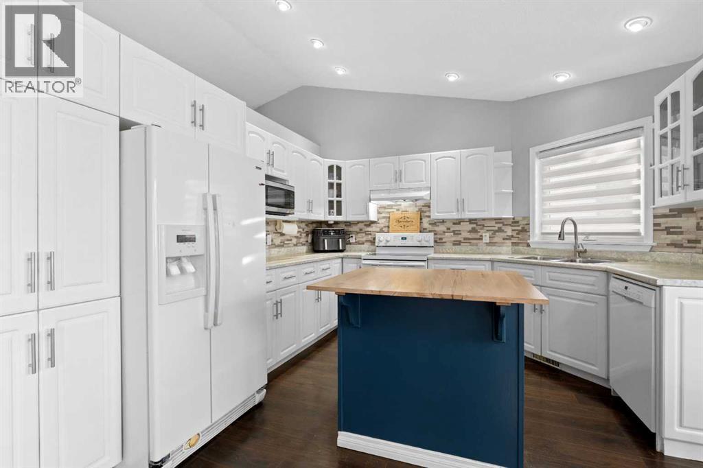 This home offers a practical layout suited for day-to-day living. Situated on a cul-de-sac and features immediate backyard access to a spacious, heated 28' by 26' detached garage with convenient back alley entry and additional adjacent parking. The main floor offers high ceilings, an electric fireplace in the living room, and an open kitchen with a floating island and backyard views, while the upper floor provides three bedrooms and two full bathrooms. Functionality continues on the lower levels, which include a large rec room with 9-foot ceilings, the home's third full bathroom, and laundry, plus two extra rooms and storage in the basement. The fully-fenced backyard enhances outdoor living with a greenhouse and hot and cold water taps. (31455803)
