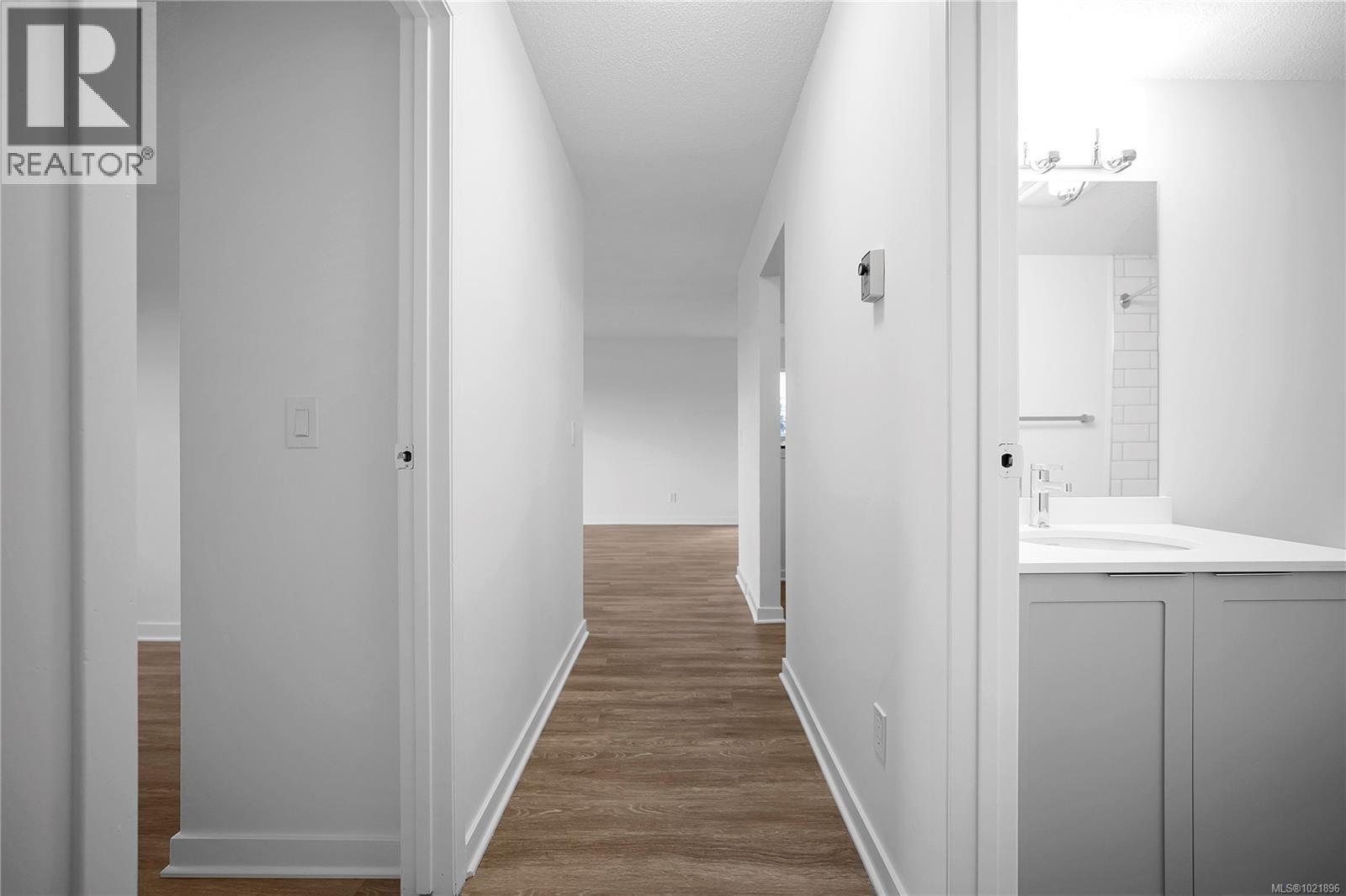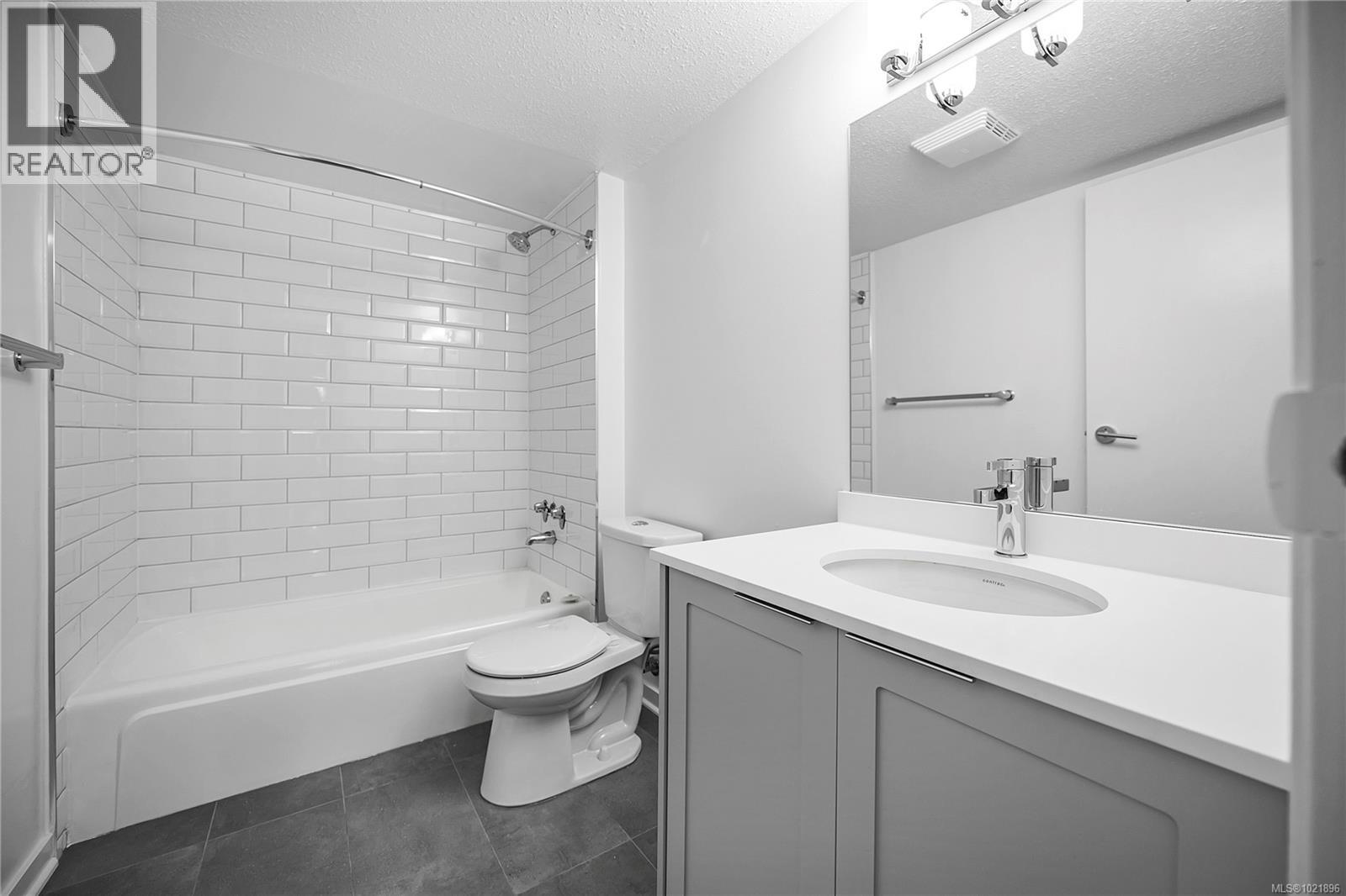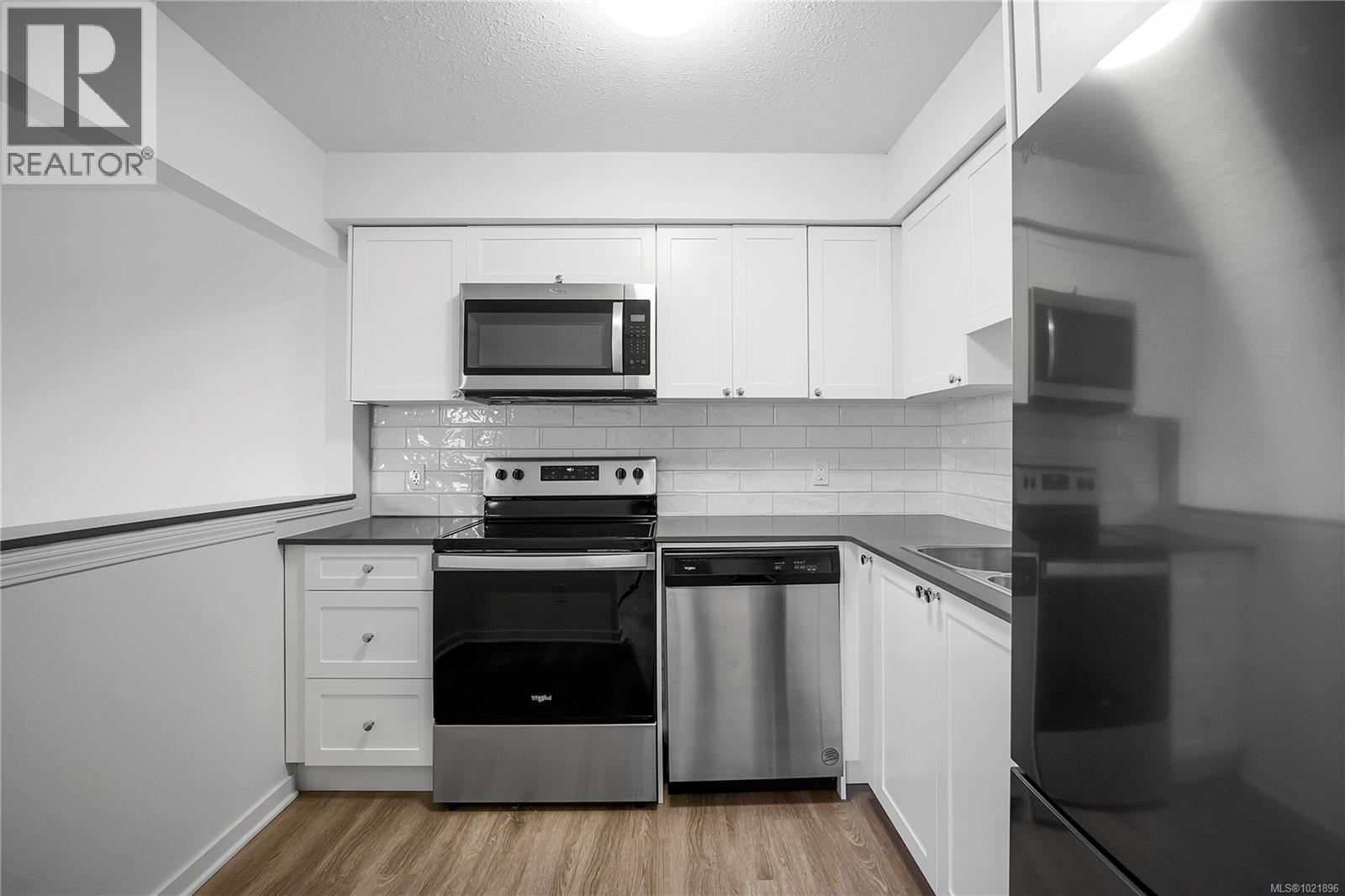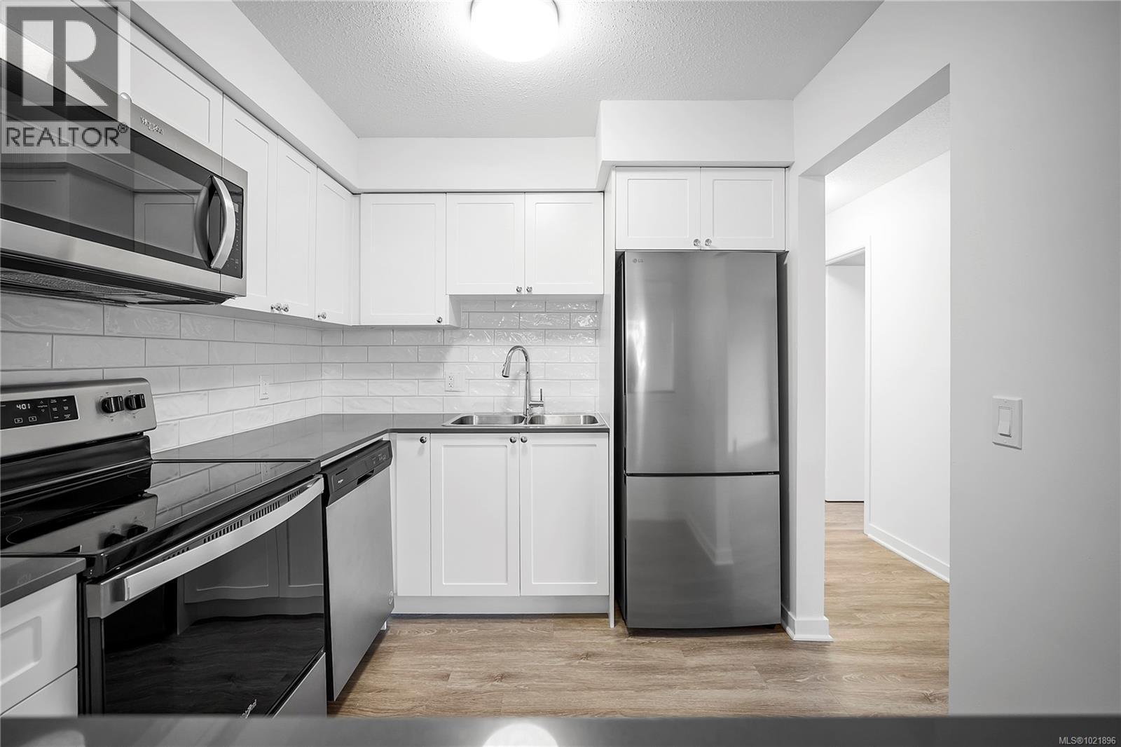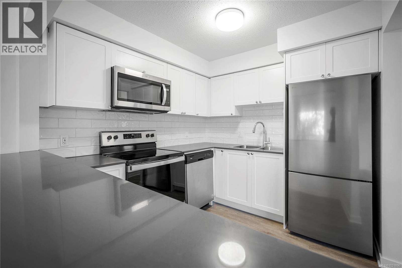 End corner suite, with a private balcony. We did a ''virtual staging'' of this suite-to give you an idea of what you might do. Adjacent to the Nanaimo Hospital. Re-modelled ( Throughly re-modelled) condo homes. All new appliances. This community features 63 suites with amenities including freshly updated shared spaces, secure entry and a prime location close to the hospital, schools and shopping. Residence 101 is a generously sized corner unit with two bedrooms and two full four piece bathrooms, fully modernized with high-end finishes. Recent upgrades include durable vinyl plank floors, quartz countertops, brand-new kitchen and bathroom cabinetry, stylish tile in the baths, updated fixtures and plumbing, newer appliances incl in suite laundry and much more. The open layout is bright and welcoming, and the spacious private deck off the living area offers extended outdoor living space. Measurements are taken from the floor plans and are approximate Realtors--See Remarks section (30205463)