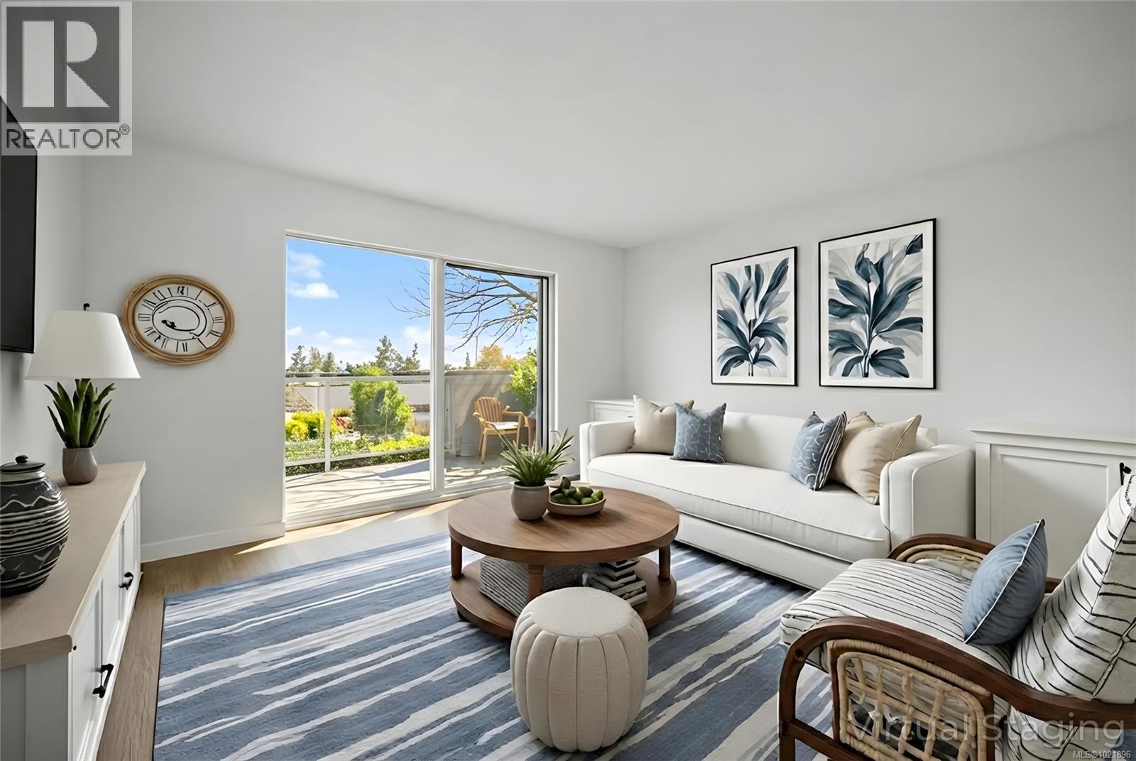 Virtual staging Living room with wood finished floors and baseboards