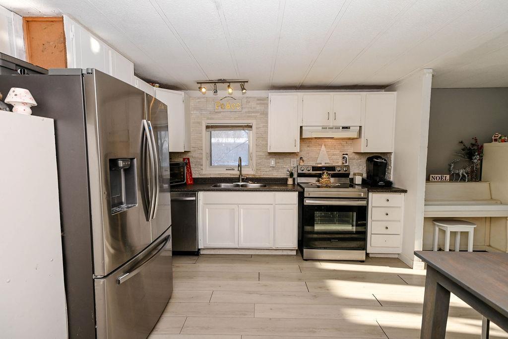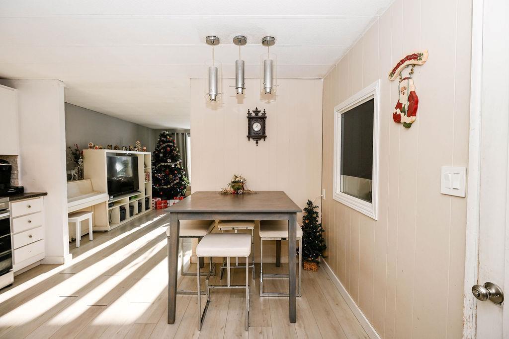 R16//Steinbach/Make home ownership yours! Have a look at this 3 bedroom mobile home in Aspen Grove park! This home has a large living room with laminate flooring throughout. White kitchen with stylish backsplash & stainless steel appliances. There is a 4 piece bath with jetted tub. The home has a front porch for extra storage and a screened room to enjoy summer evenings! 8' x 16' deck. Appliances included, shed. AC. Don't miss out, great opportunity to buy before Christmas!! (231715964)