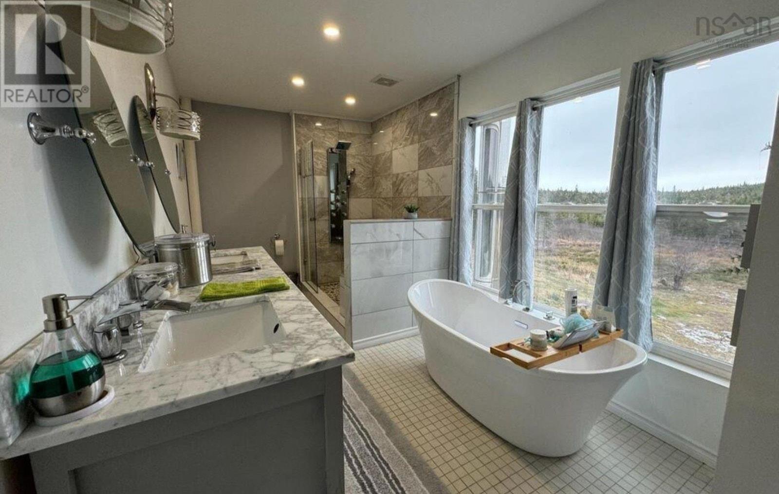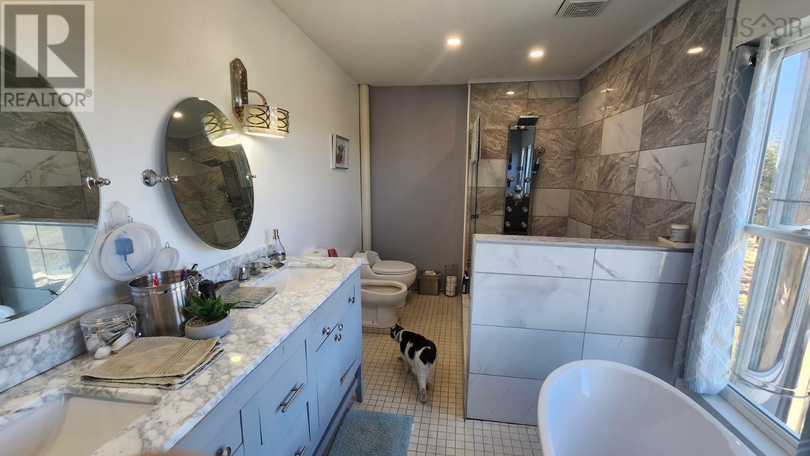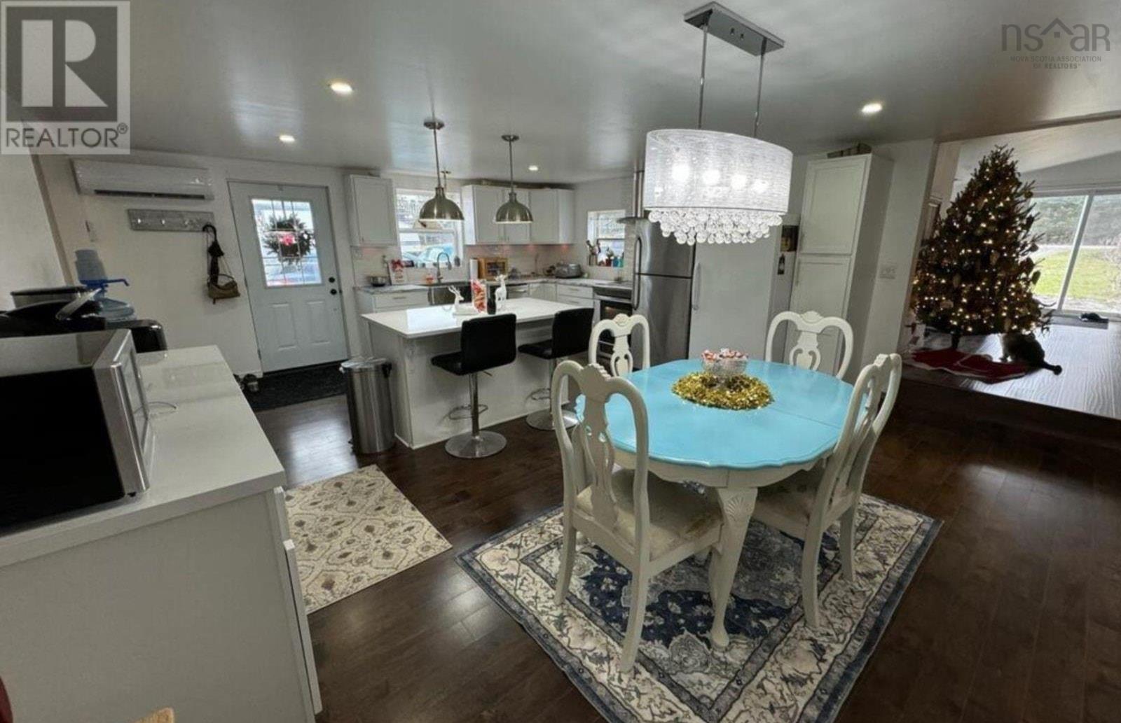 Click brochure link for more details** Entire upstairs main bedroom loft w/ensuite featuring river-rock shower, soaker tub, bidet, low profile toilet, double-sink granite counter. 2 main floor bedrooms, separate room for small home office, baby room or storage. 1Gb Bell Fiber internet. Convenient main floor 2 piece half bath. Completely renovated from sills up: new roof, trusses, windows, walls, flooring, siding, blown-in insulated attic, fiberglass pink walls, vapour barrier, spray-foamed basement. Room in basement to add a bedroom, bathroom and living area, and still have room for storage - bone dry too. New heat pumps installed fall 2024 with 10 yr warranty, + cozy wood stove in living room, wood & oil furnace in basement (no oil tank though). Huge kitchen, Corian counter island w/ hidden appliance lift for heavy stand mixer, coffee station w/ beverage fridge, elegant hammered steel apron sink, induction/convection 2-oven programmable stoves, new black upright freezer (replaces older white one now in basement), fridge with top freezer, HE washer & dryer & stainless dishwasher (older but working). Small river on property, less than a 2 minute walk from house with small trout & occasional salmon. 4-stall former horse barn, electric fenced 1 acre pasture, 2 acres unfenced, flock of laying hens in one stall. Several producing apple trees, strawberry patch, tomatoes, 1 acre tilled garden currently planted w/potatoes, comes with David Brown tractor with bucket, plow, mower, forks. Plenty of harvestable forested land for wood to burn or milling lumber, growing christmas trees. Room for a large garage for personal or business. 10 minute drive to Atlantic Ocean's Point Michaud sandy crescent guarded beach for surfing, or secluded Rockdale Beach within 5 minutes. St Peters Yacht Club on the Bras D'Or Lakes within 7 minutes, Dundee Golf Club 25 minutes away or world class 5 star The Lakes at Ben Eoin Golf Club within 45 min drive. (231717537)