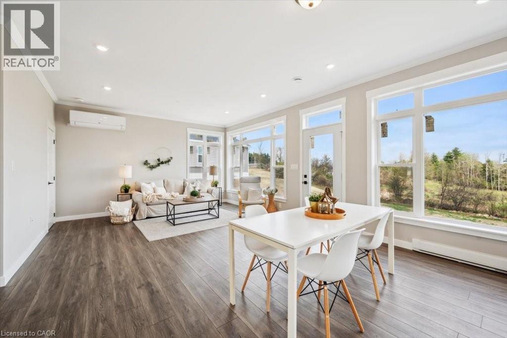 **Open House 3-5pm Sunday**This lovely brand new bungalow built by Kent Homes, known as the Cottage Model features 2 beds, 2 baths and over 1,000 sqft of living space. Situated in the year round land lease community, Rocky Ridge Estates which is conveniently located just off Highway 6 on a quiet side road. Enjoy an easy going lifestyle in this tranquil rural setting while still easily accessing major commuting routes and major centers. Just 8 minutes south of the 401. Enjoy the open concept floor plan which features quartz countertops, large living and dining area with large windows, a primary 3pc ensuite and separate laundry room. This is the perfect investment for the downsizers or first time home buyers to get into the market at an affordable price! Inquire for more details about Lots available and various other models. Location may be listing in Freelton. Taxes not yet assessed.Renderings and floor plans are artist concepts only and derived from builder plans. (69982378)