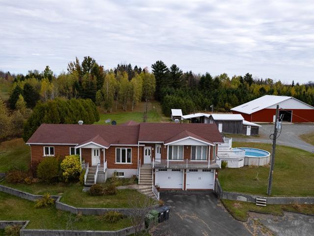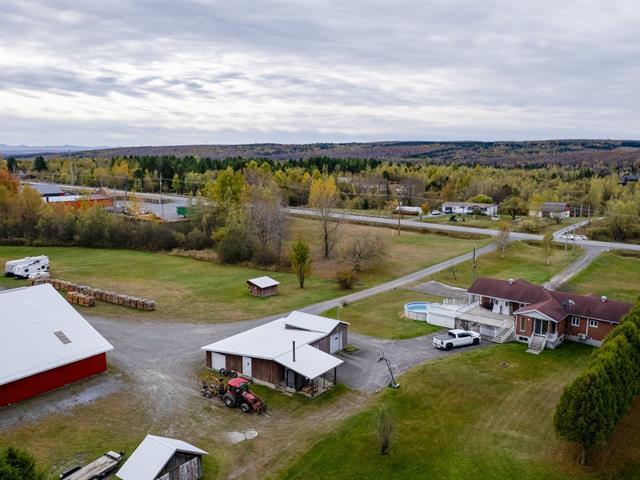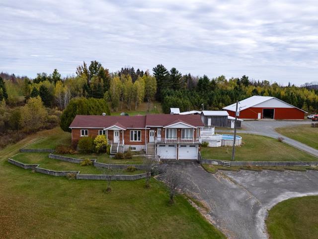 Magnifique propriété de 49 acres en zone agricole avec un droit commercial sur une superficie de 2,47 acres = 107,639 pieds carrés. Cette propriété possède 4 chambres à coucher 2 salles de bains, salon style verrière, sous-sol fini avec beaucoup de rangement. Le garage intégré 24 x 40 peut accueillir 4 voitures. Grand patio 22 x 24 pieds en béton donnant l'accès à la piscine de 18 pieds. À l'extérieur l'immense garage commercial de 40 x 50 pieds avec une hauteur 13'4'' avec 2 mezzanines de 6 x 50 pieds et attaché à ce garage, 2 abris 20 x 50 pieds. Hangar 32 x 42 pieds. Endroit commercial et droit d'animaux. La place est pour vous !! (57352227)