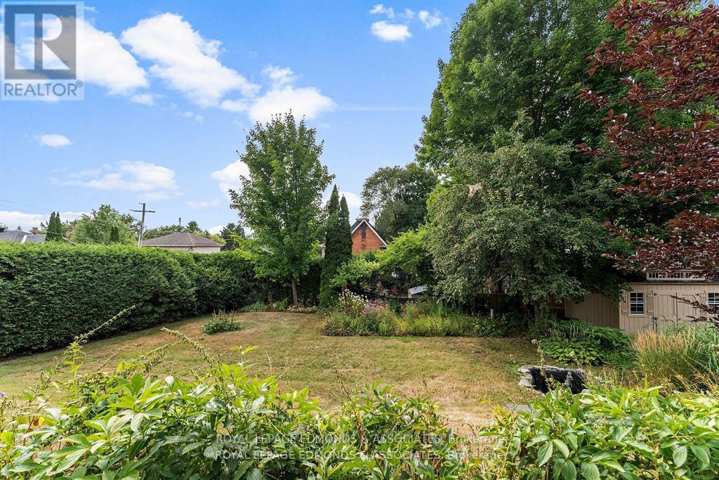 Nestled on a tree-lined corner in Pembroke's East End, this turn-of-the-century Edwardian home is where timeless character meets everyday comfort. From the moment you arrive, ivy curling along the garden walls and stone steps leading down rolling lawns set the tone for a property unlike any other. Inside, the craftsmanship of a bygone era is beautifully preserved. Original hardwood floors, tall ceilings, and intricate vent covers are paired with warm, craftsman-style casings that frame each room with elegance. The heart of the home is a traditional dining space that flows into a light-filled living area, perfect for gathering with family or hosting friends. Just beyond, a thoughtful addition with its own entrance, fireplace, and spa-like ensuite offers privacy and flexibility, whether as a wheelchair accessible in-law suite or a serene retreat. Upstairs, three inviting bedrooms and a four-piece bath create a restful family haven, while a finished attic provides space for creativity, play, or simply a quiet hideaway. Even the lower level has been cared for, with a dry basement offering laundry, storage, and cold room. Outdoors, the magic continues. A multi-level deck winds gracefully around the house, overlooking a backyard that feels like a private park. Blooming gardens, a waterfall pond, and mature hedges create a storybook setting where children can explore and adults can relax. A detached garage with heated workshop completes the picture, offering space for both work and play. This is more than a house, its a home that inspires, welcomes, and charms at every turn. 24 Hours Irrevocable on all offers please. (41826027)