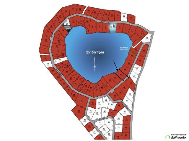 BORD DE LAC. Magnifique terrain de 43 000 pi2 sur le bord du Lac Sartigan avec plus de 160 pieds de façade sur le Lac. Orientation Ouest avec vue sur les couchés de soleil. Lac sans moteur et ensemencé pour la pêche. À seulement 15 minutes des autoroutes et 55 minutes des ponts de Québec. À quelques pas du centre de SPA nordique NRJ. Prêt à construire. IMPORTANT : Plan d'une maison haut de gamme disponible avec certificat d'implantation d'une valeur de plus de 12 000$. Visitez le site du Lac Sartigan au : https://www.ddls.ca/index.html (46436352)