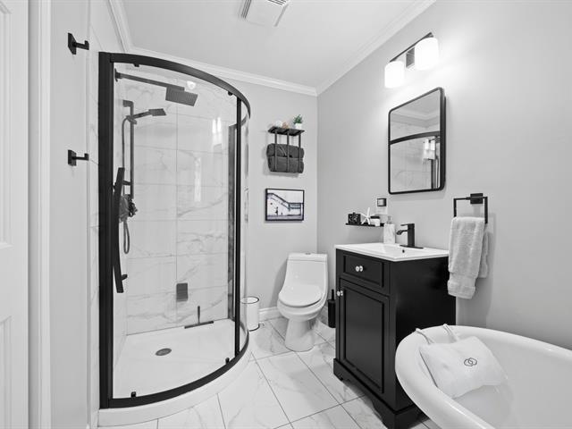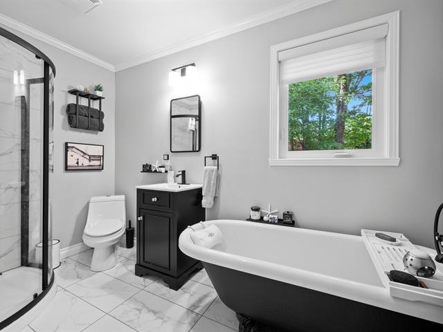 Ski-in/Ski-out à 300 mètres. Propriété unifamiliale d'exception sur le Mont Soleil dans un petit projet privé, Elle offre un accès privilégié aux plaisirs de la montagne. Entièrement rénovée au cours des 15 dernières années, elle allie charme, confort et modernité. Avec 4 chambres spacieuses, 2 salles de bains et une salle d'eau, elle est parfaite pour une famille ou pour recevoir des invités. La cuisine se distingue par ses armoires en bois et ses comptoirs en quartz, offrant un style luxueux et intemporel. À l'extérieur, profitez d'une magnifique véranda, ainsi que d'une cour arrière boisée, parfaite pour vous détendre. (42405856)