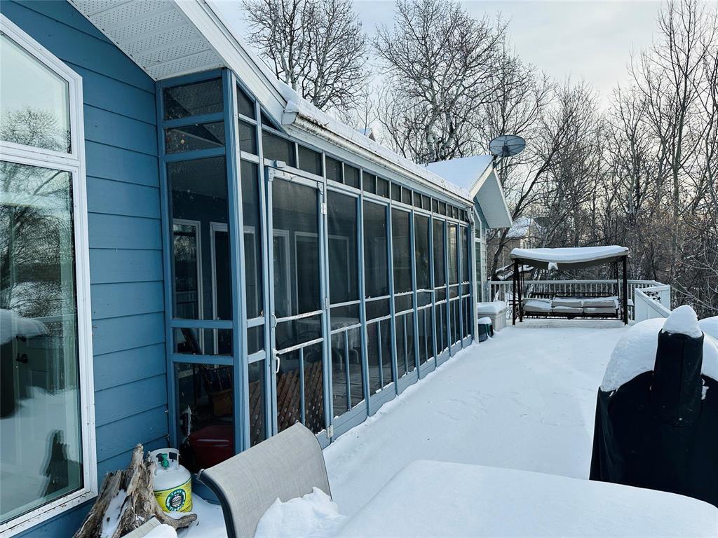 R31//Roblin/You must come & take a look at this "LAKEFRONT PROPERTY" at Lake of the Prairies. These properties don't last long. 1,468 SF bungalow built in 2007. Has an open kitchen, dining area & living room all with a fabulous view of the lake. Full bath/laundry, 3 bedrooms. 2 bdrms have 3 pc ensuites. 6' crawl space. 8' x 50' deck with extra storage under deck, maintenance free railing. 8' x 22' screened in sunroom. Hardie board siding & metal roof. Triple pane windows. Beautiful red oak hardwood floors. Breakfast bar. Electric FA furnace, central air conditioning, reverse osmosis, water softener and iron filter. 24' x 30' 2 car garage has 3 pc bath. Room to park camper. 98' frontage and 19,527 total SF. Inclusions: Built in stove top & oven, fridge, freezer, dishwasher, microwave, washer, dryer, Shaw satellite dish, central vac, window coverings. Push mower.2000 gal septic tank. Water comes from a well.Well manicured private treed yard with flower beds, perennials, firepit area, concrete sidewalks. Patio overlooking lake.Stairs to the lake. Located in Prairie Lake Lodge in the development there is an 18 hole 3 par golf course. 2025 Gross Taxes $3,367.26 (231721440)