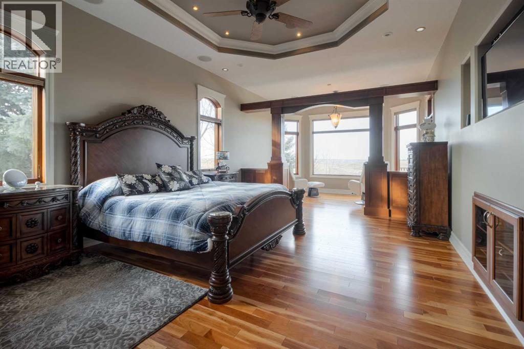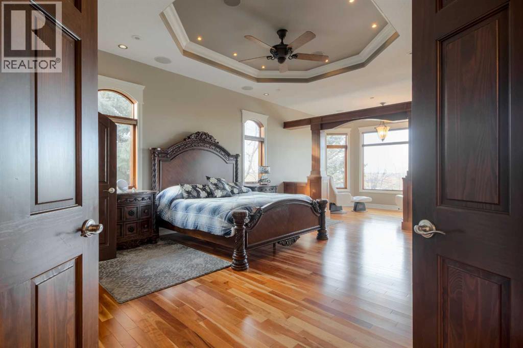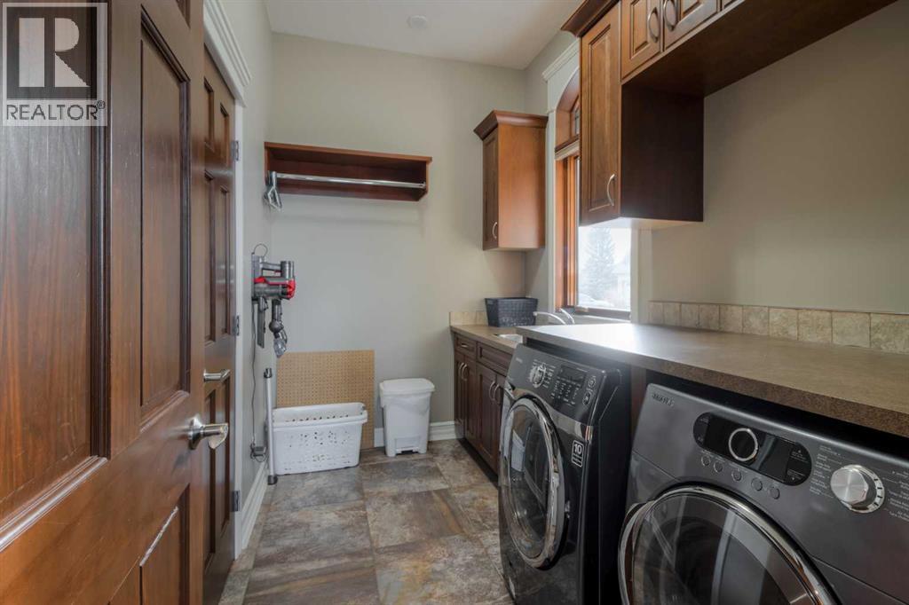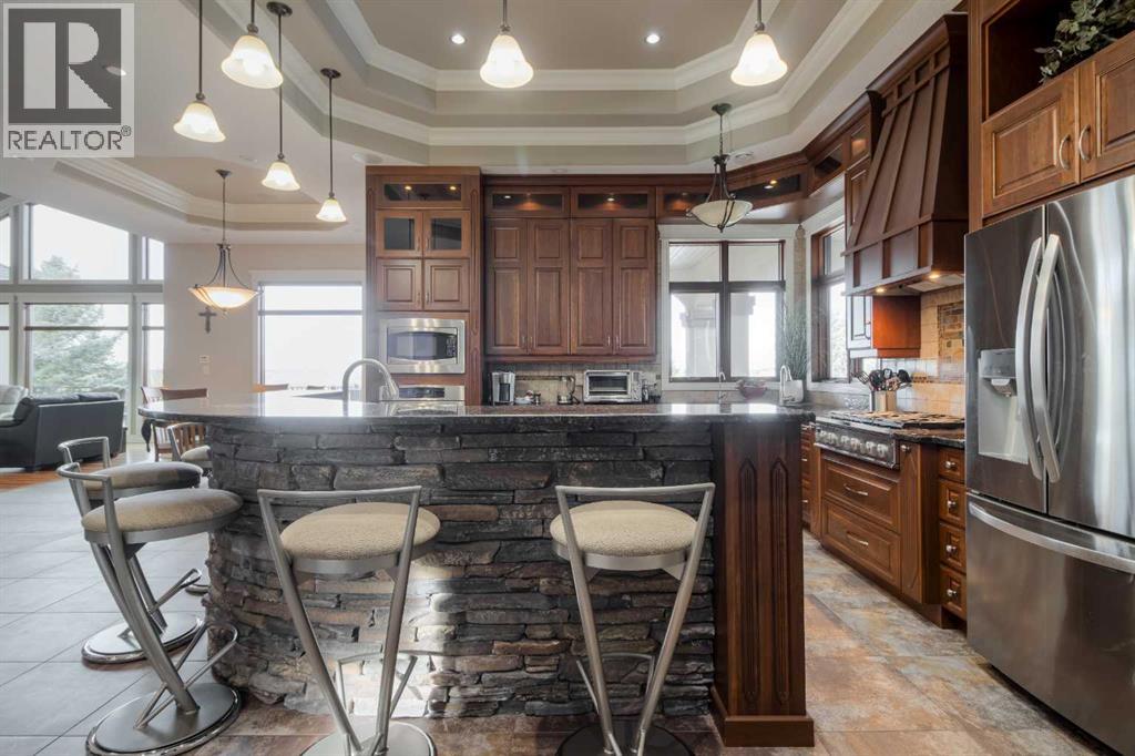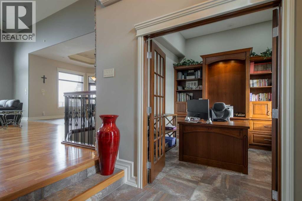 Welcome to this exceptional custom-built 2485 square foot Bungalow, perfectly positioned in a quiet cul-de-sac with breathtaking coulee views and a fully developed walk out basement. Thoughtfully designed with both luxury and functionality in mind, this home offers 4 spacious bedrooms plus a private office, main floor laundry room, an exercise room, and four beautifully appointed bathrooms, including a stunning five-piece en-suite retreat. The open concept main living area is ideal for everyday living and entertaining, while the lower level features a dedicated recreational space perfectly suited for the pool table or quilting table and a separate wet bar for hosting the guests. Triple pane windows, and radiant heat throughout the house and garage ensures year round comfort, complemented by a smart home security system for peace of mind. Car enthusiasts will appreciate the triple attached garage designed to accommodate a vehicle lift, while outdoor living is elevated with a professionally landscaped yard (has it's own running stream) two decks to enjoy the views from, and a private hot tub - perfect for relaxing while taking in the serene surroundings. There is a designated wine room, a water feature wall that runs from upstairs to down, beautiful staircase, and tons of storage throughout the home and garage. A rare combination of craftsmanship, location and lifestyle, this remarkable home offers refined living in one of the areas most sought-after settings. (31467531)