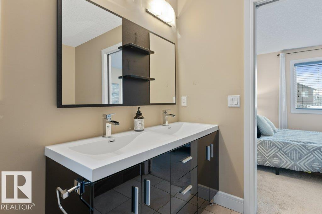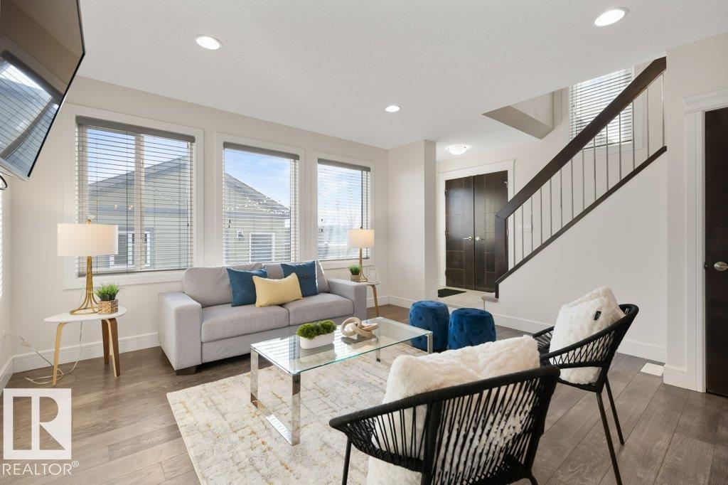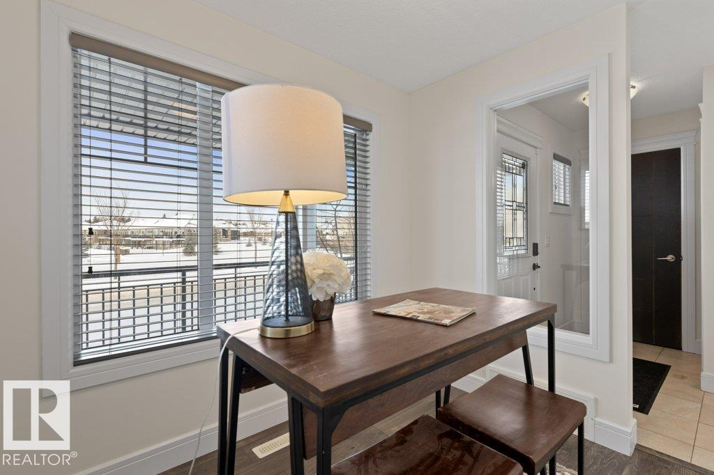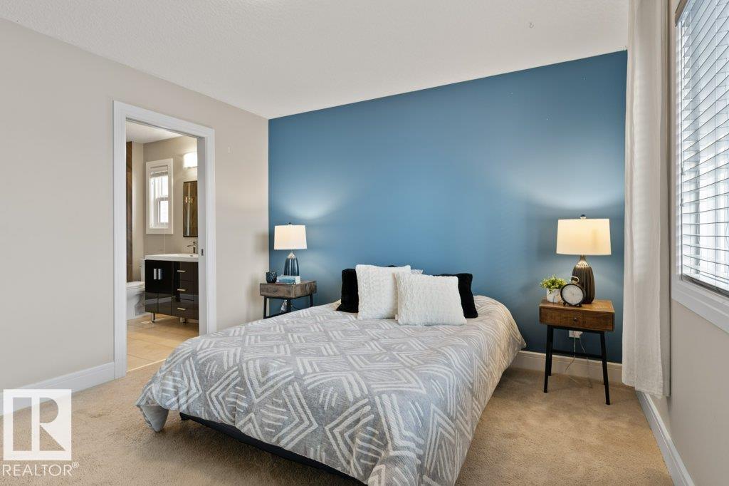 Situated across the street from a GREENSPACE with a POND and walking trails, welcome to this over 1500sqft home loaded with windows and natural light! The main floor is extremely functional with a front den, high end kitchen with full height cabinetry, QUARTZ countertops, stainless steel appliances and trendy backsplash. Just off the kitchen is a large dining nook and access to the living room which overlooks the fully landscaped yard. Upstairs there are 3 spacious bedrooms, SECOND FLOOR LAUNDRY and a main 4 piece bathroom. The primary bedroom has a 5 piece ensuite with TWO SINKS, an oversized shower, separate soaker tub and a walk in closet. There is a DOUBLE DETACHED garage and cute front veranda overlooking the park. This home is ready for immediate possession! (33660486)