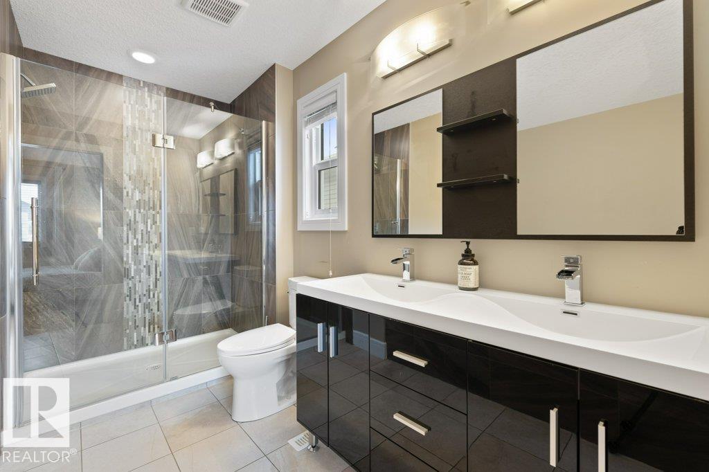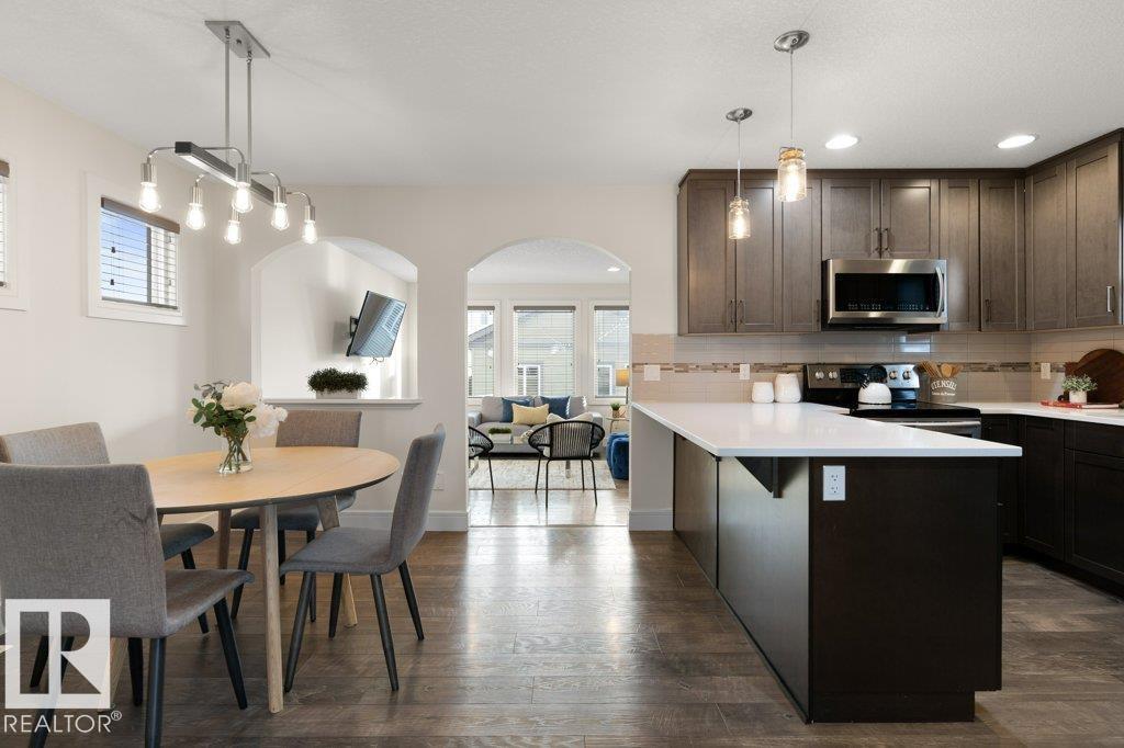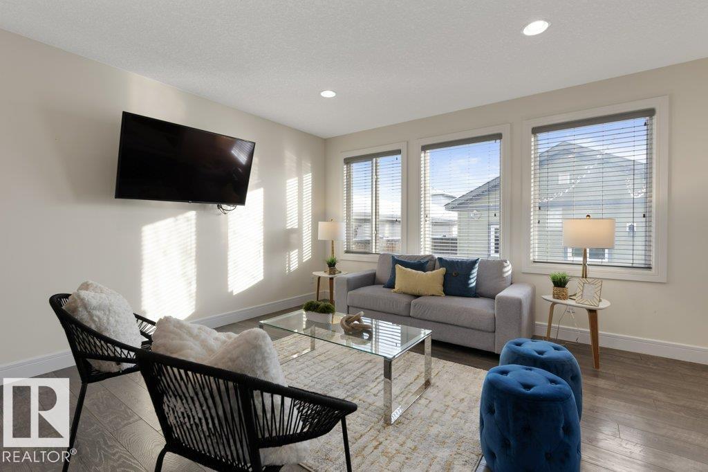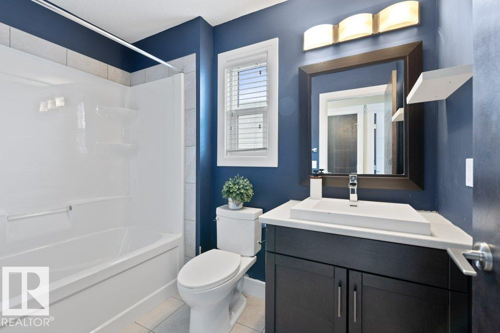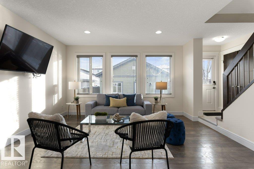 Situated across the street from a GREENSPACE with a POND and walking trails, welcome to this over 1500sqft home loaded with windows and natural light! The main floor is extremely functional with a front den, high end kitchen with full height cabinetry, QUARTZ countertops, stainless steel appliances and trendy backsplash. Just off the kitchen is a large dining nook and access to the living room which overlooks the fully landscaped yard. Upstairs there are 3 spacious bedrooms, SECOND FLOOR LAUNDRY and a main 4 piece bathroom. The primary bedroom has a 5 piece ensuite with TWO SINKS, an oversized shower, separate soaker tub and a walk in closet. There is a DOUBLE DETACHED garage and cute front veranda overlooking the park. This home is ready for immediate possession! (33660486)