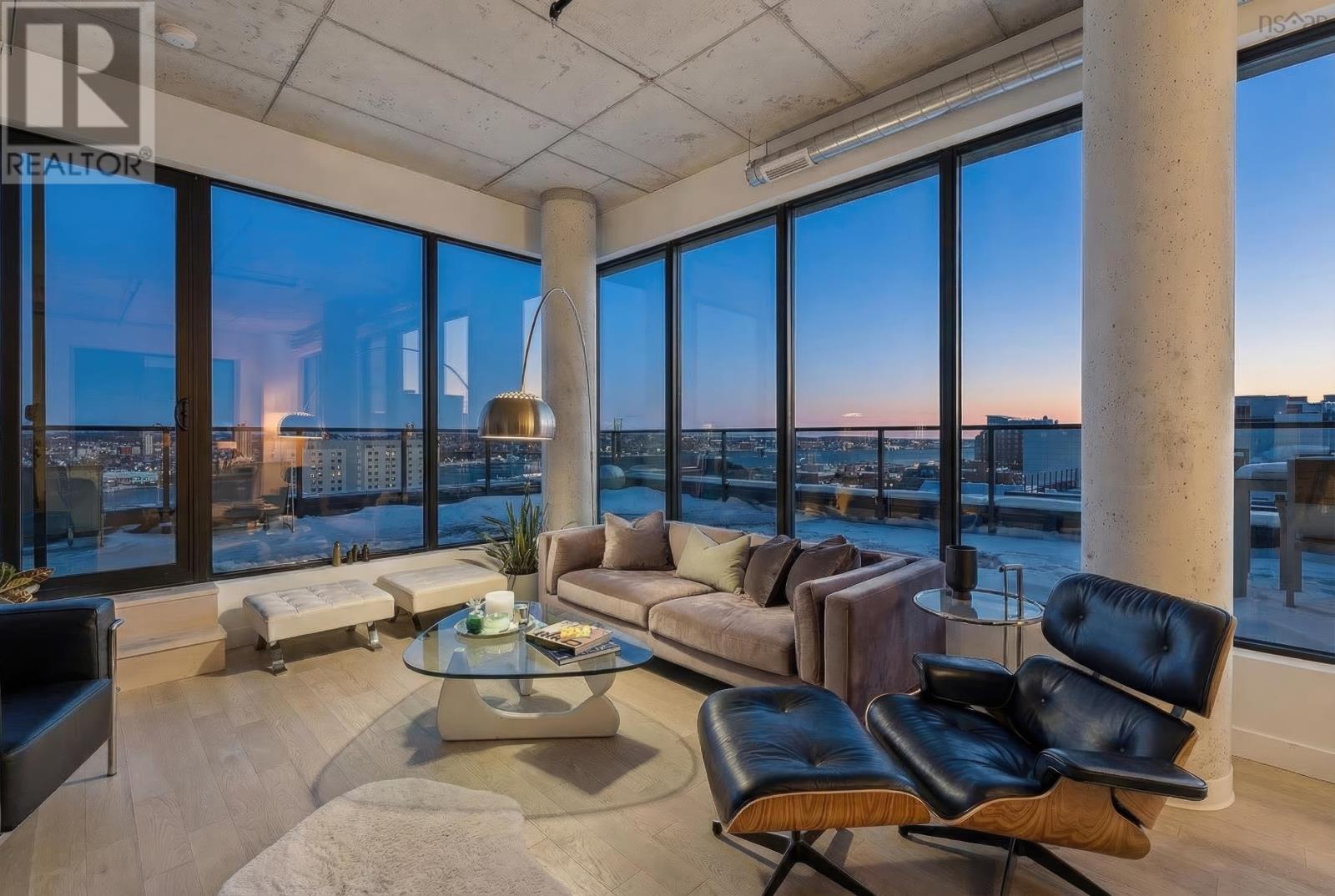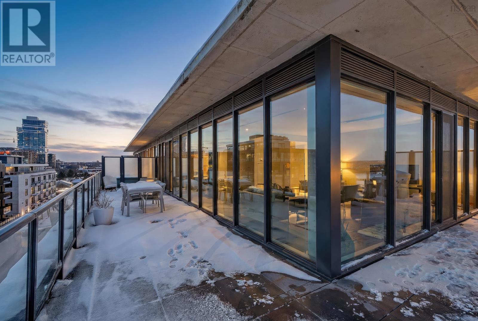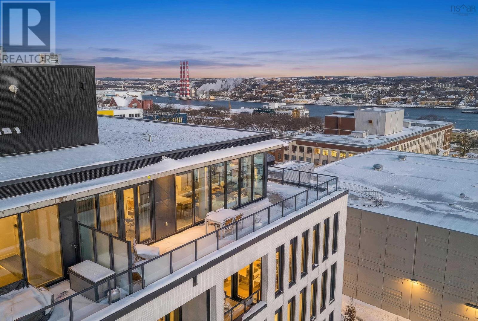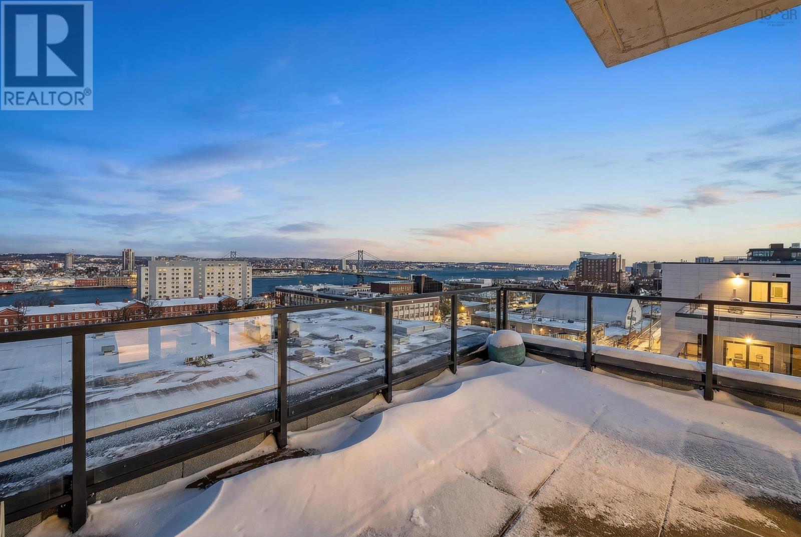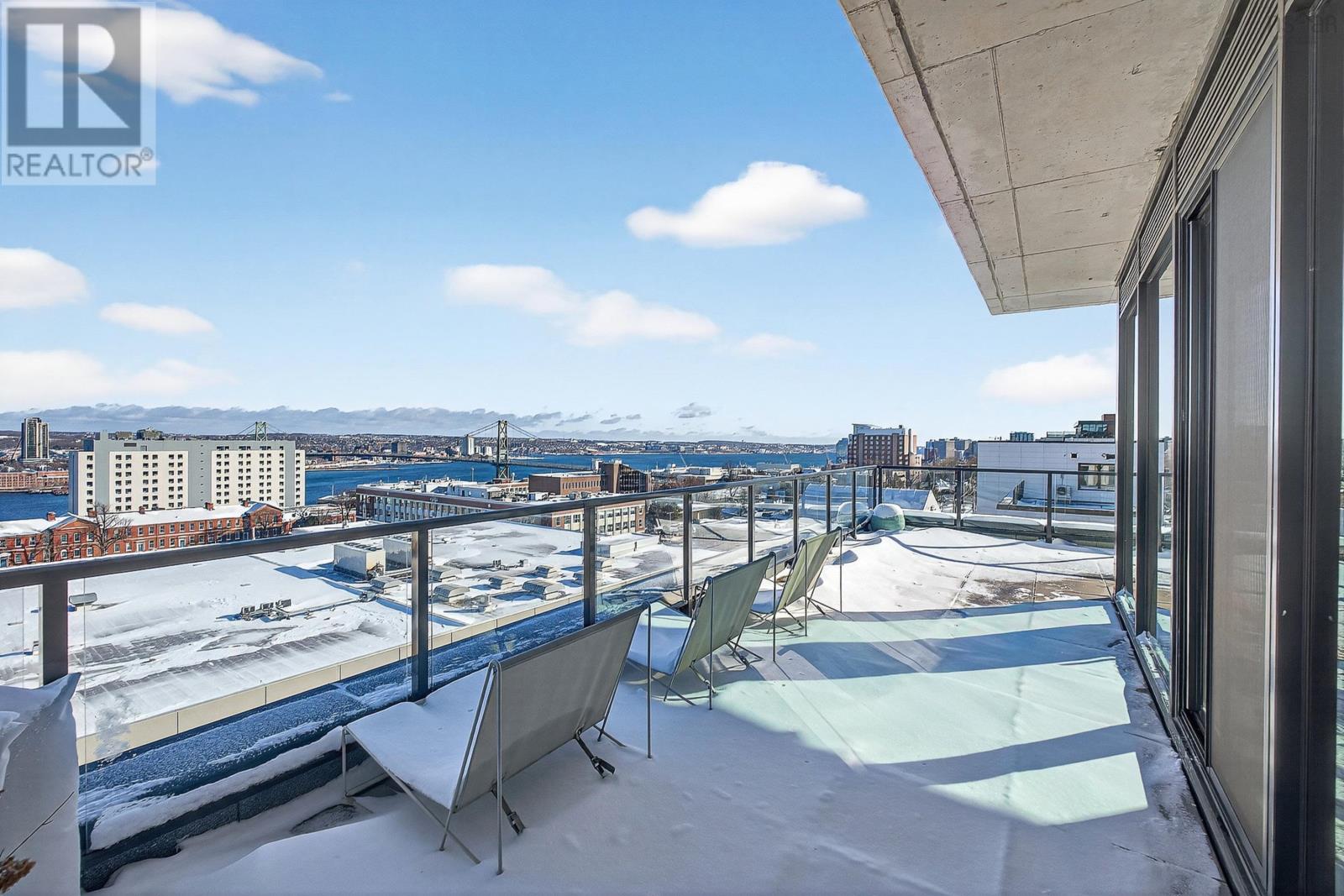 The Crown Jewel of the newly constructed NRTH building, Penthouse #1 is a one-of-a-kind residence positioned on the premier South-East corner of the top floor. Offering stunning panoramic views of the Halifax Harbour, the Macdonald Bridge, and the shimmering city skyline, this condo is the pinnacle of North End luxury. The defining feature is the massive 739 sq. ft. wrap-around corner terrace. Providing complete privacya rare luxury in condominium livingthis expansive outdoor oasis effectively doubles your living area. Whether hosting an open-air dinner party or enjoying a quiet morning coffee, you are surrounded by the most breathtaking vistas in the city. Inside, the exclusive Penthouse-level architecture shines with soaring ceilings and full-height windows that bathe the interior in natural light. The 865 sq. ft., 2-bedroom, 2-bathroom unit has been meticulously designed with extensive custom upgrades including premium kitchen and bathroom surfaces, backsplash, and bespoke hardware. The thoughtful layout affords maximum privacy with the bedrooms strategically positioned to offer separate retreats. Added touches include in-unit laundry, plenty of closet space, and panelled kitchen appliances. The NRTH building elevates the urban experience with a suite of amenities including a gym, yoga room, and secure bicycle storage. Designed for a forward-thinking lifestyle, the property also includes a private deeded parking space equipped with a dedicated EV charger and a storage unit. Located just steps from the historic Hydrostone Market, you are immersed in a "village in the city" vibe, surrounded by Halifaxs most celebrated shops and restaurants. Penthouse #1 at NRTH is more than just a residence; it is a private sanctuary with a front-row seat to the very best of Halifax. See Virtual Tour. (231722292)