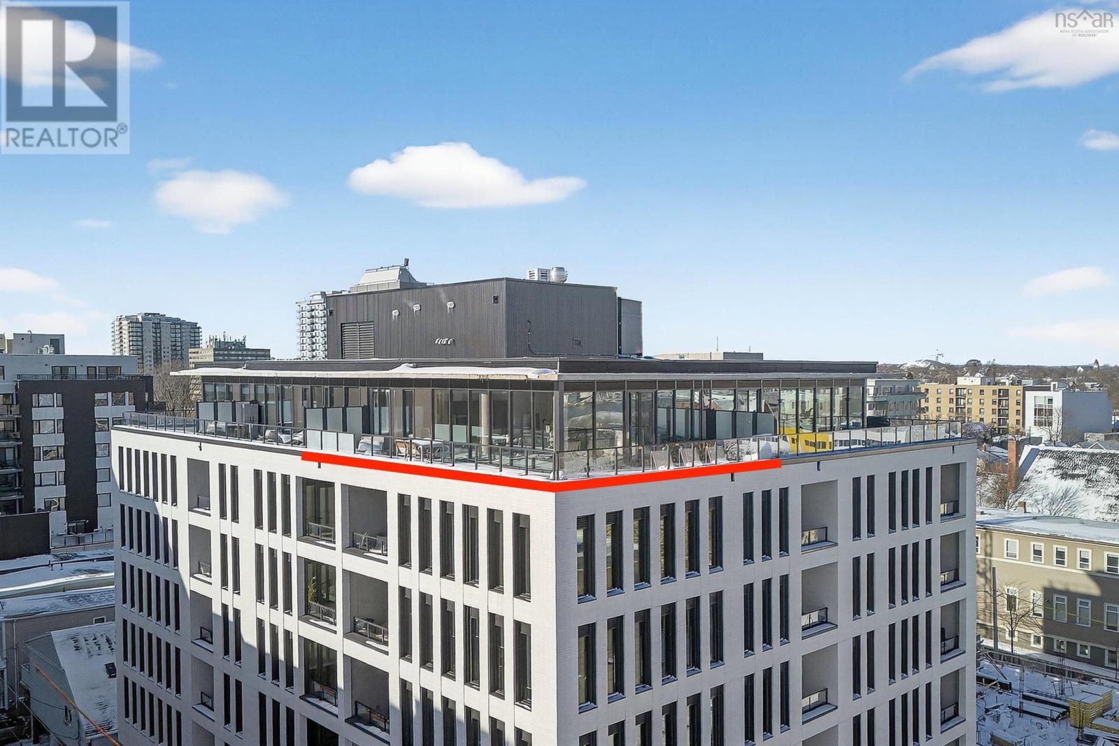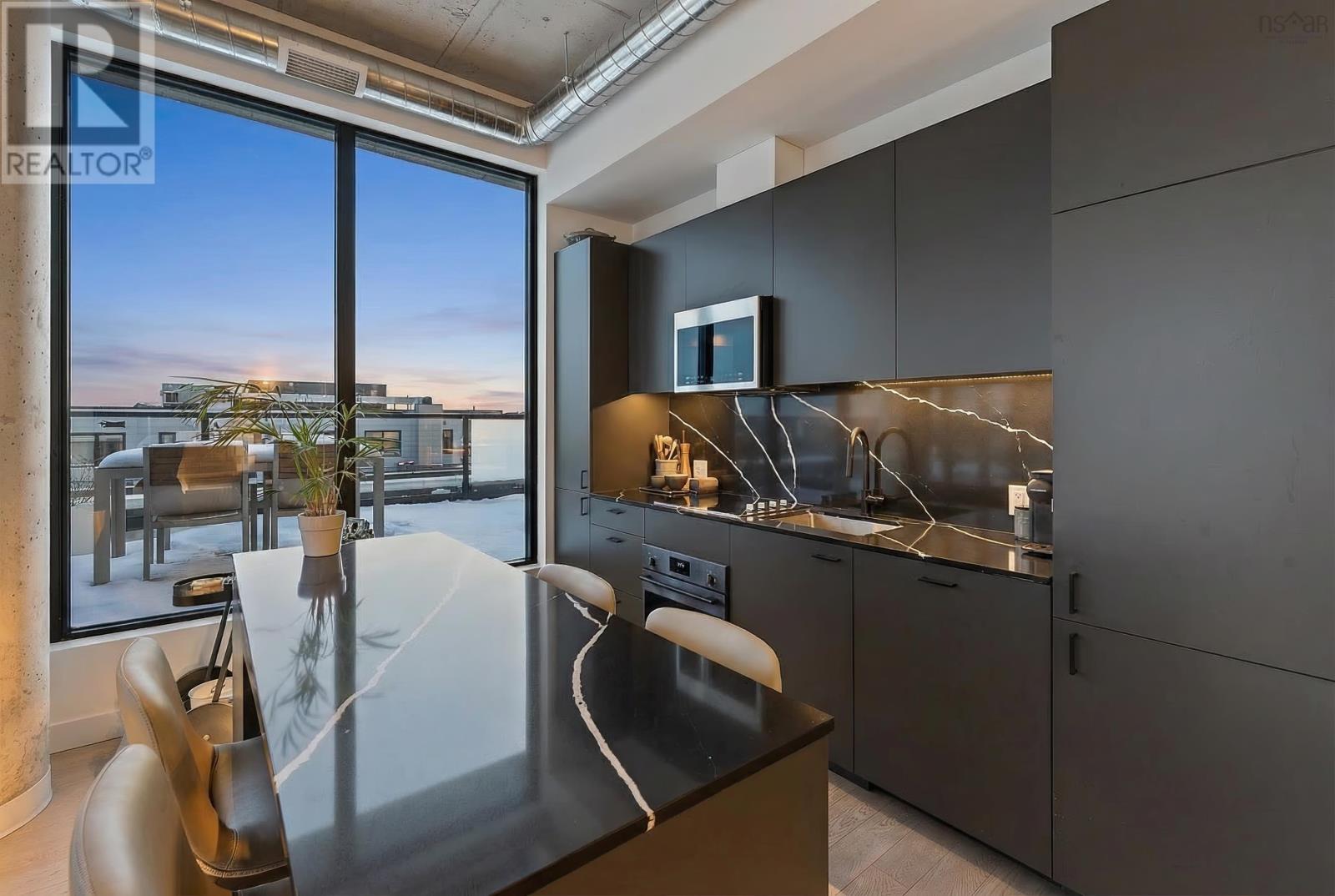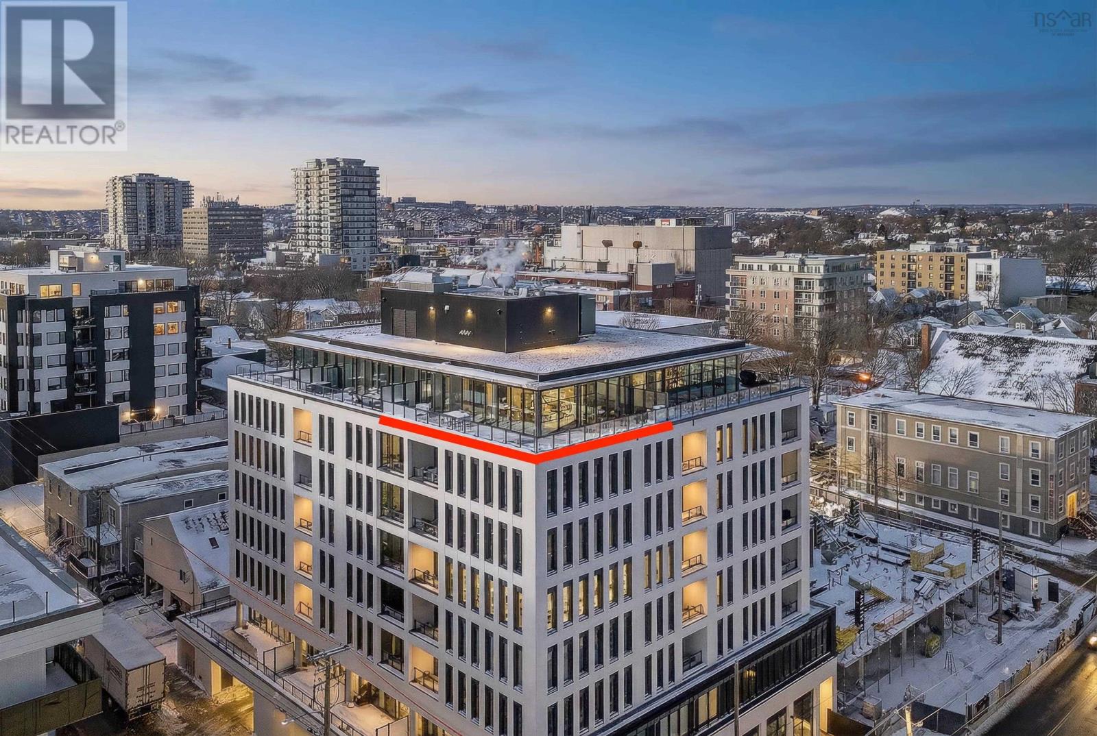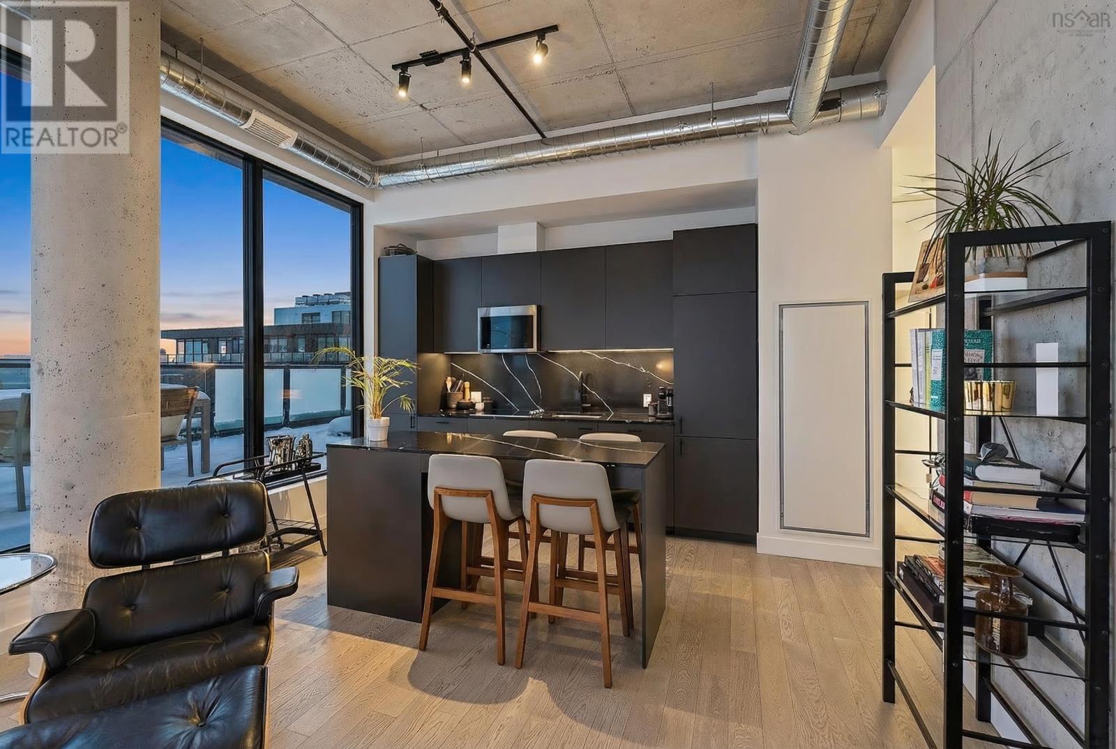 The Crown Jewel of the newly constructed NRTH building, Penthouse #1 is a one-of-a-kind residence positioned on the premier South-East corner of the top floor. Offering stunning panoramic views of the Halifax Harbour, the Macdonald Bridge, and the shimmering city skyline, this condo is the pinnacle of North End luxury. The defining feature is the massive 739 sq. ft. wrap-around corner terrace. Providing complete privacya rare luxury in condominium livingthis expansive outdoor oasis effectively doubles your living area. Whether hosting an open-air dinner party or enjoying a quiet morning coffee, you are surrounded by the most breathtaking vistas in the city. Inside, the exclusive Penthouse-level architecture shines with soaring ceilings and full-height windows that bathe the interior in natural light. The 865 sq. ft., 2-bedroom, 2-bathroom unit has been meticulously designed with extensive custom upgrades including premium kitchen and bathroom surfaces, backsplash, and bespoke hardware. The thoughtful layout affords maximum privacy with the bedrooms strategically positioned to offer separate retreats. Added touches include in-unit laundry, plenty of closet space, and panelled kitchen appliances. The NRTH building elevates the urban experience with a suite of amenities including a gym, yoga room, and secure bicycle storage. Designed for a forward-thinking lifestyle, the property also includes a private deeded parking space equipped with a dedicated EV charger and a storage unit. Located just steps from the historic Hydrostone Market, you are immersed in a "village in the city" vibe, surrounded by Halifaxs most celebrated shops and restaurants. Penthouse #1 at NRTH is more than just a residence; it is a private sanctuary with a front-row seat to the very best of Halifax. See Virtual Tour. (231722292)
