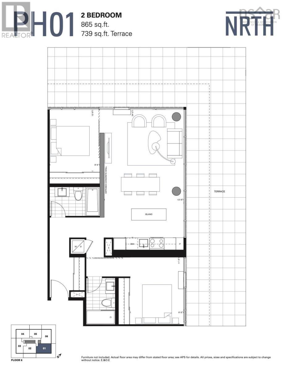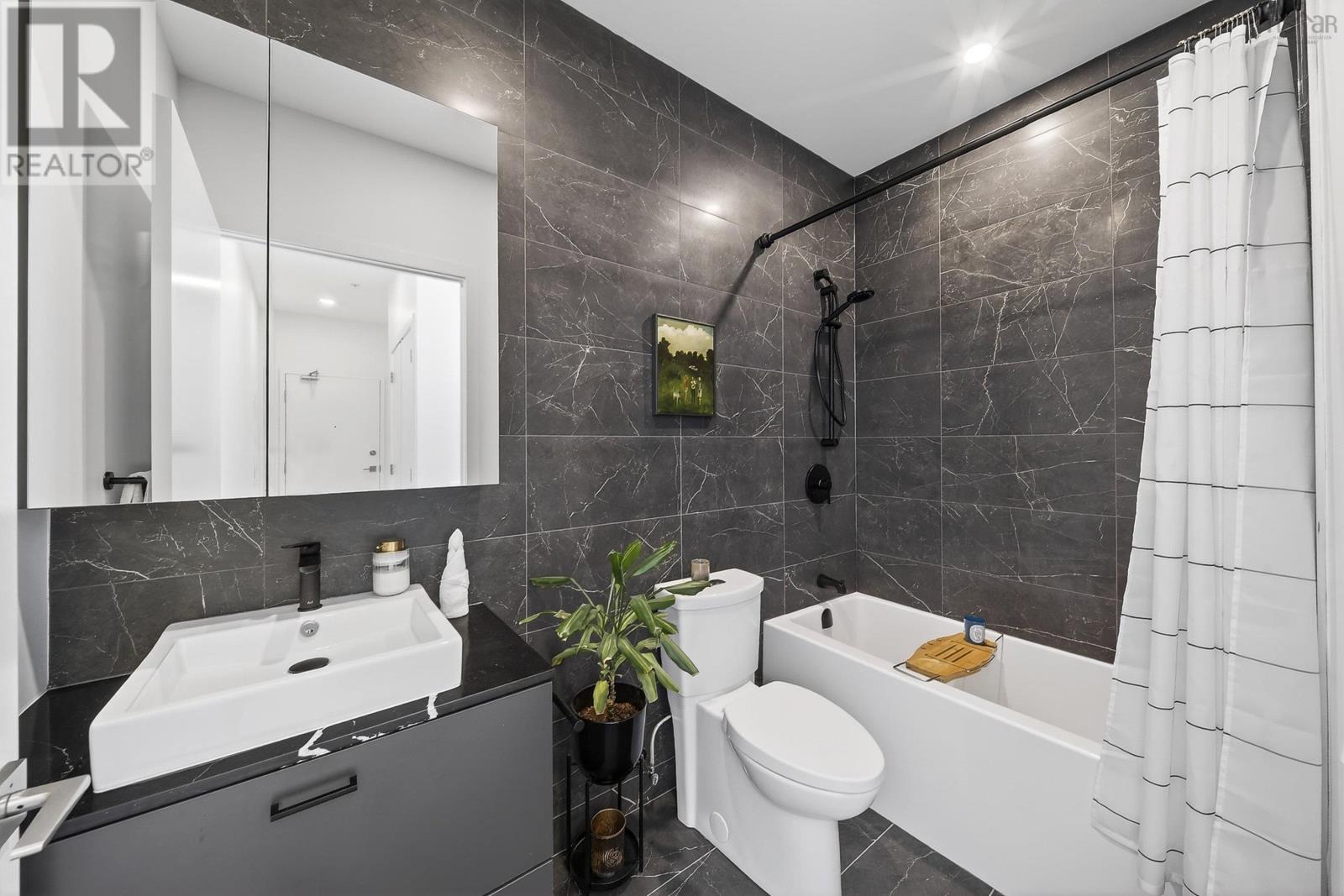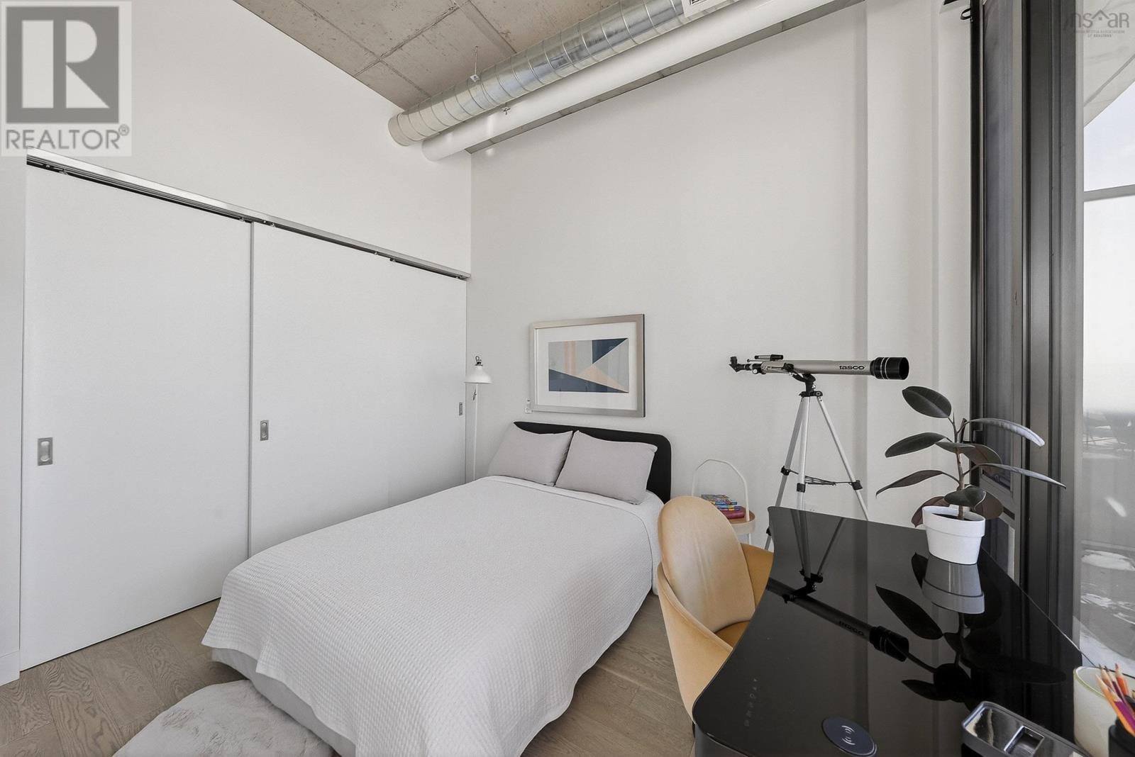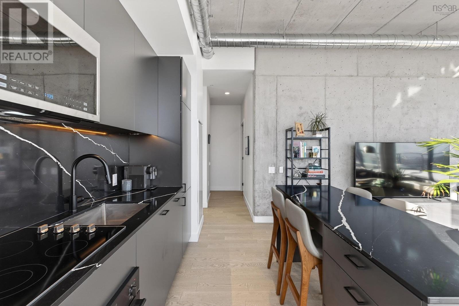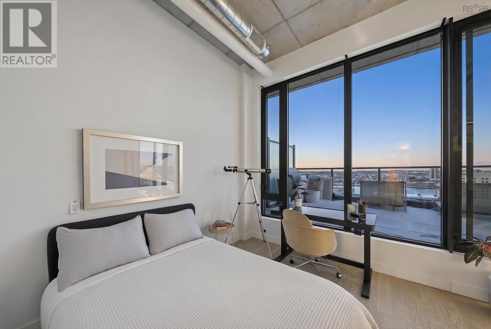 The Crown Jewel of the newly constructed NRTH building, Penthouse #1 is a one-of-a-kind residence positioned on the premier South-East corner of the top floor. Offering stunning panoramic views of the Halifax Harbour, the Macdonald Bridge, and the shimmering city skyline, this condo is the pinnacle of North End luxury. The defining feature is the massive 739 sq. ft. wrap-around corner terrace. Providing complete privacya rare luxury in condominium livingthis expansive outdoor oasis effectively doubles your living area. Whether hosting an open-air dinner party or enjoying a quiet morning coffee, you are surrounded by the most breathtaking vistas in the city. Inside, the exclusive Penthouse-level architecture shines with soaring ceilings and full-height windows that bathe the interior in natural light. The 865 sq. ft., 2-bedroom, 2-bathroom unit has been meticulously designed with extensive custom upgrades including premium kitchen and bathroom surfaces, backsplash, and bespoke hardware. The thoughtful layout affords maximum privacy with the bedrooms strategically positioned to offer separate retreats. Added touches include in-unit laundry, plenty of closet space, and panelled kitchen appliances. The NRTH building elevates the urban experience with a suite of amenities including a gym, yoga room, and secure bicycle storage. Designed for a forward-thinking lifestyle, the property also includes a private deeded parking space equipped with a dedicated EV charger and a storage unit. Located just steps from the historic Hydrostone Market, you are immersed in a "village in the city" vibe, surrounded by Halifaxs most celebrated shops and restaurants. Penthouse #1 at NRTH is more than just a residence; it is a private sanctuary with a front-row seat to the very best of Halifax. See Virtual Tour. (231722292)