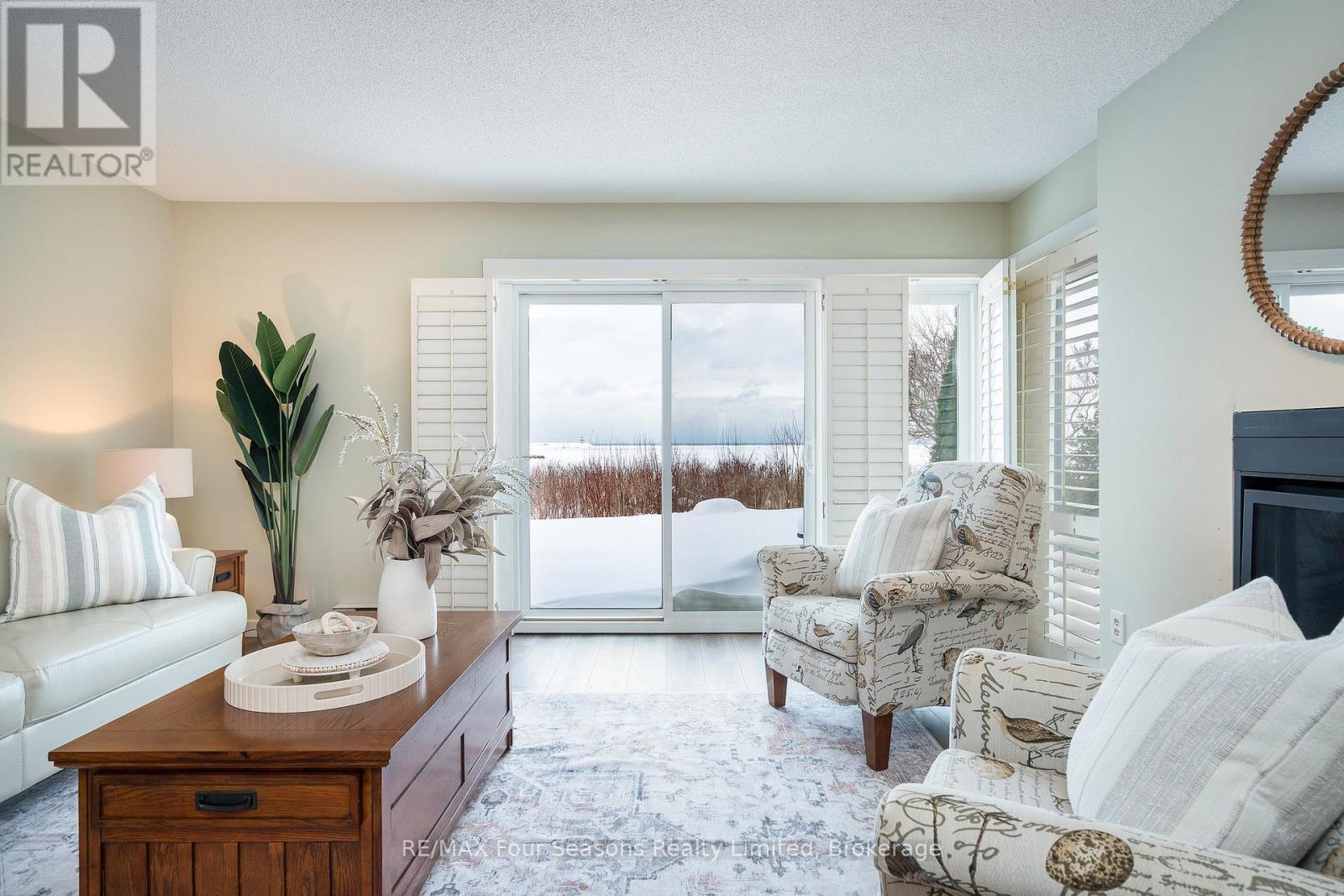 Wake up every day feeling like you're on vacation. This ground-level 2-bedroom, 2-bathroom condo offers an unbeatable Georgian Bay lifestyle just minutes from Collingwood. With a spacious kitchen, a separate laundry room, and walkouts from both the living room and bedroom, indoor living flows effortlessly to a private patio overlooking the bay-your front-row seat to sunrise, sunsets, and ever-changing water views. Step outside to private walking trails, spend winter days skiing at Blue Mountain, summers golfing or by the water, and enjoy vibrant, year-round activities close to home. Whether you're seeking a full-time residence, weekend retreat, or low-maintenance lifestyle surrounded by nature, this is a place where memories are made and every season is something to look forward to. (41832483)