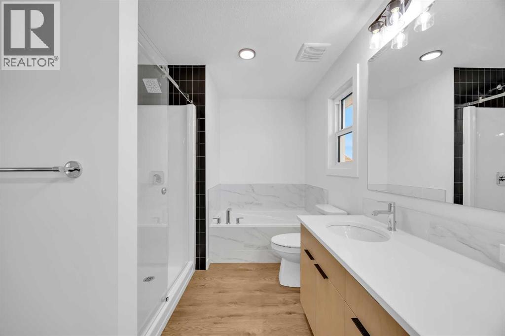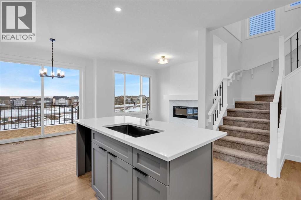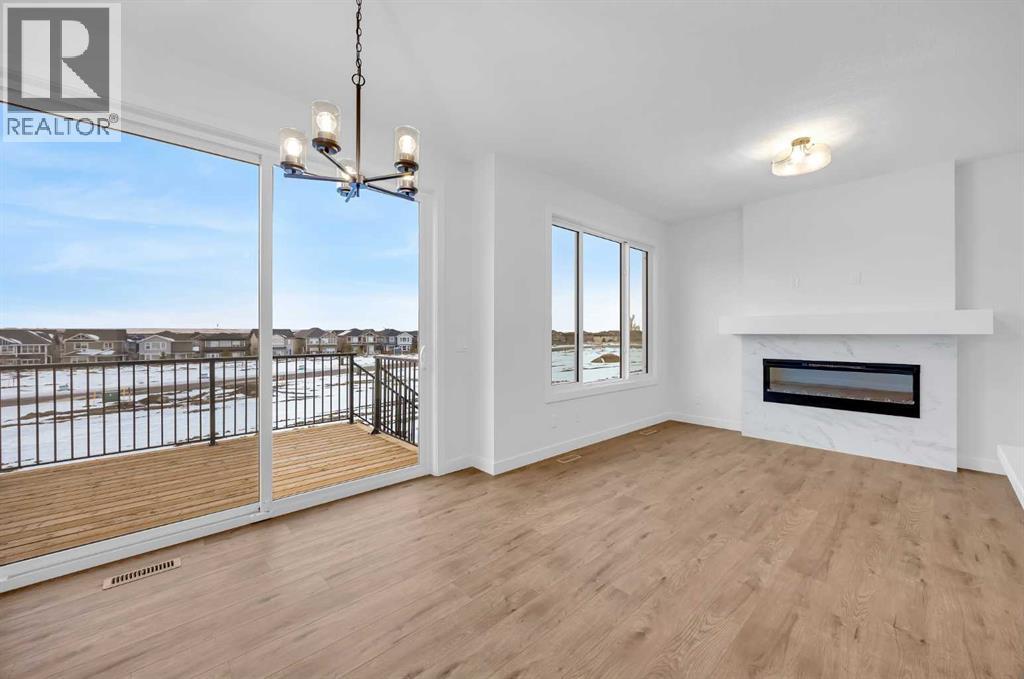 Welcome to The Abbott, where timeless design meets everyday functionality in the heart of the vibrant Airdrie community. Built by a trusted builder with over 70 years of experience, this thoughtfully designed home showcases designer curated interior selections, creating a warm and personalized living space. Energy efficient construction, smart home features, and moving concierge services add exceptional value and convenience.The chef inspired kitchen features stainless steel appliances, a gas range, chimney style hood fan, and a walk in pantry. A main floor bedroom and full bathroom provide flexibility for guests or multi generational living, while the separate side entrance enhances functionality. Unwind on your private rear wood deck, gather by the electric fireplace, or enjoy the spacious vaulted bonus room with LVP flooring perfect for relaxing or entertaining.The primary retreat offers a luxurious 5-piece ensuite with dual sinks, a bank of drawers, a soaker tub, and a separate glass shower. Elevated finishes such as paint grade railings with iron spindles and a tray ceiling in the primary bedroom reflect the quality craftsmanship throughout.Located in one of Alberta’s most desirable and fast growing communities, Airdrie is known for its strong sense of community, family friendly neighbourhoods, and abundance of parks, pathways, and recreational amenities. Residents enjoy excellent schools, local shops, cafes, and year round community events. With quick access to Calgary International Airport, CrossIron Mills Shopping Centre, and major commuter routes, Airdrie offers the perfect balance of small-town charm and big city convenience.This is more than a home it’s a lifestyle. (31469042)