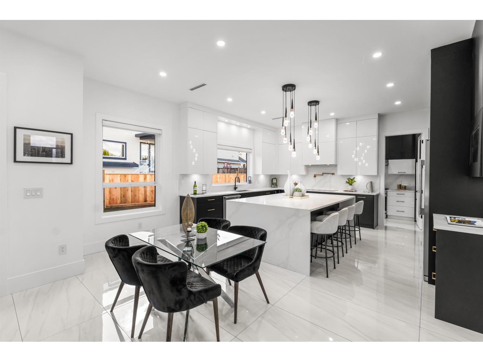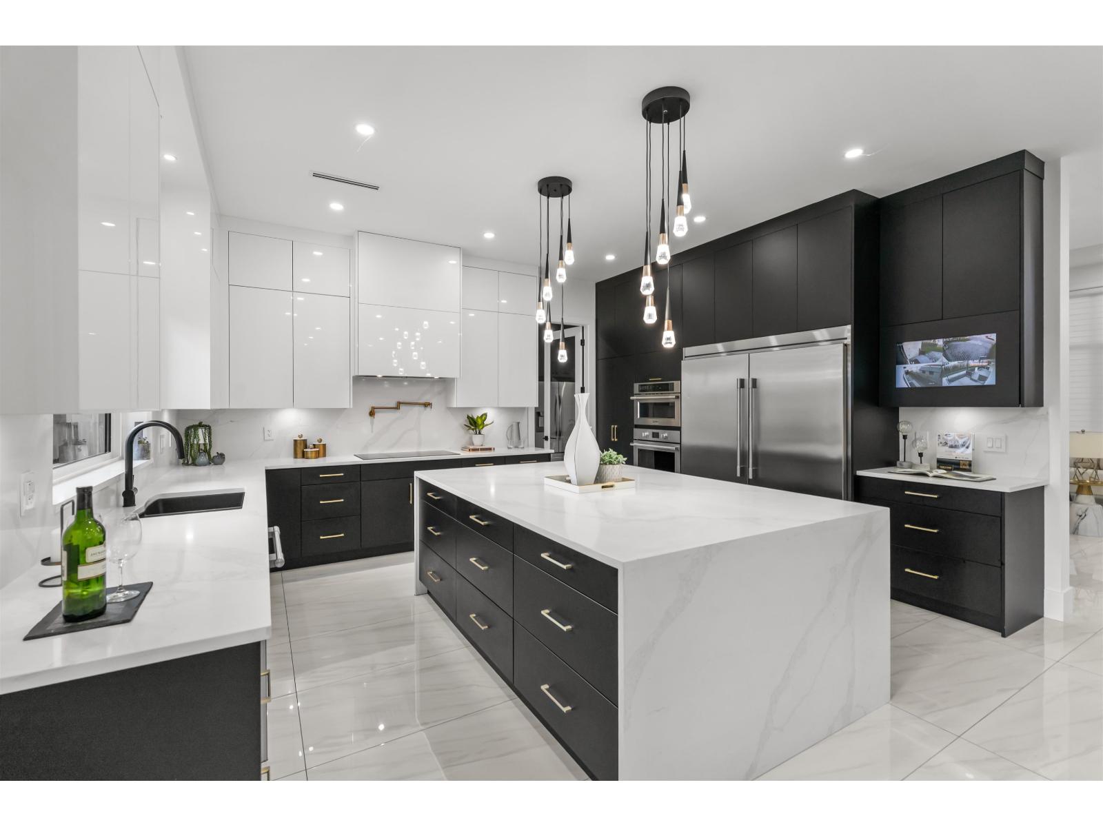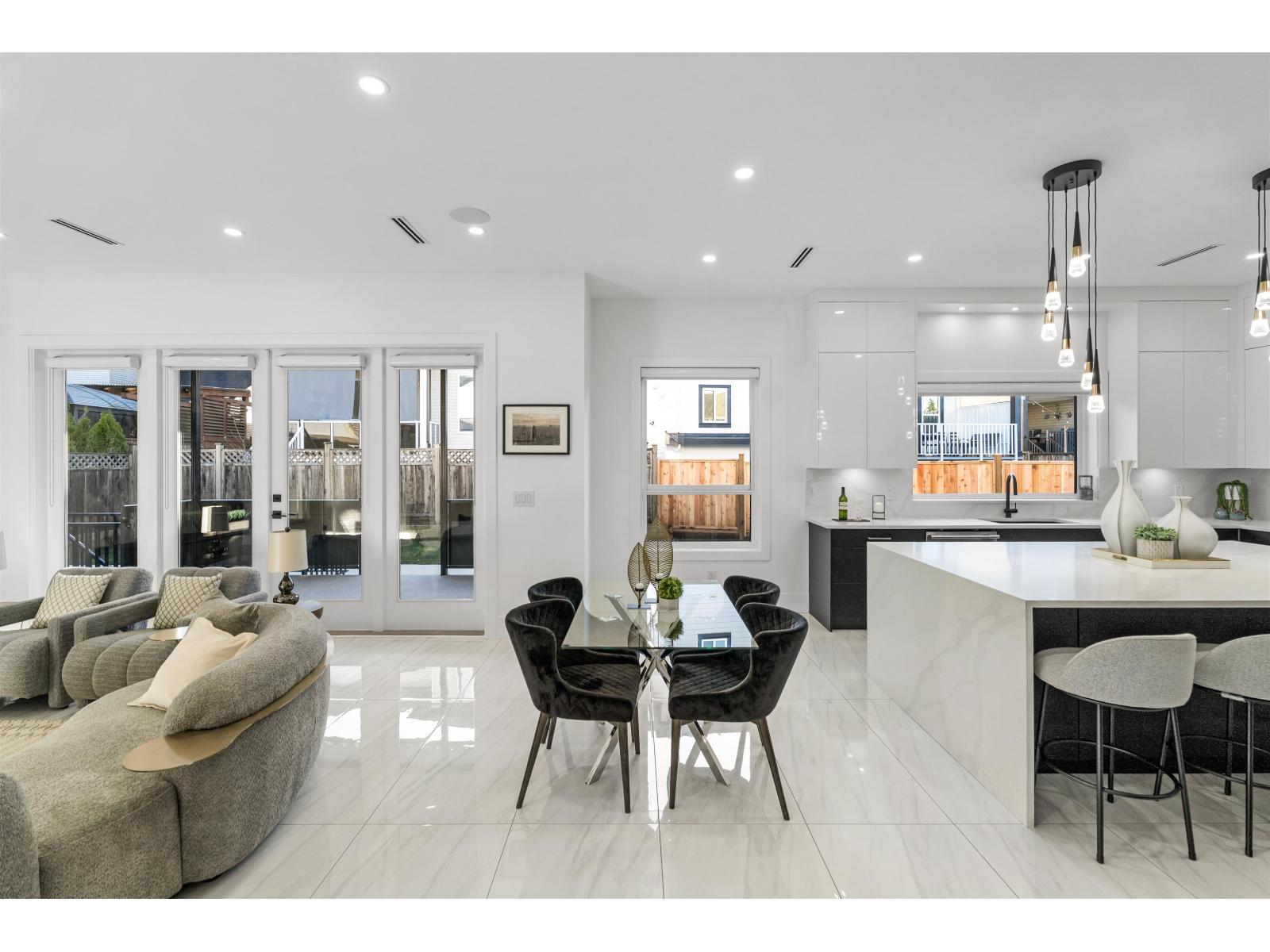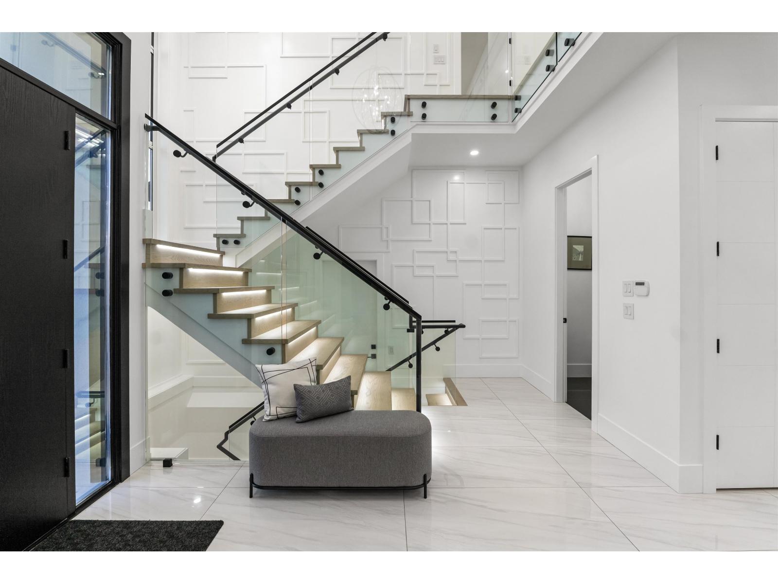 A gorgeous custom built home showcasing elegant design & modern living. The main level showcases formal living & dining rooms, expansive family room, nook, a chef's gourmet kitchen with huge island, spacious spice kitchen, & pantry. Primary bedroom on the main floor or use as an office. Upstairs features a Primary bedroom & three additional bedrooms, each with its own private ensuites. The basement level is designed for entertainment & income, featuring a private theatre room with bar & full bathroom, plus two suites (2-bedroom & 1-bedroom). Radiant Heating, HVAC, & Air Conditioning throughout. Extra-wide driveway. Ideally located near both levels of schools, shopping, recreation centers, future SkyTrain Station, & easy access to major highways. Open House, Sat/Sun, Dec 20/21 2-4pm. (32270618)