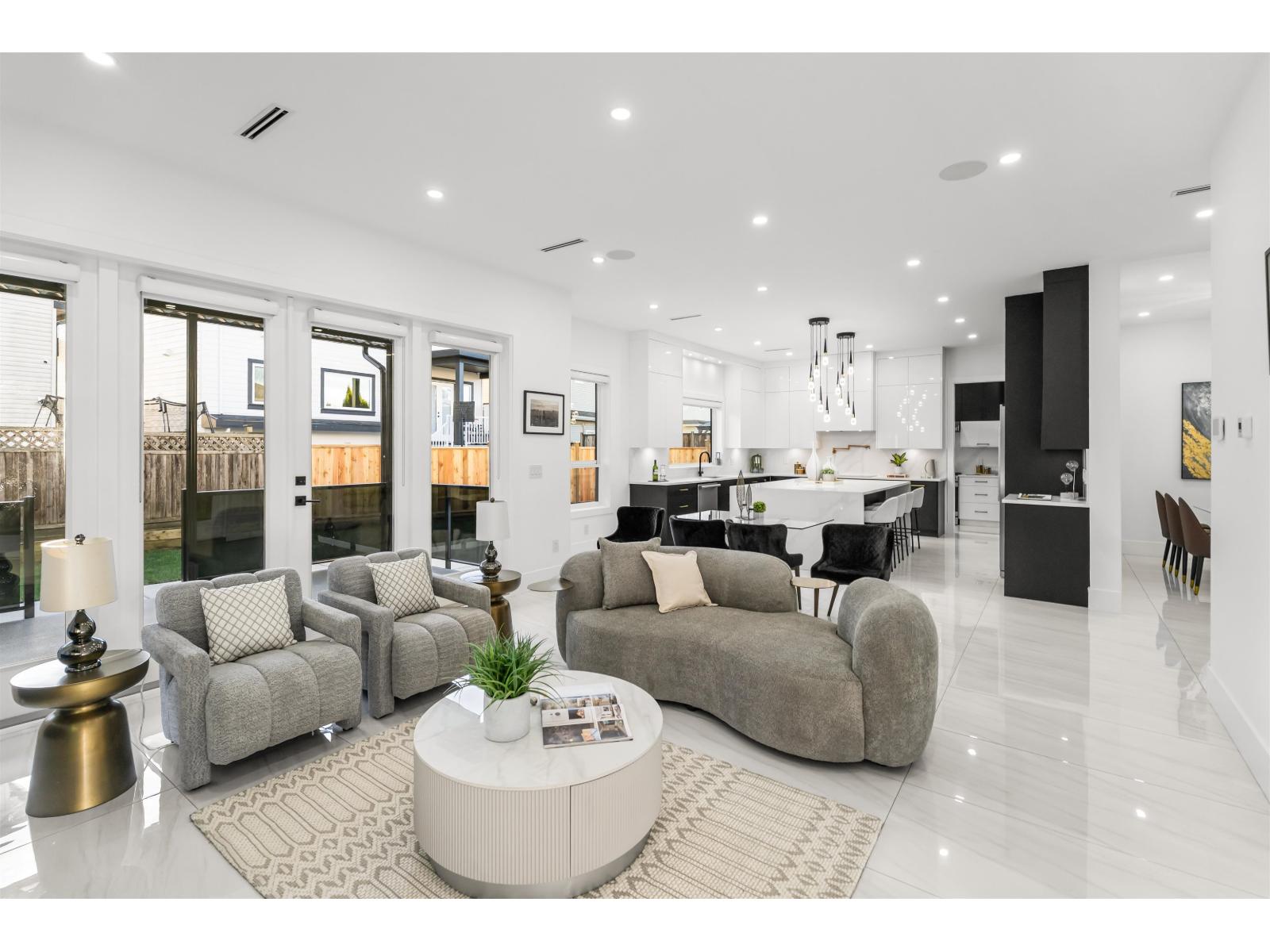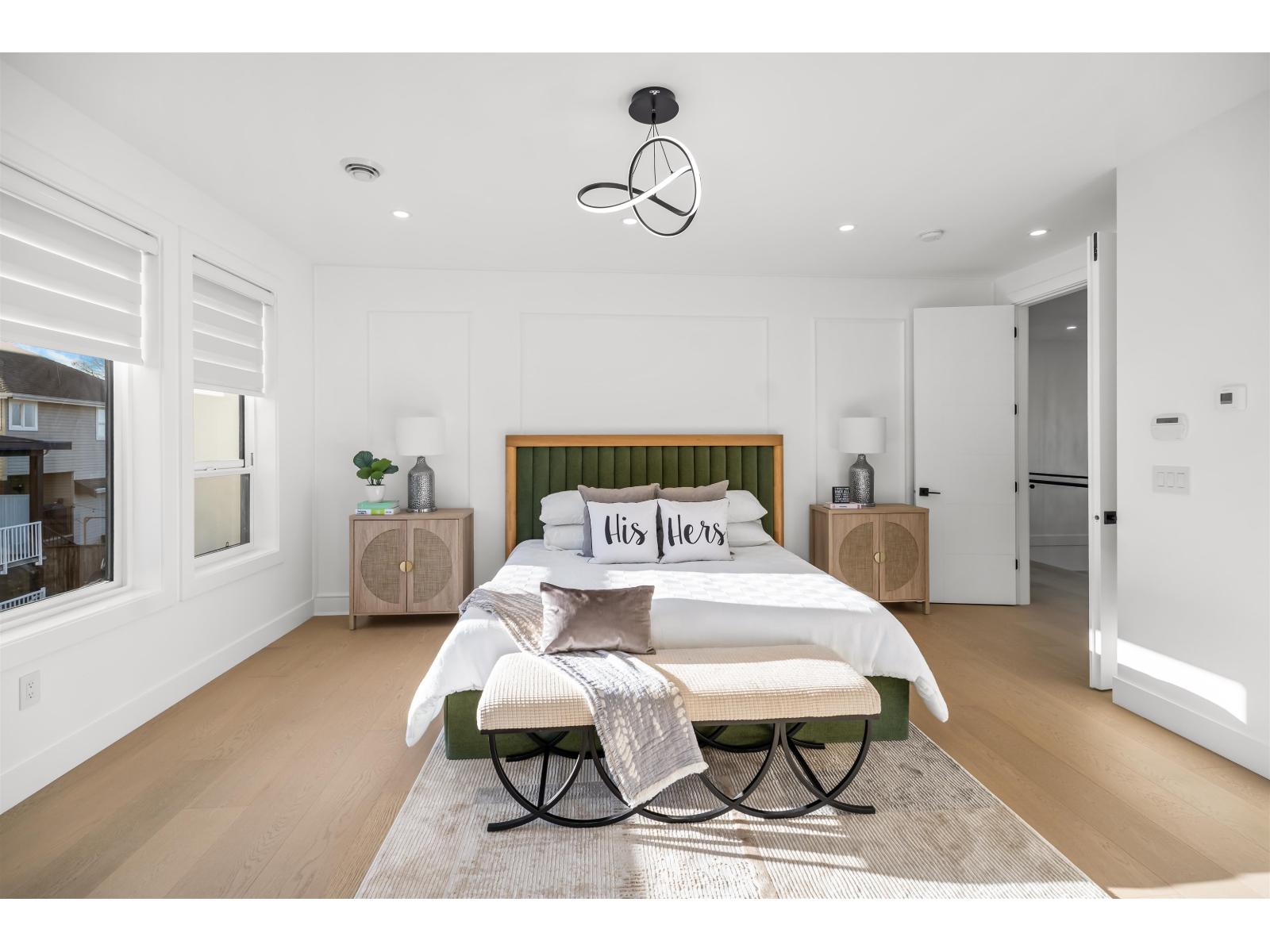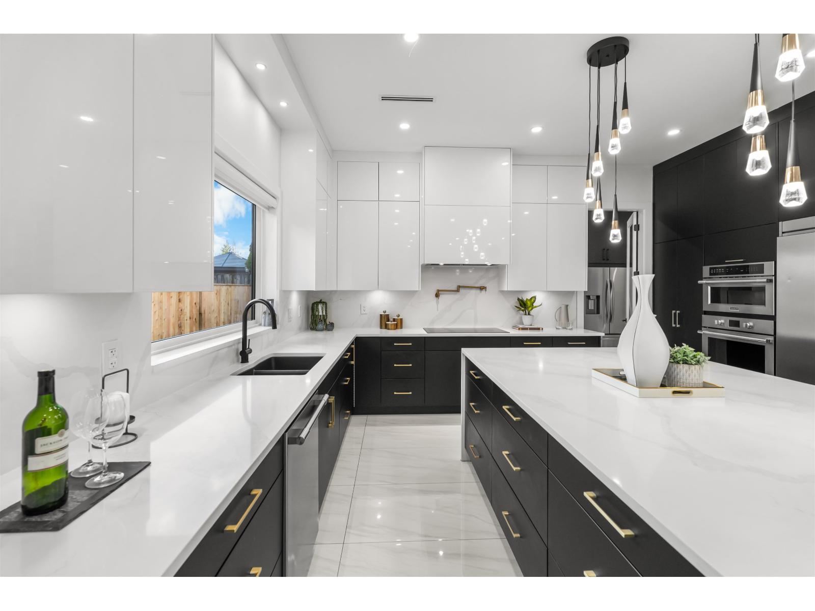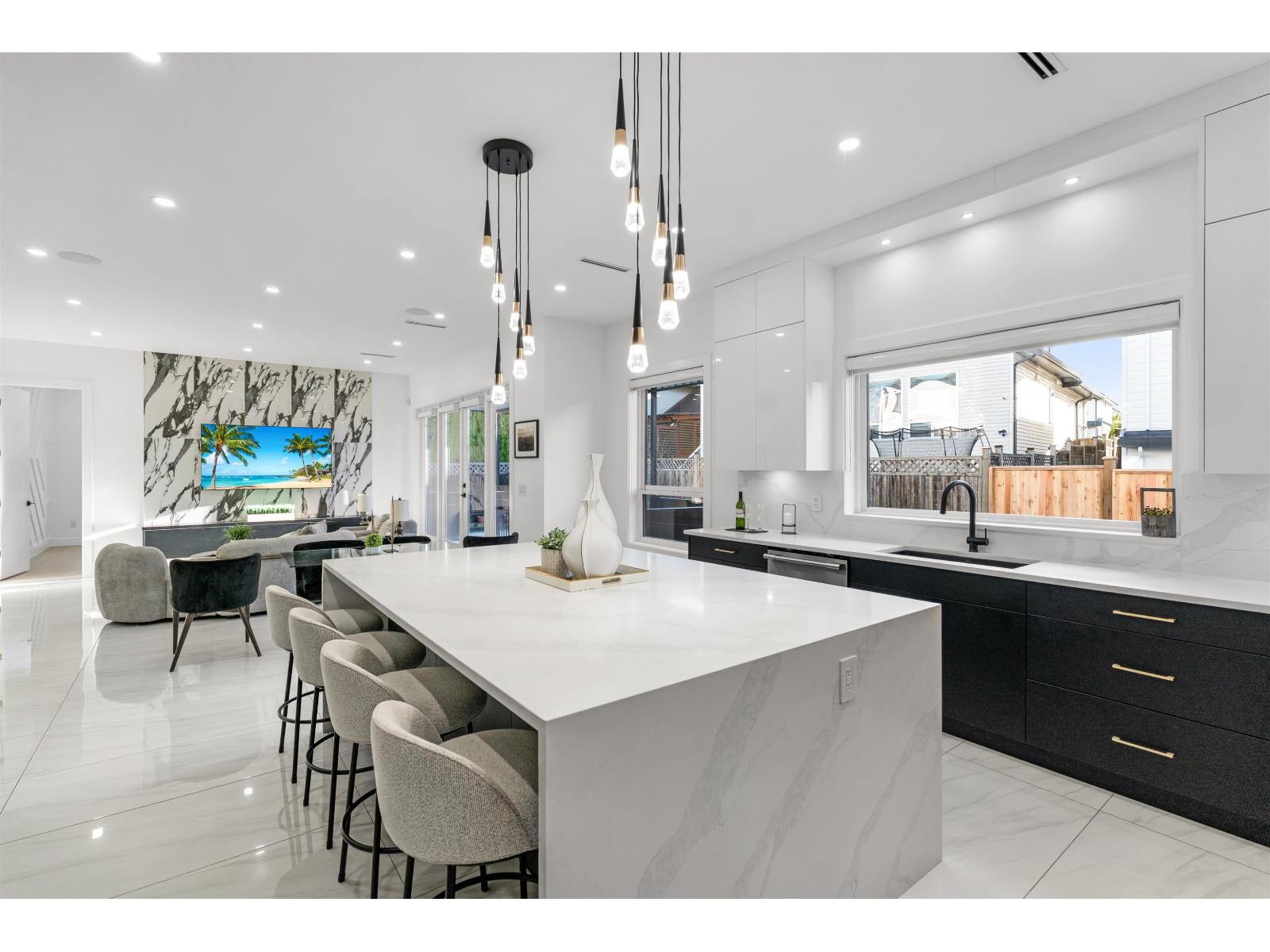A gorgeous custom built home showcasing elegant design & modern living. The main level showcases formal living & dining rooms, expansive family room, nook, a chef's gourmet kitchen with huge island, spacious spice kitchen, & pantry. Primary bedroom on the main floor or use as an office. Upstairs features a Primary bedroom & three additional bedrooms, each with its own private ensuites. The basement level is designed for entertainment & income, featuring a private theatre room with bar & full bathroom, plus two suites (2-bedroom & 1-bedroom). Radiant Heating, HVAC, & Air Conditioning throughout. Extra-wide driveway. Ideally located near both levels of schools, shopping, recreation centers, future SkyTrain Station, & easy access to major highways. Open House, Sat/Sun, Dec 20/21 2-4pm. (32270618)