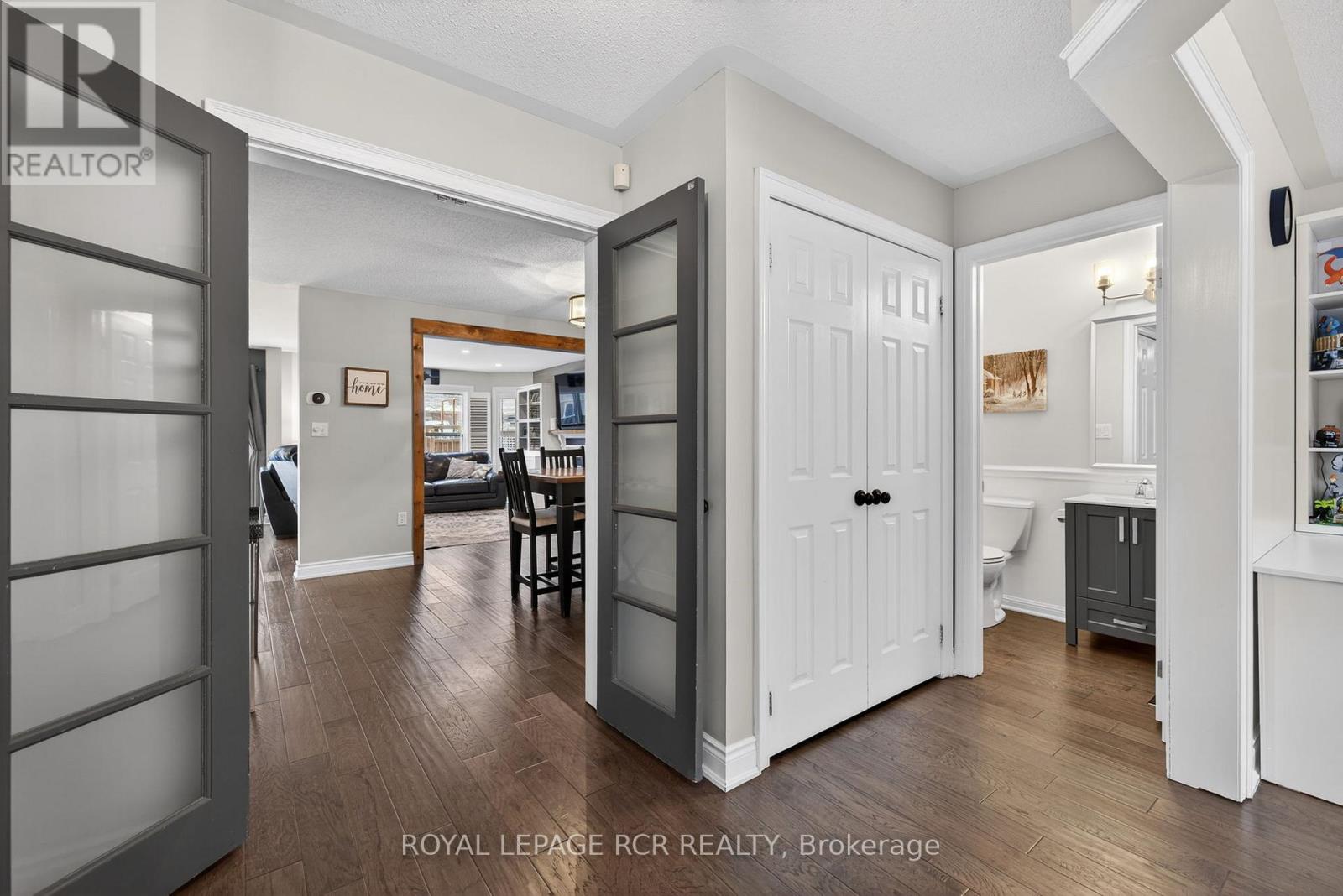 Splendid Mattamy 4 bedroom, 3 bathroom "Inverness" model home, 2403 sq ft and finished basement. Renovated family home with spacious open concept design, upgraded stylish kitchen with quartz countertops and filled with natural light. Primary bedroom with walk-in closet, changing bench and 4pc ensuite. Convenient 2nd floor laundry. Large living room with gas fireplace. Lower level features a full gym and private movie theatre room. Immaculate lawn/gardens with new patio and pergola for outdoor enjoyment and entertaining. Close to walking trails, Boyne River. **Shingles (2022), Furnace (2024), new windows & doors (2021), newer appliances. (41841048)
