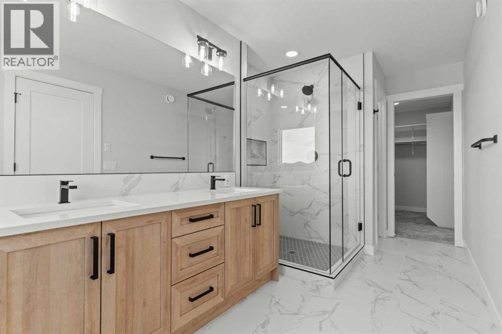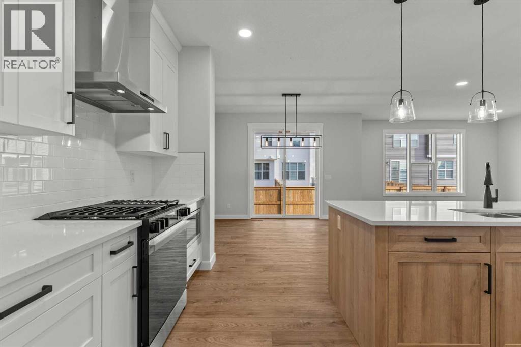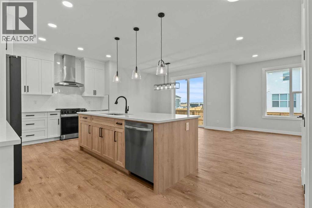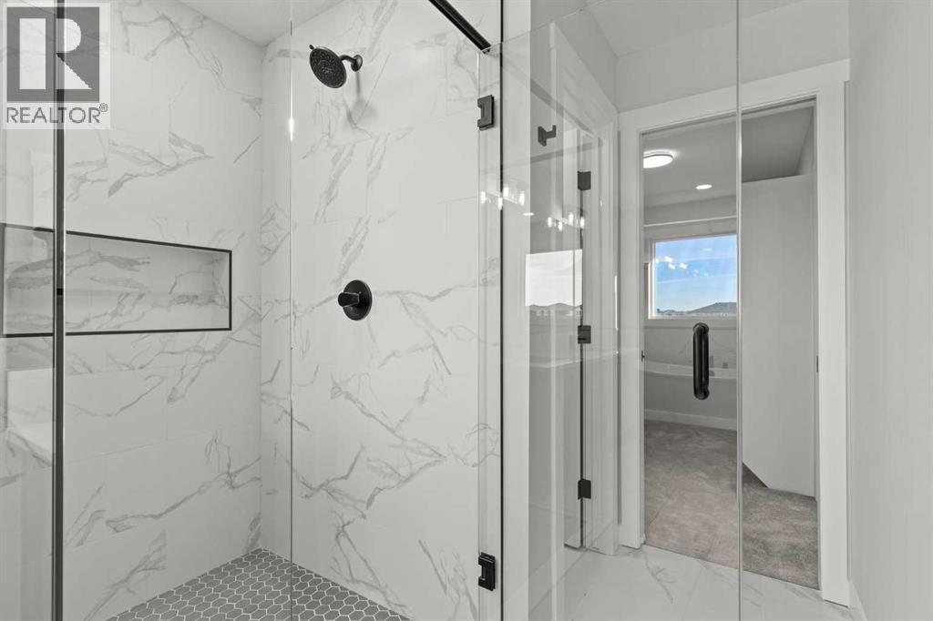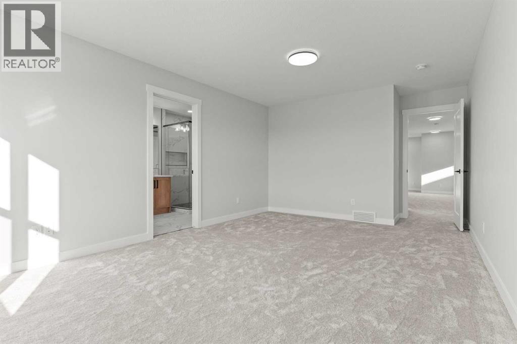 Welcome to 267 Kinniburgh Loop, a truly exceptional luxury home offering 3,294 sq. ft. of living space, 6 bedrooms, 4 full bathrooms, and a fully finished basement and Spice Kitchen. This home has been thoughtfully designed for both everyday living and entertaining. From the moment you arrive, you’re welcomed by an impressive oversized front door and a spacious, open entry that immediately sets the tone for the quality found throughout the home. Just off the foyer is a large main-floor bedroom or office, conveniently connected to a full bathroom with a standing shower—ideal for guests or multigenerational living. Pictures of similar model home spec subject to change.As you move further into the home, you’ll be captivated by the stunning chef’s kitchen featuring a nearly 9-foot island, quartz countertops, stainless steel appliances, full-height cabinetry, and high-end luxury finishes. The main floor is completed by a spacious living room with an electric fireplace, dining area, spice kitchen, and a walk-through mudroom with direct access to the garage. Everyday convenience is elevated with three main-floor closets, including two in the kitchen and one in the mudroom.Upstairs, a generous bonus room and sitting area create the perfect secondary living space. The expansive primary bedroom offers breathtaking pond views and connects to a spa-inspired 5-piece ensuite featuring dual vanities, a large glass shower with mosaic tile base, a freestanding tub, and a private toilet room. The ensuite flows seamlessly into the laundry room, which also offers access back to the bonus room for added functionality. The upper level is completed by two additional large bedrooms and another beautifully finished 5-piece bathroom, with no dropped beams on the main or upper floors for a clean, open feel.The fully finished basement extends the home’s versatility with two more spacious bedrooms, a large wet bar with fridge, and an additional washer and dryer hookup—ideal for extended f amily or entertaining. This home includes all of the renowned Golden Homes standards, such as true 9-foot ceilings on both the main floor and basement, triple-pane windows, side entry, matte black iron spindle railings, matte black hardware and fixtures, built-in shelving in the pantry and primary walk-in closet, upgraded carpet underlay, a tankless hot water heater, smart home features, gas lines to both the deck and garage, and a solar panel rough-in. The exterior is fully landscaped with the lot graded and loamed, sod installed to the side entry, and a front yard tree. (31473136)