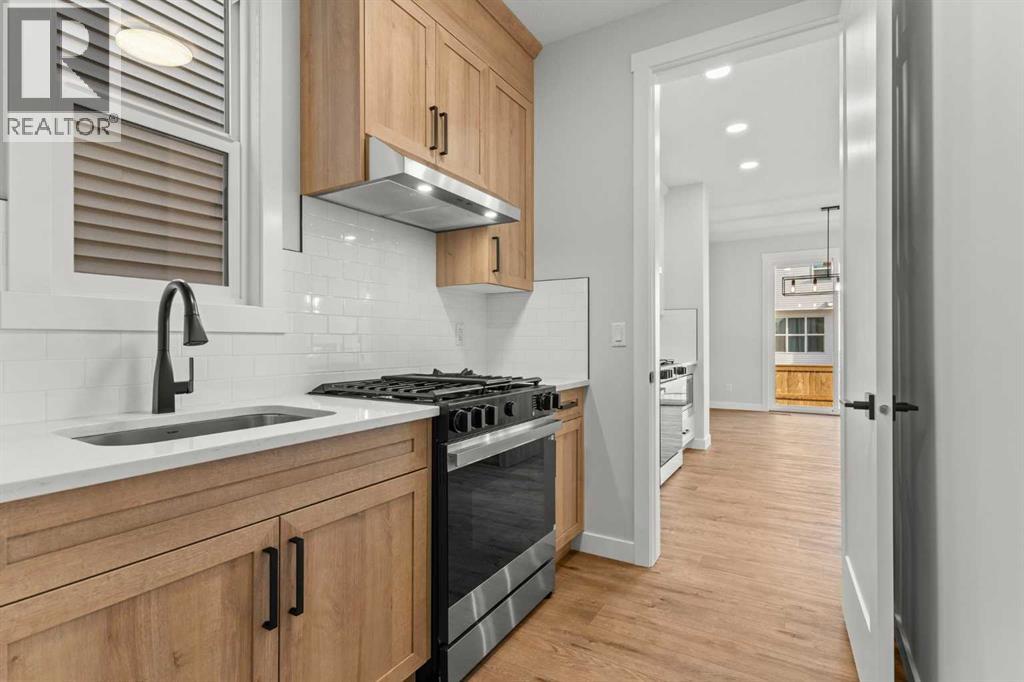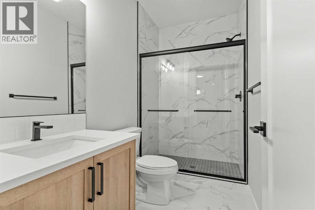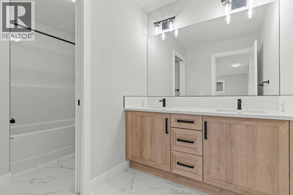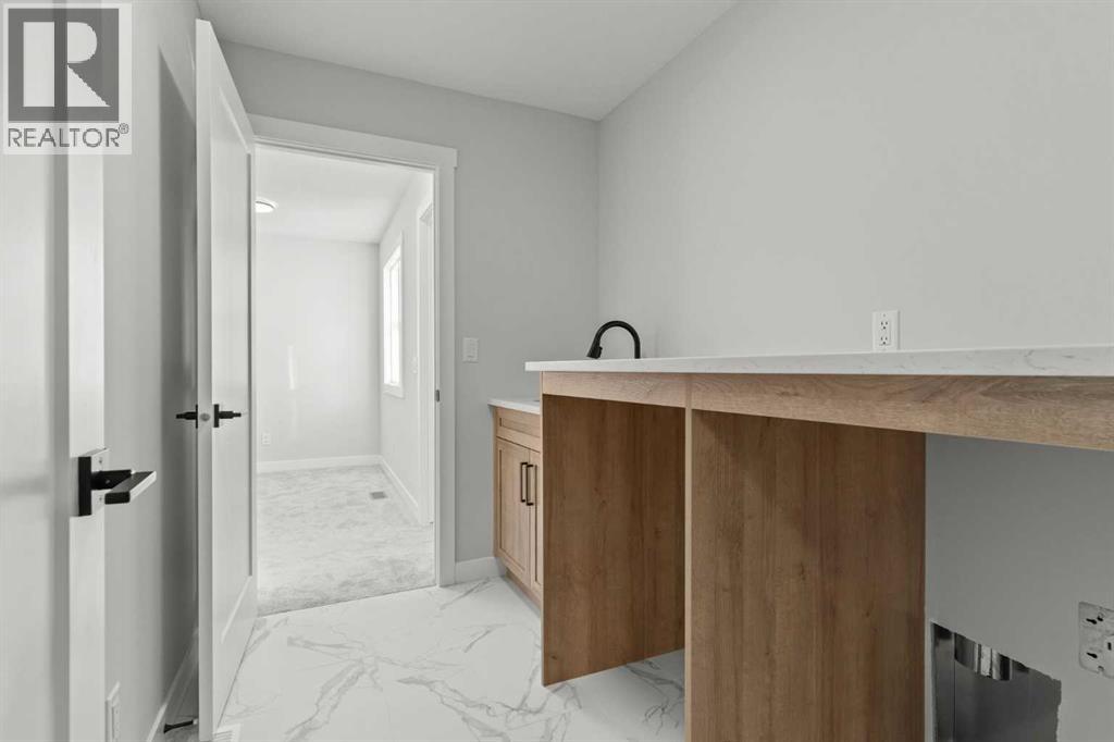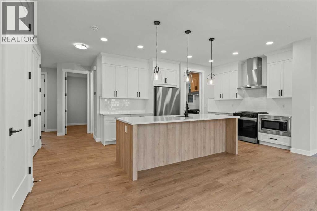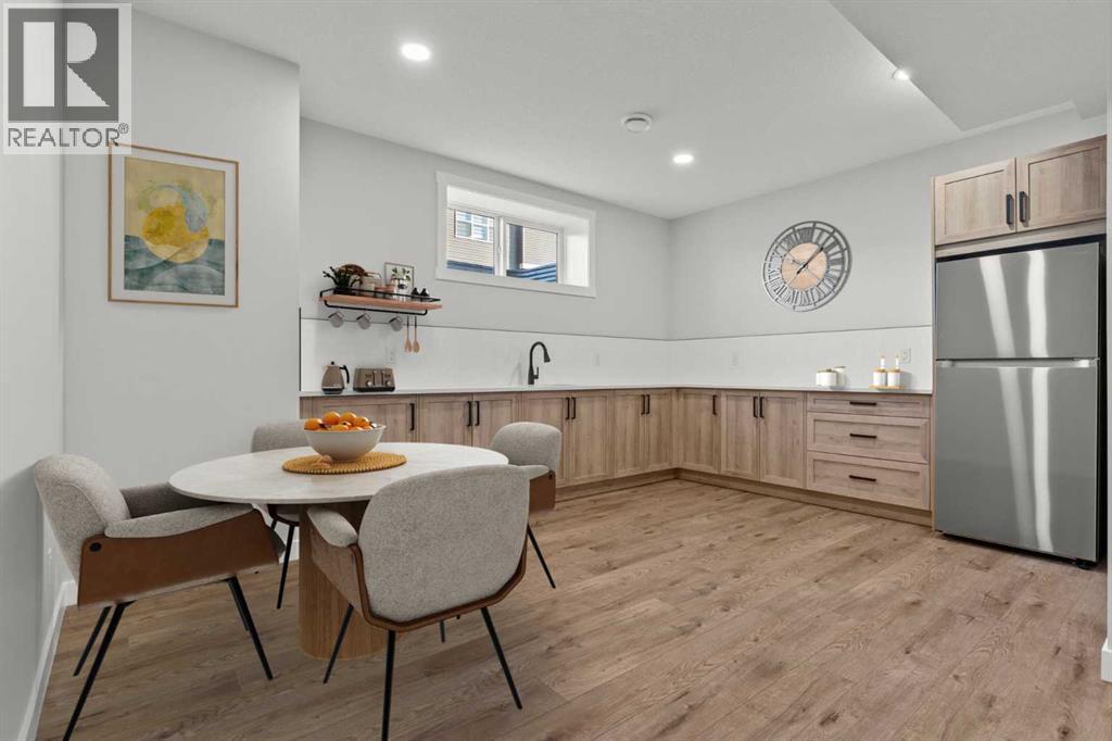 Welcome to 267 Kinniburgh Loop, a truly exceptional luxury home offering 3,294 sq. ft. of living space, 6 bedrooms, 4 full bathrooms, and a fully finished basement and Spice Kitchen. This home has been thoughtfully designed for both everyday living and entertaining. From the moment you arrive, you’re welcomed by an impressive oversized front door and a spacious, open entry that immediately sets the tone for the quality found throughout the home. Just off the foyer is a large main-floor bedroom or office, conveniently connected to a full bathroom with a standing shower—ideal for guests or multigenerational living. Pictures of similar model home spec subject to change.As you move further into the home, you’ll be captivated by the stunning chef’s kitchen featuring a nearly 9-foot island, quartz countertops, stainless steel appliances, full-height cabinetry, and high-end luxury finishes. The main floor is completed by a spacious living room with an electric fireplace, dining area, spice kitchen, and a walk-through mudroom with direct access to the garage. Everyday convenience is elevated with three main-floor closets, including two in the kitchen and one in the mudroom.Upstairs, a generous bonus room and sitting area create the perfect secondary living space. The expansive primary bedroom offers breathtaking pond views and connects to a spa-inspired 5-piece ensuite featuring dual vanities, a large glass shower with mosaic tile base, a freestanding tub, and a private toilet room. The ensuite flows seamlessly into the laundry room, which also offers access back to the bonus room for added functionality. The upper level is completed by two additional large bedrooms and another beautifully finished 5-piece bathroom, with no dropped beams on the main or upper floors for a clean, open feel.The fully finished basement extends the home’s versatility with two more spacious bedrooms, a large wet bar with fridge, and an additional washer and dryer hookup—ideal for extended f amily or entertaining. This home includes all of the renowned Golden Homes standards, such as true 9-foot ceilings on both the main floor and basement, triple-pane windows, side entry, matte black iron spindle railings, matte black hardware and fixtures, built-in shelving in the pantry and primary walk-in closet, upgraded carpet underlay, a tankless hot water heater, smart home features, gas lines to both the deck and garage, and a solar panel rough-in. The exterior is fully landscaped with the lot graded and loamed, sod installed to the side entry, and a front yard tree. (31473136)