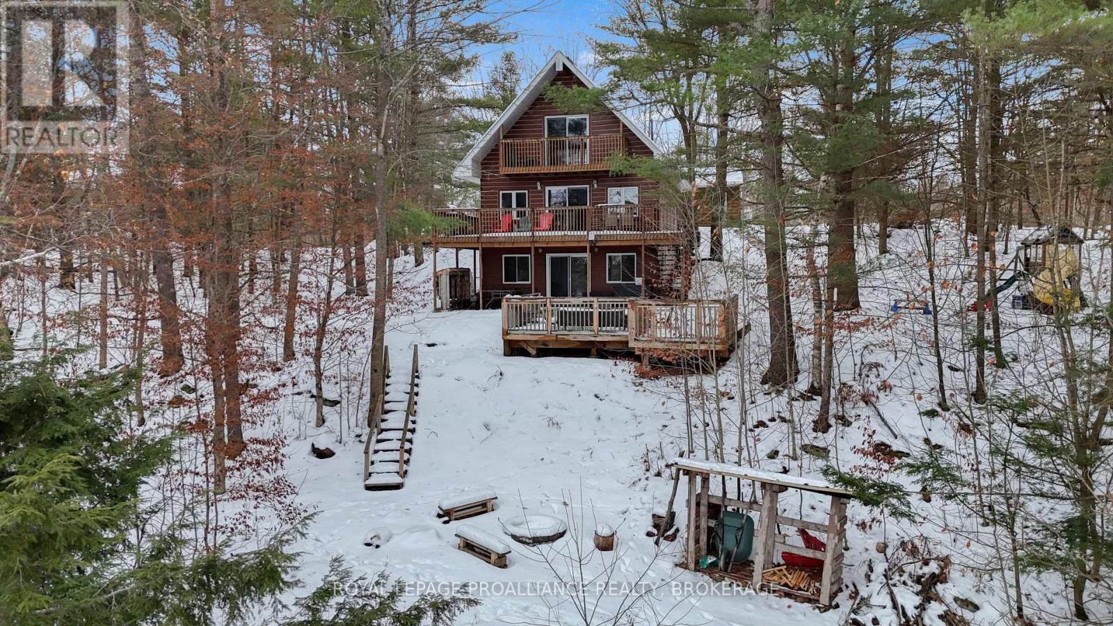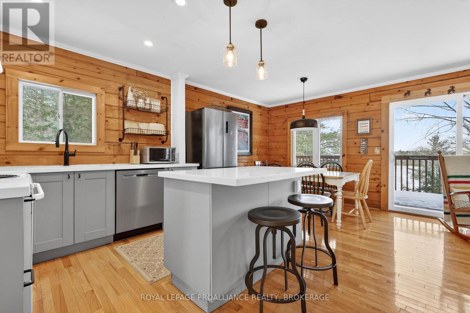 Year Round living on Fourteen Island Lake- and what a sweet one this is. Summer on the lake may be idyllic, but winter is equally lovely! A well maintained laneway leads you into this gem, built in 1999, and enjoyed for the last 10 years by our sellers and their family, who are only the second owners. A bright and open layout, with Lake views from nearly every room, there is more space here than you think. The airy main floor finds a full bath, the first bedroom, and a large living space open to the new kitchen and patio doors to one of two elevated decks. The upper floor has two more bedrooms, and another full bath. The finished lower level is a wonderful bonus, with ample family room space, a walkout to the yard and a cozy corner woodstove for those chilly lake evenings. A large storage room and the laundry area are here as well. 14 Island Lake is deep and clear and the waterfront community is second to none. There aren't many properties that come up here often, and one would be very lucky to call this Home- whether it's full-time, or your seasonal escape! With a detached garage, newer dock, and forced air hvac (propane furnace/central air, 2017), this is turn-key, ALL done, and should not be missed! (41842469)