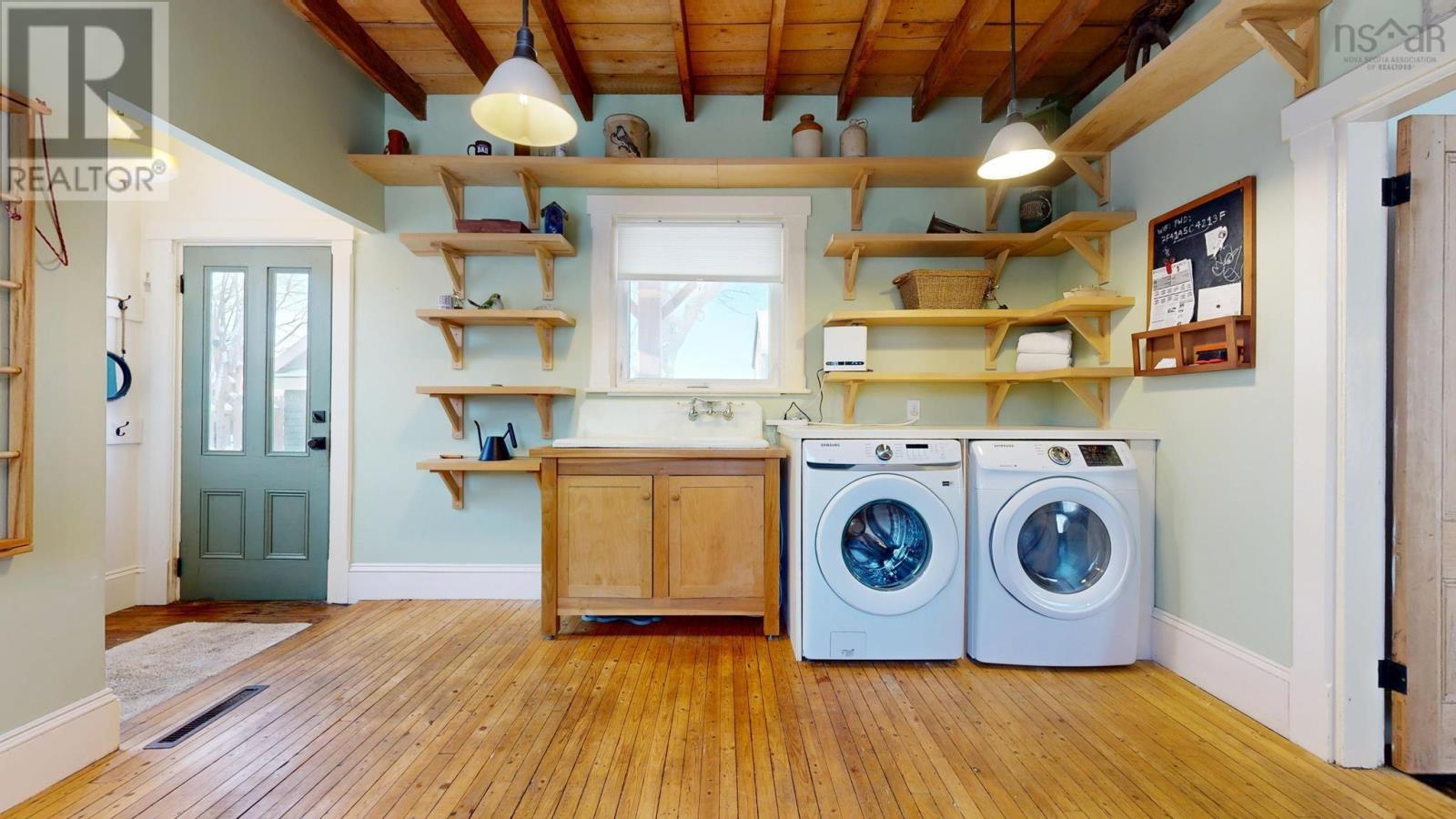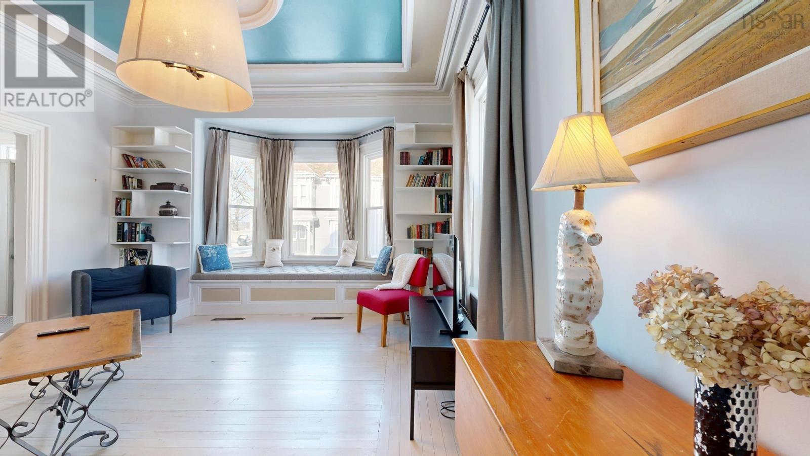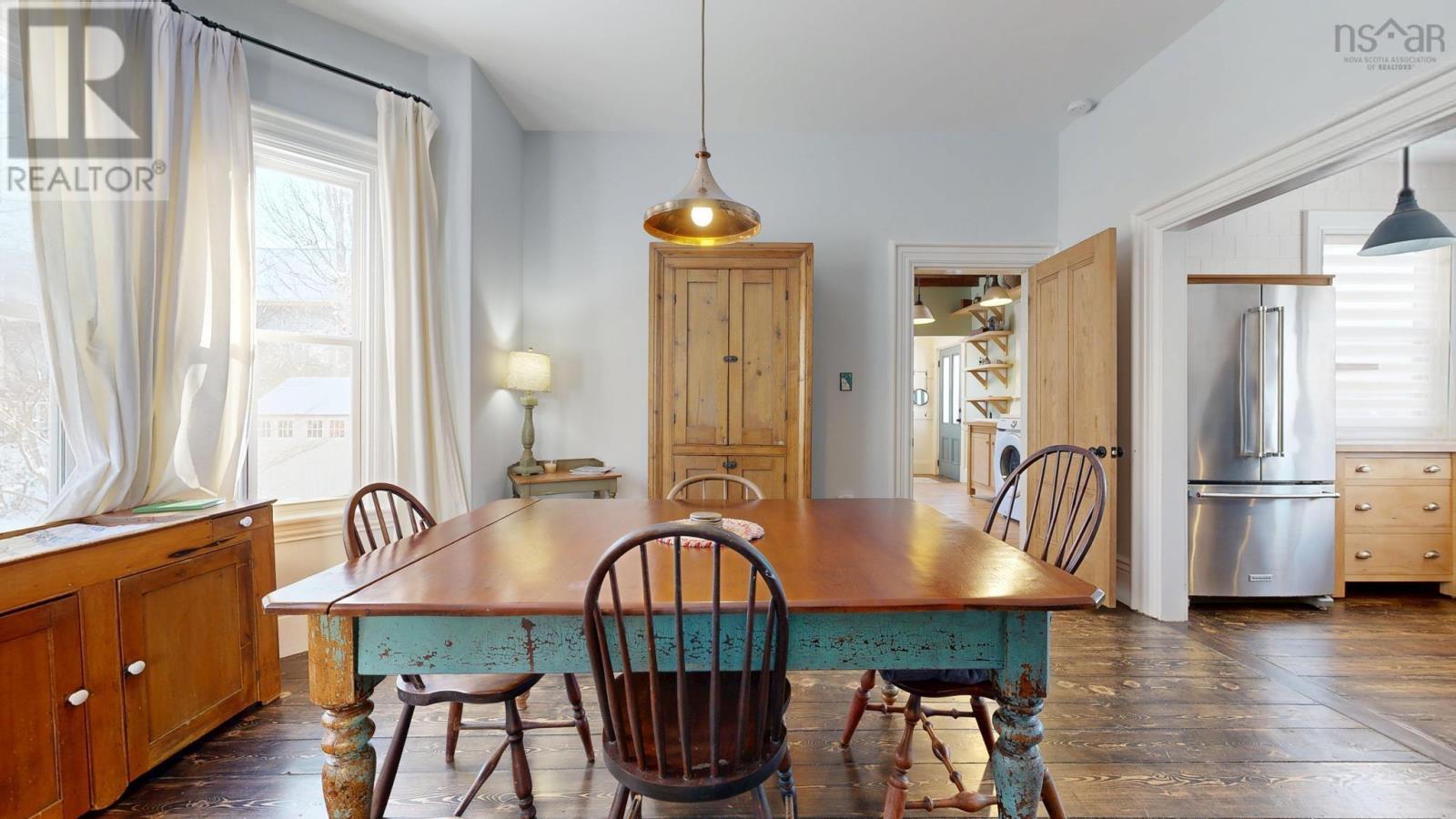 Steeped in history and timeless elegance, this circa-1867 Queen Anne Revival home is ideally located in the heart of historic Shelburne, just steps (approximately 40 metres) from the towns picturesque waterfront harbour. Set on a beautifully landscaped double lot, this striking two-and-a-half-storey residence showcases classic architectural details, including a steep gabled roof, intricate trim work, a welcoming front bay window, and a distinctive bay-over-bay design on the side elevation. Thoughtfully renovated and restored in 2019, the home seamlessly blends modern comforts with preserved historic charm. The main level offers a spacious mudroom with laundry, an updated kitchen, a 3-piece bath, and elegant formal dining and living rooms. The living room is a true highlight, featuring crown moldings, a cozy bay window with built-in window seat, and a wood insert fireplace that adds warmth and character. Upstairs, the home features three comfortable bedrooms, two full baths, and a generous upper foyer that enhances the sense of space and light. Modern efficiency meets peace of mind with the addition of a central heat pump and air conditioning system installed in 2024, while the original oil furnace remains in place as a reliable backup. Adding to the homes versatility is a charming detached bunkie, measuring approximately 12' x 17'6", complete with power and heatideal for additional guest accommodations, a private studio, home office, or flexible living space. This exceptional property offers a rare opportunity to own a lovingly restored historic home in one of Nova Scotias most charming seaside townswithin walking distance of the harbour, shops, and cultural attractions of Shelburnes renowned historic district. (231727885)