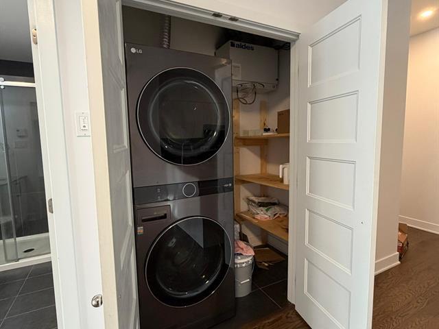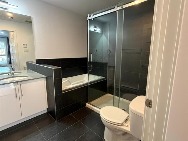 Beautiful and luxurious 940 sq. ft. condo with 10-foot ceilings, fully equipped with refrigerator, stove, dishwasher, washer and dryer, wall-mounted air conditioner, air exchanger, indoor parking, and storage space. Available as of January 1st, it offers 2 bedrooms including one with a walk-in closet, and 2 full bathrooms. Bright open-concept living area. Private balcony, shared rooftop terrace, elevator, and well-maintained building. Ideally located between Montréal-Ouest and NDG, close to services, Carrefour Angrignon, and the Sud-Ouest train station. Credit check required. (43105897)