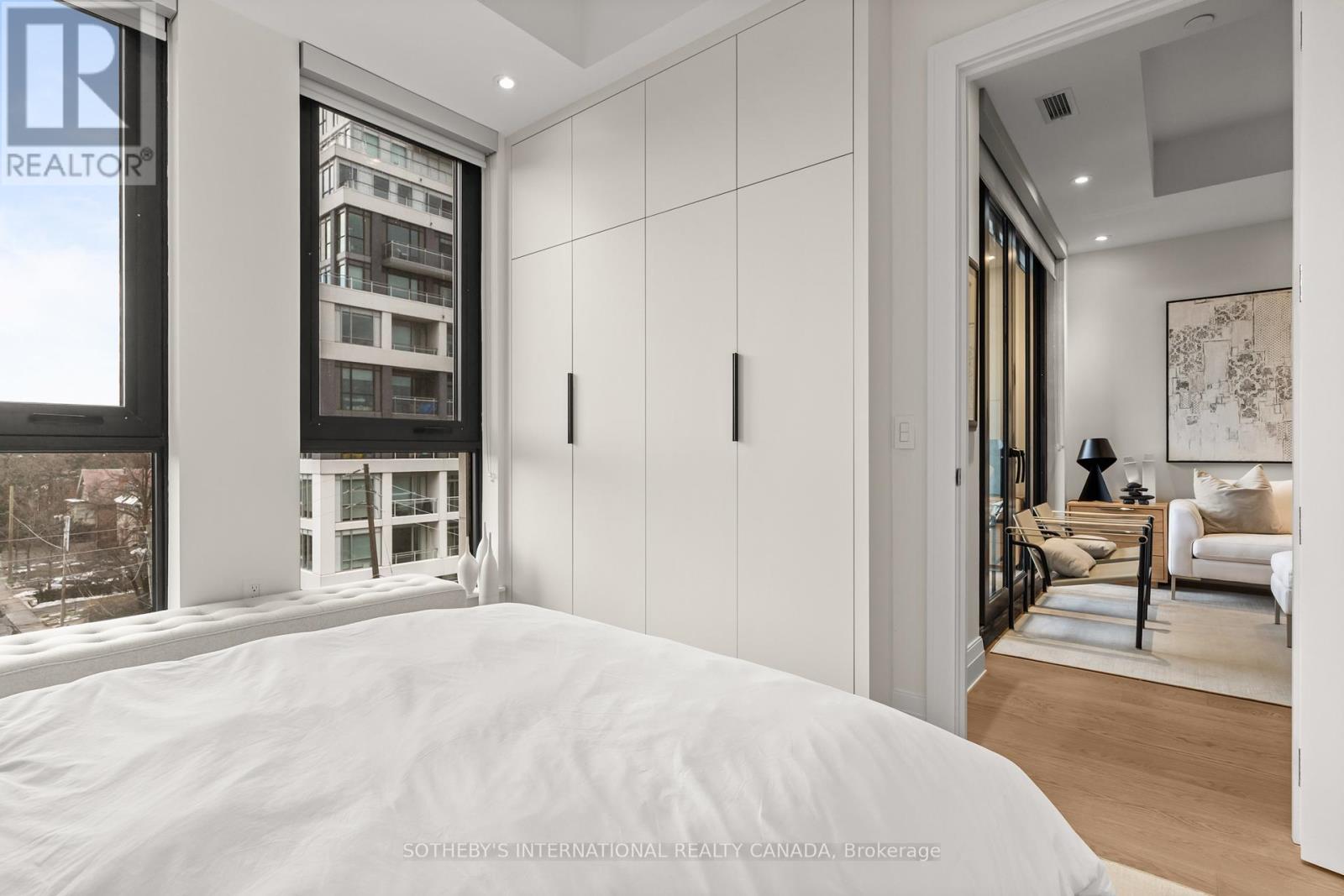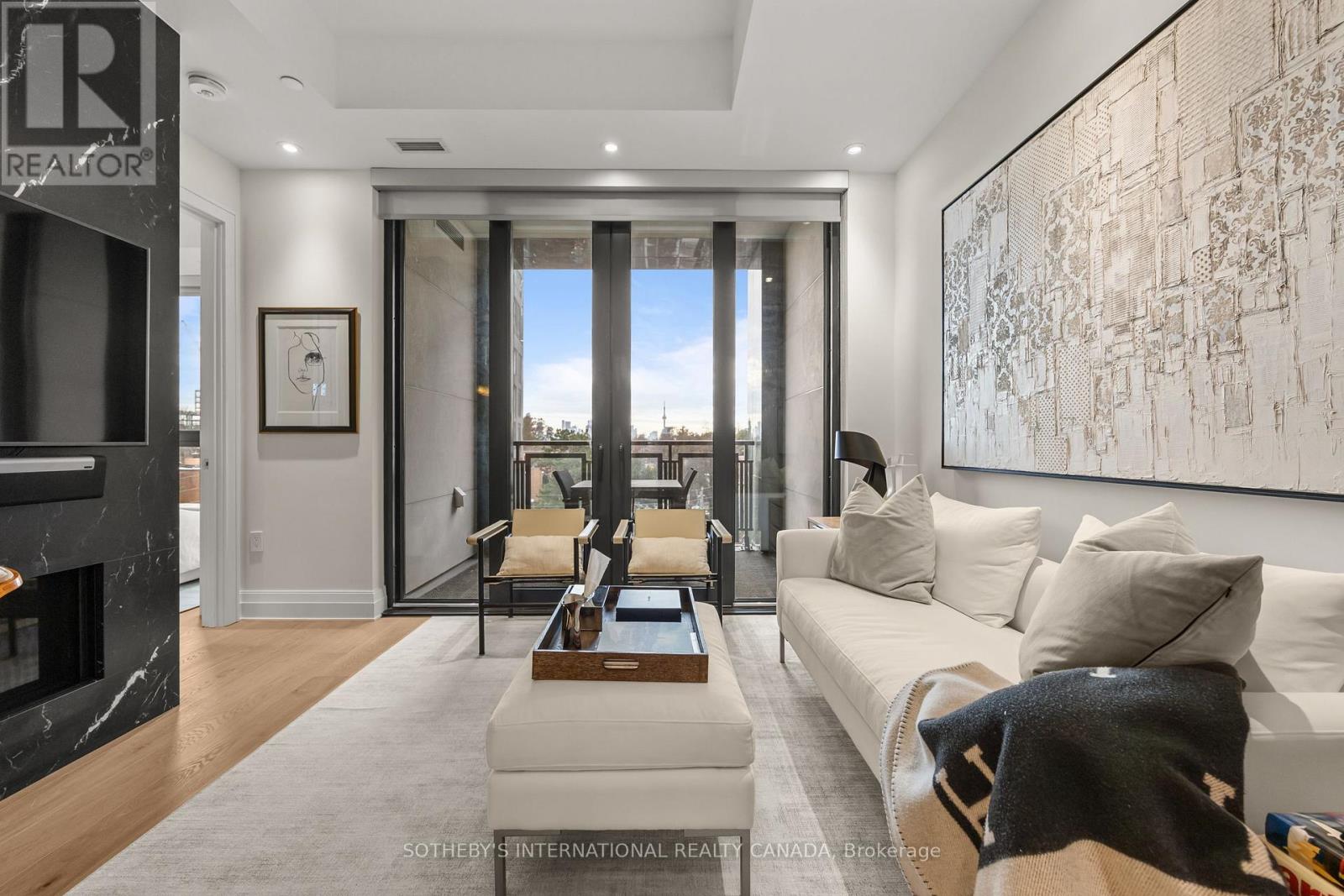A beautifully appointed suite at Forest Hill Private Residences. Spanning over 825 total SF with soaring 10' ceilings, this one-bedroom plus den residence has been professionally reconfigured to maximize space, function, and flow. Flooded with natural light through floor-to-ceiling windows, the sophisticated open-concept layout features wide-plank flooring, elegant finishes, and a chef-inspired kitchen by Cameo Kitchens with Miele top-of-the-line integrated appliances, bespoke cabinetry, thick quartz countertops, and a custom island. The smartly enhanced kitchen features a custom-built pantry shared with a large closet. At the same time, the den has been cleverly repurposed to expand on its original size, while the primary suite includes finely milled built-in cabinets and a spa-inspired ensuite thoughtfully designed for a stylish, practical lifestyle. The suite seamlessly extends to a private balcony with a gas BBQ hookup. Cozy up to the warmth of a sleek, marble-clad fireplace while enjoying a unique, tree-lined, unobstructed view of the CN Tower and Toronto skyline. Residents enjoy hotel-style personalized concierge and security services, along with five-star amenities, including valet parking, a cutting-edge fitness centre, a pet spa, an indoor pool opening onto lush private terraces, a wine collection, and a 20-seat dining room. A la carte services include sports and theatre bookings, personal shopping, luxury excursions and travel security details, grocery delivery, and a wide array of maintenance and wellness services. Steps from Forest Hill Village, premier private schools, shops, parks, and transit, this exceptional suite offers a rare, elevated lifestyle opportunity at one of the city's most prestigious addresses. (41847696)
