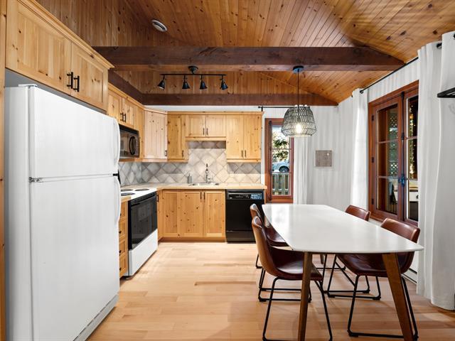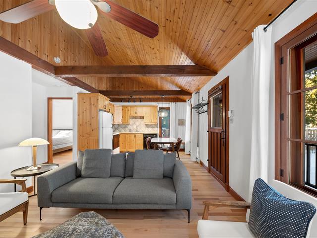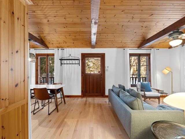 Duplex bordering Lake Ouellette in Val-Morin, featuring two self-contained units: one one-bedroom garden-level unit with direct lake views and a wood-burning stove, and a second two-bedroom unit upstairs with a large covered balcony overlooking the stream. Part of a domain consisting of two distinct properties that must be purchased together. Acquiring the full property allows for various projects: family, multigenerational living, vacation use, or investment. Intimate natural lot with direct lake access, close to the P'tit Train du Nord and year-round activities. GST/QST must be added to the asking price (41157661)
