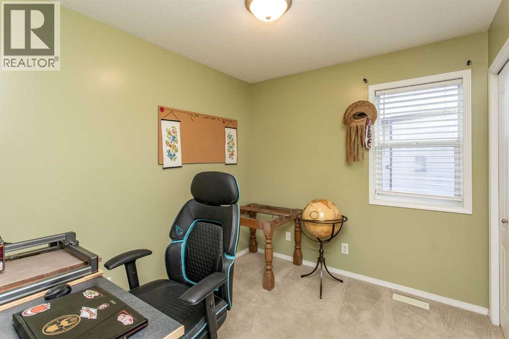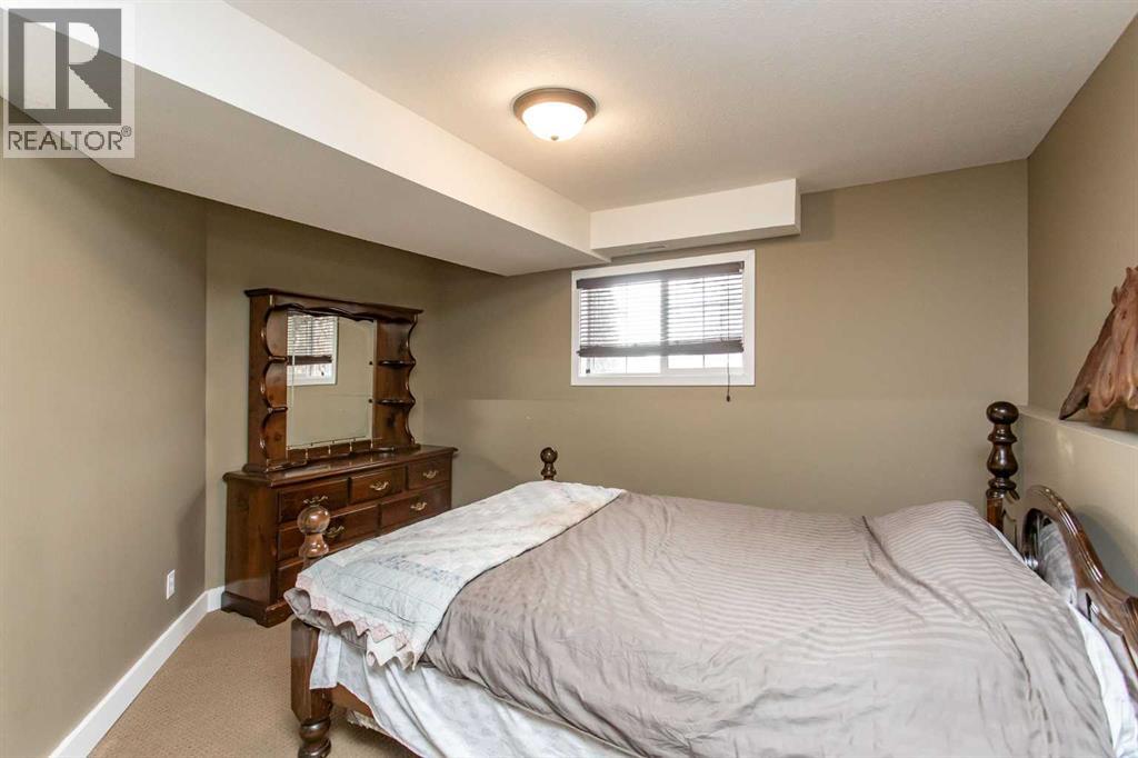 This well-kept bi-level offers a practical layout and comfortable living space in a convenient location. Built in 2002, the home features vinyl windows, asphalt shingles, and vinyl siding for low-maintenance ownership. The main floor offers an open design with a relatively spacious living room highlighted by a large front window, flowing into the dining area off the kitchen. The kitchen is functional and bright with linoleum flooring, light oak cabinets, laminate counters, a pantry, and a modern deep stainless steel sink. Three bedrooms are located on the main level, all finished with carpet and standard closets, with the primary bedroom offering a slightly larger footprint and closet. A 4-piece main bathroom includes linoleum flooring, an oak vanity, and a white tub/shower surround.The fully developed basement adds valuable living space, featuring a large family room with carpet flooring and pot lighting throughout. The basement bedroom is generously sized with a larger closet, and a second 4-piece bathroom offers a tiled tub surround and a more modern vanity. Outside, the home sits on a large pie-shaped lot with a wood deck overlooking a fenced, grassed yard. The rear gravel parking pad provides ample off-street parking and offers excellent potential for a large future detached garage or shop. Located just around the corner from a small playground, steps to a larger park, close to Holy Family Elementary and Deer Park Shopping Centre, and backing directly onto a walking trail, this home offers a great balance of space, location, and everyday functionality. (31477249)