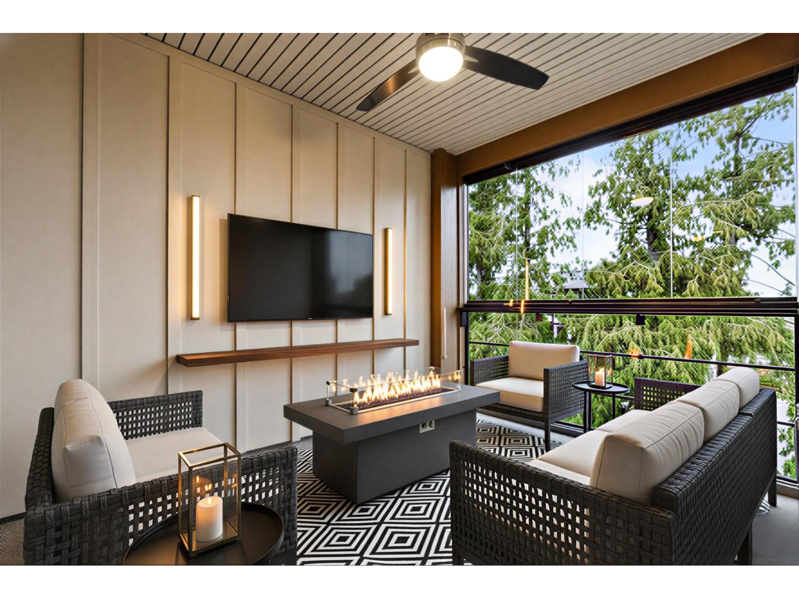 FOREST RIDGE by Quadra Homes. This stylish 1 bed, 1 bath condo includes a 134 sq. ft. solarium with retractable glass and BBQ gas hookup for year-round use. Features a gourmet kitchen with 5-burner gas range, double oven, quartz countertops, and white shaker cabinets, plus high ceilings throughout. Extras include A/C, energy-efficient heat pump, heated bathroom floors, frameless glass shower, 2 underground parking stalls, and a private roll-up storage garage. Minutes to Crescent Beach, Hwy 99, King George Blvd, and shopping - perfect for comfortable coastal living with urban convenience. (32276719)