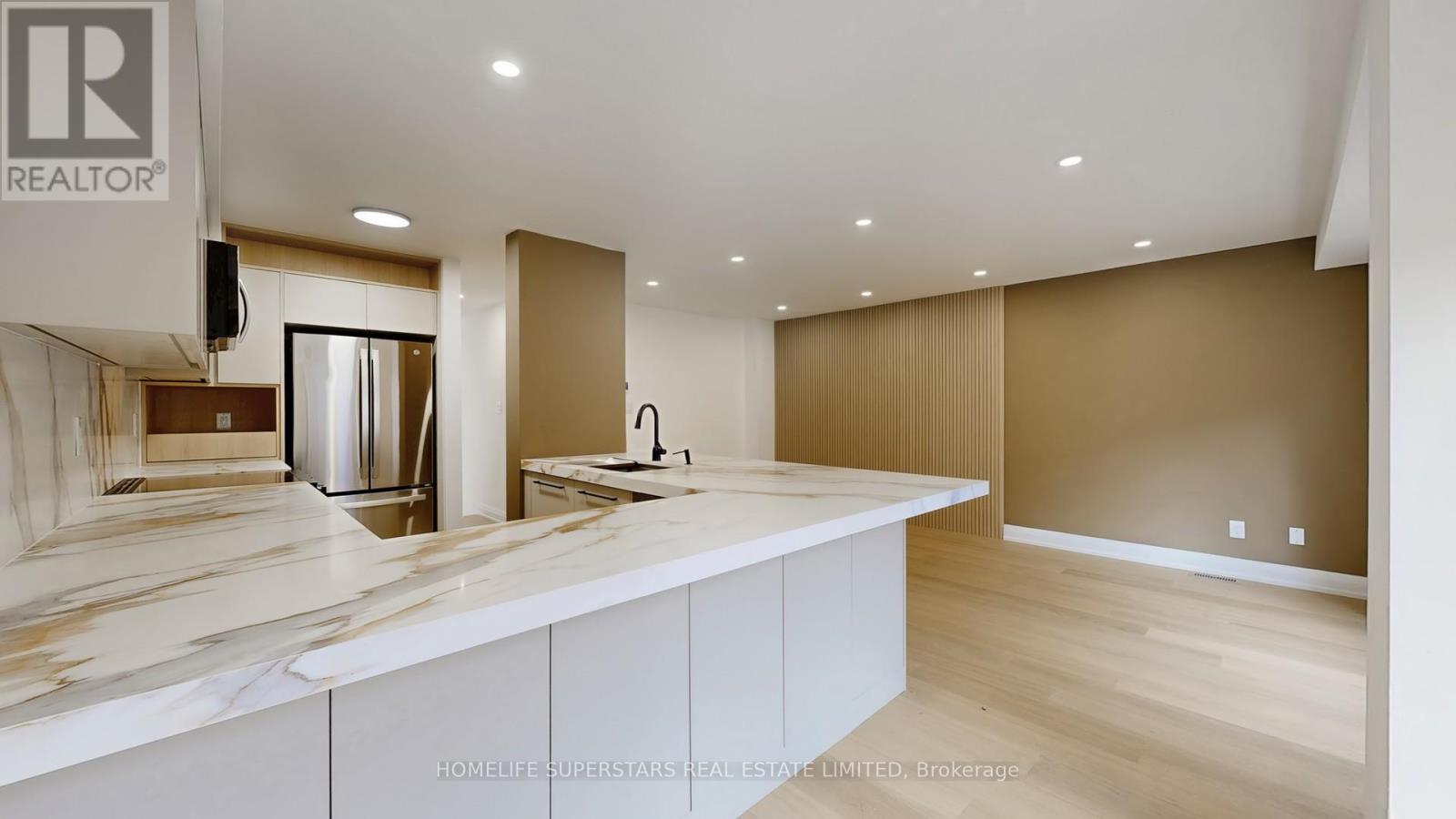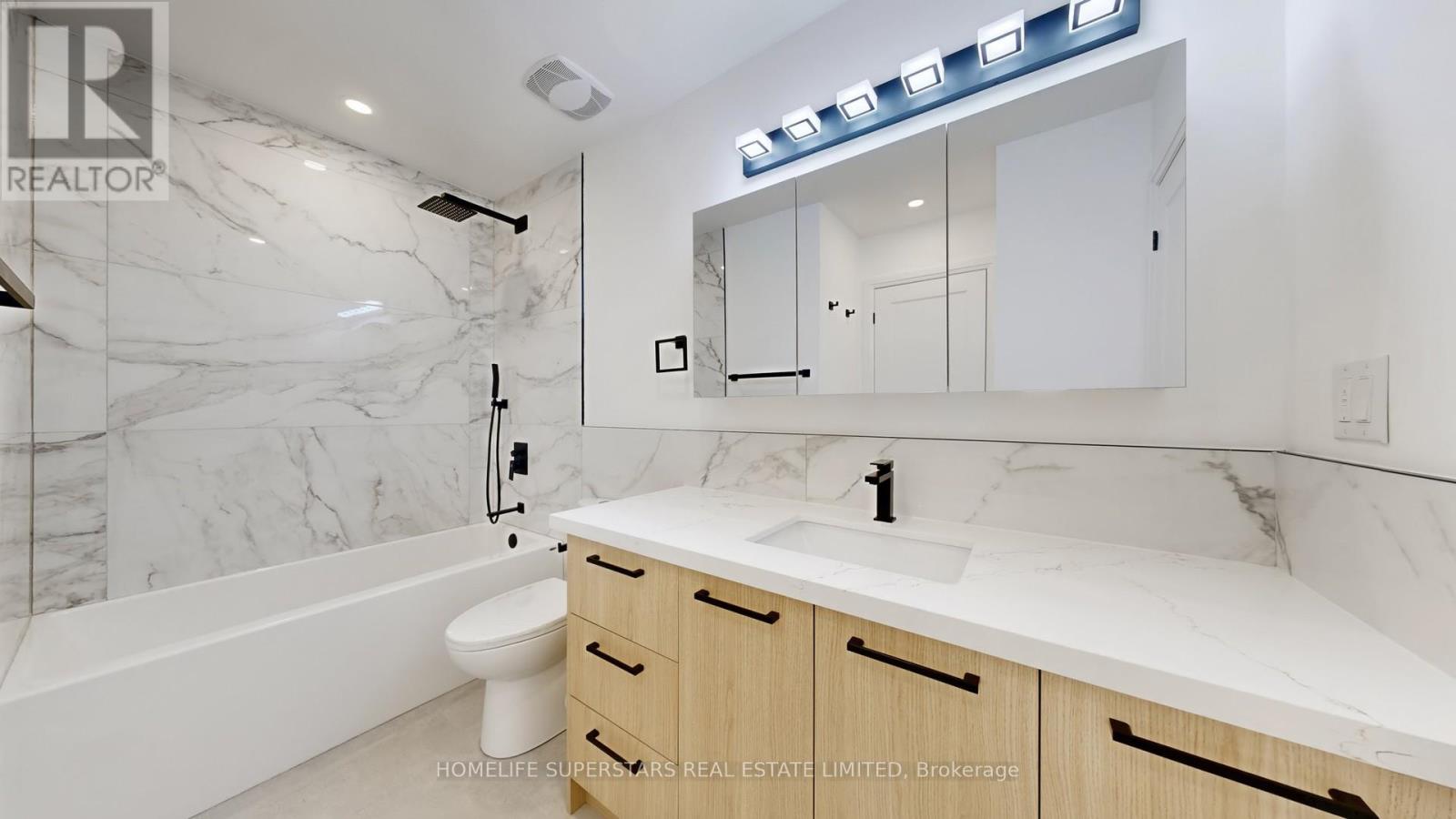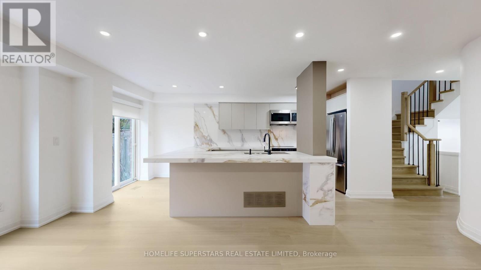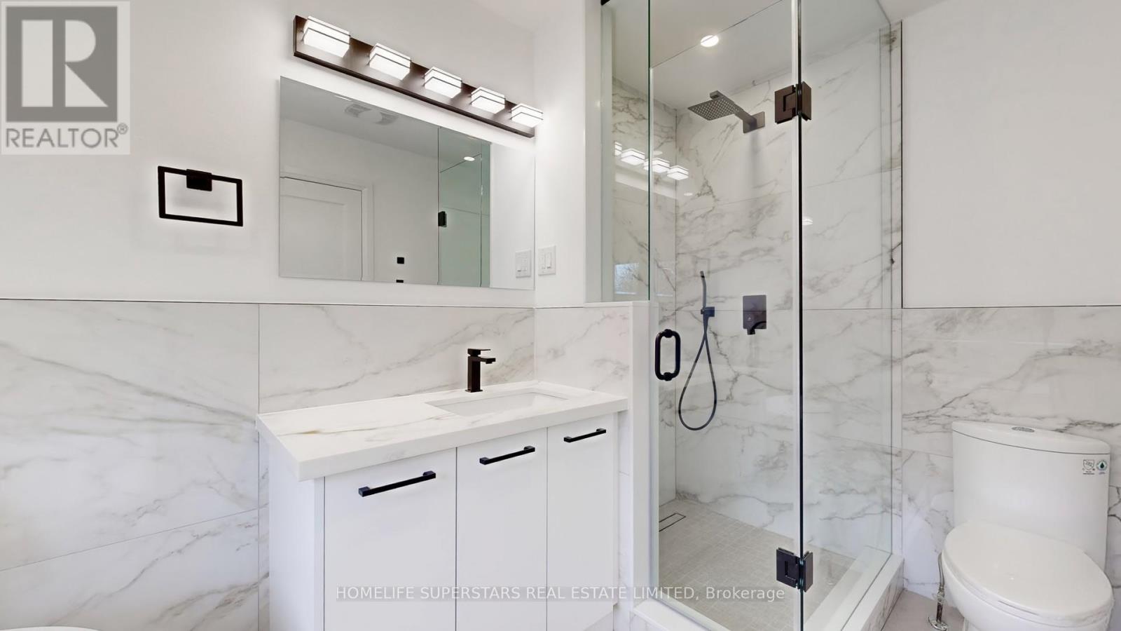 Welcome to 3 Playfair Rd! The main floor welcomes you with an elegantly tiled sunken foyer and powder room, flowing into a spacious open-concept kitchen, living, and dining area. Entertain with ease at the oversized island (seating 6-8), featuring premium quartz counters, a custom stone column, and a full suite of new appliances-including a fridge with water and ice maker.Upstairs, discover three bright bedrooms including a secondary bedroom with semi-ensuite, and a convenient upper laundry closet for daily efficiency. The impressive primary suite offers a walk-in closet, private beverage bar, and spa-inspired ensuite with a freestanding soaker tub and standup shower.The finished basement delivers further versatility with an additional bedroom and ensuite, generous living area, and dedicated storage. Throughout the home, enjoy cohesive upgraded finishes, custom cabinetry, elegant stonework, and refined black hardware accents. (41850477)