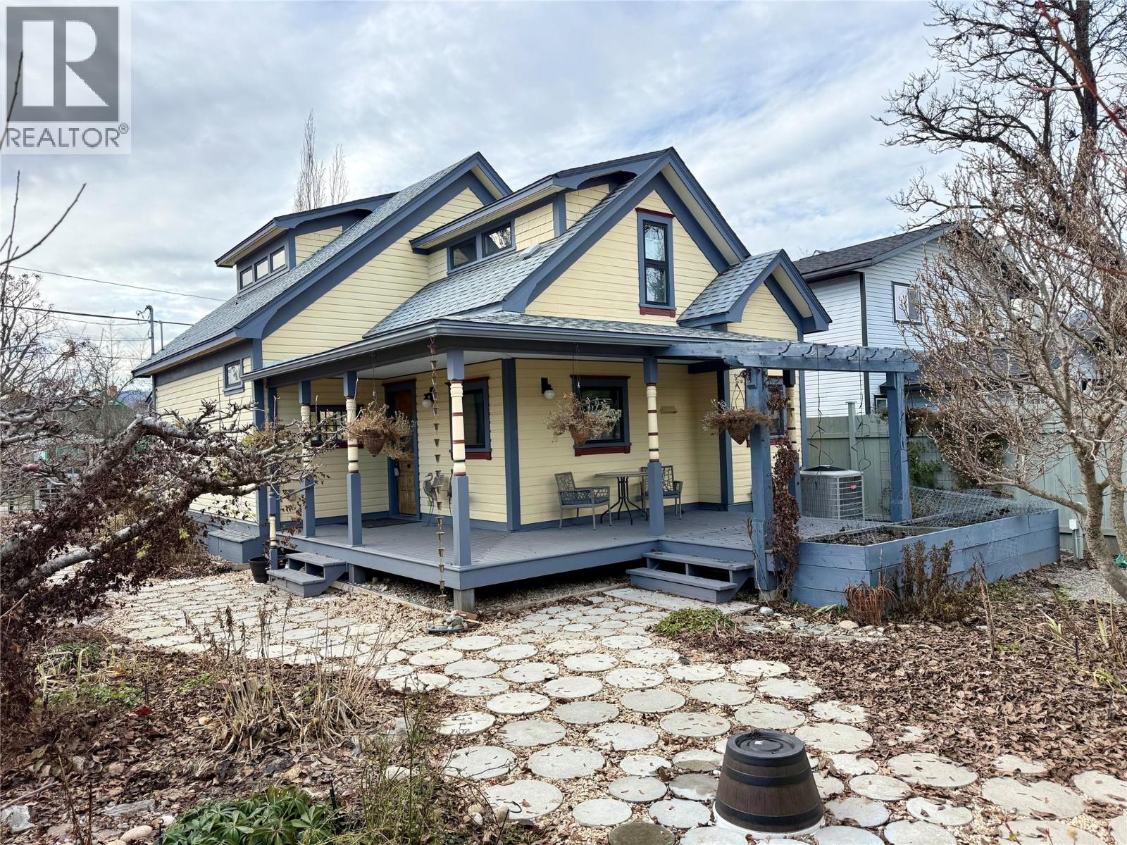 Welcome to this beautifully updated 2-bedroom, 2-bathroom heritage home in Grand Forks, BC, ideally located just steps from the Trans Canada Trail. Beginning in 2006, the home underwent an extensive restoration renovation taken right down to the studs, with all electrical, plumbing, ducting, heating, and insulation fully replaced and upgraded, blending peace of mind with timeless character. Inside, classic craftsmanship is showcased through crown moulding, oversized baseboards, and an abundance of custom built-ins that add both charm and everyday functionality. These traditional details are thoughtfully paired with tasteful modern finishes throughout. The inviting living space features a cozy gas fireplace, while air conditioning ensures year-round comfort. A 200-amp electrical panel easily supports today’s lifestyle needs. Outside, the fully landscaped and fenced yard offers a private retreat with alley access, RV hookup, and a detached workshop or single-car garage—ideal for hobbies, storage, or additional parking. Two covered decks extend the living space outdoors, perfect for relaxing or entertaining in any season. Move-in ready and rich in character, this home offers the ideal balance of heritage charm, comfort, and quality upgrades in a desirable Grand Forks location close to outdoor recreation. (39574454)