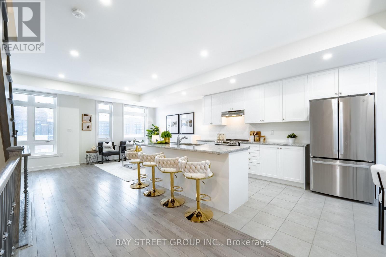 Jubilee Towns By Arista Homes!! Elegant 2-Year-New POTL Townhome in a Prime Richmond Hill Location. This beautifully designed residence featuring a highly functional layout with two separate entrances, soaring 9-ft ceilings, hardwood staircases, Bright & contemporary atmosphere with oversized windows, lots of pot-lights, and no carpet throughout. The open-concept living and dining areas with electrically powered window coverings flow seamlessly into a gourmet kitchen highlighted by a large center island with granite countertops; Dining area with designer lighting and direct walk-out to wooden patio space, perfect for entertaining! Three spacious bedrooms upstairs, two Bathrooms featuring modern vanities topped with quartz countertops, walk-in closet in Primary Bedroom! Additional highlights include direct garage access, ample storage, 200-amp electrical service, HRV fresh-air system, Smart home systems, sliding screen nets to both balcony doors, unfinished basement offering endless potential, and recent updates throughout! Steps to Richmond Green Park, Richmond Green Secondary School, Thornlea S.S. French Immersion, and Costco; Quick access to Hwy 404 for effortless commuting! Freshly painted and move-in ready! **POTL fee of $177.14/month** (41852463)