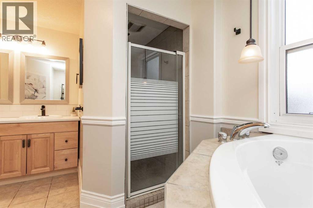 Beautifully renovated and expanded in 2007, this 2 story home is sits on a gorgeous tree lined street. Boasting over 2000 sq ft with 8-10' additions of all new construction. Offering a fenced front yard section for added privacy, huge covered front porch ideal for relaxing and savoring a morning coffee on plus decorative stone pillars give it a rustic wood feel. Follow inside to find the open and inviting floor plan. Complimented with maple hardwood floors and ceramic tile throughout for durability. Large family room with picture window allows plenty of natural light to come in plus the crown molding along the ceiling lines add to the finishing. An absolute chefs dream for a kitchen design offering full surround Silestone quartz counters, undermount sink, built in oven and microwave, loads of cabinet space and drawers, coffee bar station plus a center island with gas cook top, hanging exhaust fan and Butcher Block counter top. Huge walk in pantry with floor to ceiling shelving plus there is a trap door leading to an additional storage space below. Enjoy the crackling free standing wood fireplace just off the dining area adding ambience to a winter day. The sumptuous main level Primary bedroom is a true retreat away. Plenty of room for your King size furniture, large walk in closet plus a spa like en suite offering dual vanity, walk in double shower plus a soothing two person corner air tub. Head upstairs and you will find three large, comfortable bedrooms with ample space providing flexibility for growing families or guest accommodations. Fully developed basement offers a great amount of space for recreation and entertainment. Enjoy your favorite streaming in the private media room with trayed lighting plus your own wet bar. Games area perfect for the kids to have fun in plus the office/den is great for work space or studio area. The mechanical/laundry room is equipped with wash basin, functioning toilet, two newer hot water tanks, high efficiency furnace plus b uilt in vac. Main plumbing stack has been replaced with back water valve plus new electrical panel in home as well. Home was also renovated to incorporate thermal break technology. Staggered stud framing greatly mitigates cold penetration, manages heat penetration and also minimizes noise transfer for added comfort. There is a spacious covered back deck which even offers a gas line for the bbq allowing you to grill year round. The beautiful mature yard comes with its own food forest label boasting raspberry, blueberry, black current bushes plus an apple tree. Firepit area great for sitting around and making memories. Large 24 x 24 heated garage ideal for vehicle storage plus there is even room for RV parking as well there is a garden shed perfect for seasonal items. Home is perfectly located just a short block to the incredible Waskasoo trail system and within walking distance to a number of schools, Kerry Wood Nature Center and for entertainment head to the Memorial Center for live performances. (31484302)