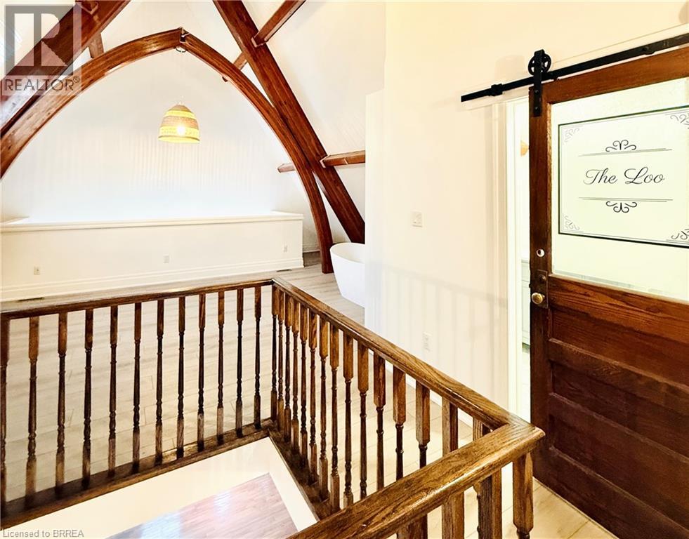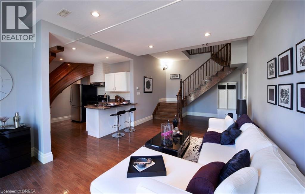 Have you ever wanted to live in an old church, of course fully converted and renovated to high heaven? Located in the heritage district on Brant Ave, you are minutes from the 403, shopping, parks, the trails, and of course the Grand River. This one bedroom unit is absolutely stunning. The primary bedroom will leave your jaw on the floor, and the cozy vibes are felt the moment you step inside. Just under 1,000 square feet, this loft-style home is filled with character and natural light. The great room impresses, original windows, and rich hardwood floors that ground the space while still letting it feel bright and airy. Thoughtful attention has been paid to preserving the charm of the original building while seamlessly blending in modern finishes. The Bathroom and bedroom have been renovated giving the vibes of living in a boutique hotel. The kitchen is stylish and functional, with granite countertops, and stainless steel appliances. A breakfast bar anchors the space, perfect for casual meals, entertaining, or enjoying your morning coffee. The hardwood flooring continues throughout, creating a polished feel. The wood staircase is a statement all on its own, leading to a landing that works perfectly as a home office or study area. Continue upstairs and you will find an impressive loft bedroom with plenty of closet and storage space. The view overlooking the great room adds to the uniqueness of the space, making it feel truly special. A clean and timeless four piece bathroom completes the upper level. Centrally located near trails, golf, parks, museums, the library, and close to both Wilfrid Laurier University and Conestoga College, this is carefree condo living at its best. Ideal for a busy professional or an active downsizer who wants something unique, low maintenance, and full of character. This is not just a place to live. It is a lifestyle with history, warmth, and undeniable presence. Don't delay, call your REALTOR® today. (70004640)