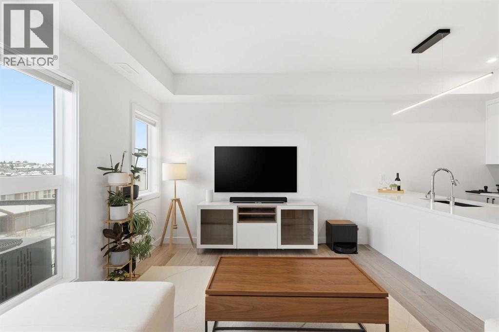 Located in the sought-after community of Springbank Hill, this stylish, air-conditioned two-bedroom, two-bathroom townhome offers over 1,200 sq. ft. of beautifully designed living space. Immaculately cared for and tastefully finished, the home includes an attached single garage along with an additional parking stall just outside the front entrance—an added convenience rarely found.The interior showcases a bright, open-concept layout framed by expansive windows that capture impressive views and flood the space with natural light. Luxury vinyl plank flooring, custom window coverings, and contemporary finishes create a warm yet modern atmosphere. The kitchen is both elegant and functional, featuring upgraded appliances, quartz countertops, a large island, and a generous pantry, complemented by a dedicated dining area perfect for hosting or everyday living.The spacious primary suite offers a walk-in closet and a four-piece ensuite, while the second bedroom is ideally positioned next to an additional four-piece bathroom. A large laundry and storage room adds practicality, and the ground-level entry welcomes you with a flexible bonus space—ideal for a home office, fitness area, or hobby room—plus convenient under-stair storage.Step outside to your private balcony with a gas line ready for summer BBQs. This pet-friendly complex boasts low condo fees and exceptional walkability, with an on-site retail plaza and Aspen Landing just moments away for shopping, dining, and services. Easy access to downtown, Stoney Trail, and the mountains completes the package, offering a lifestyle defined by comfort, convenience, and connection. (31486321)