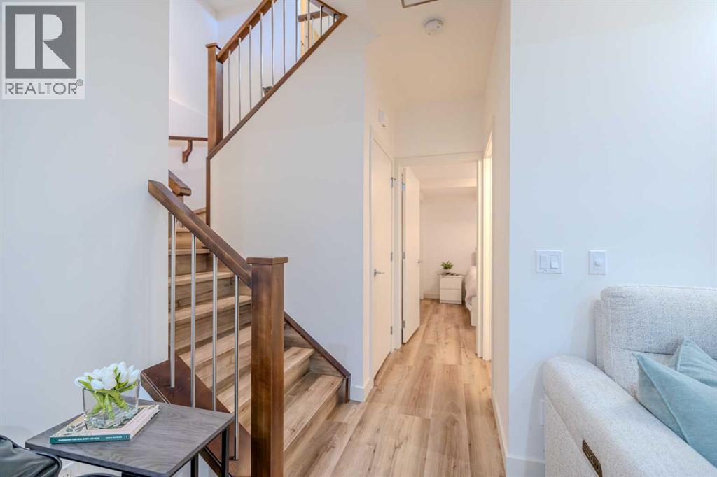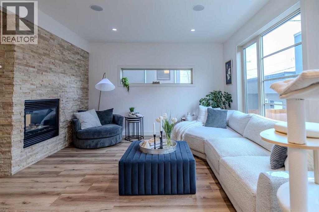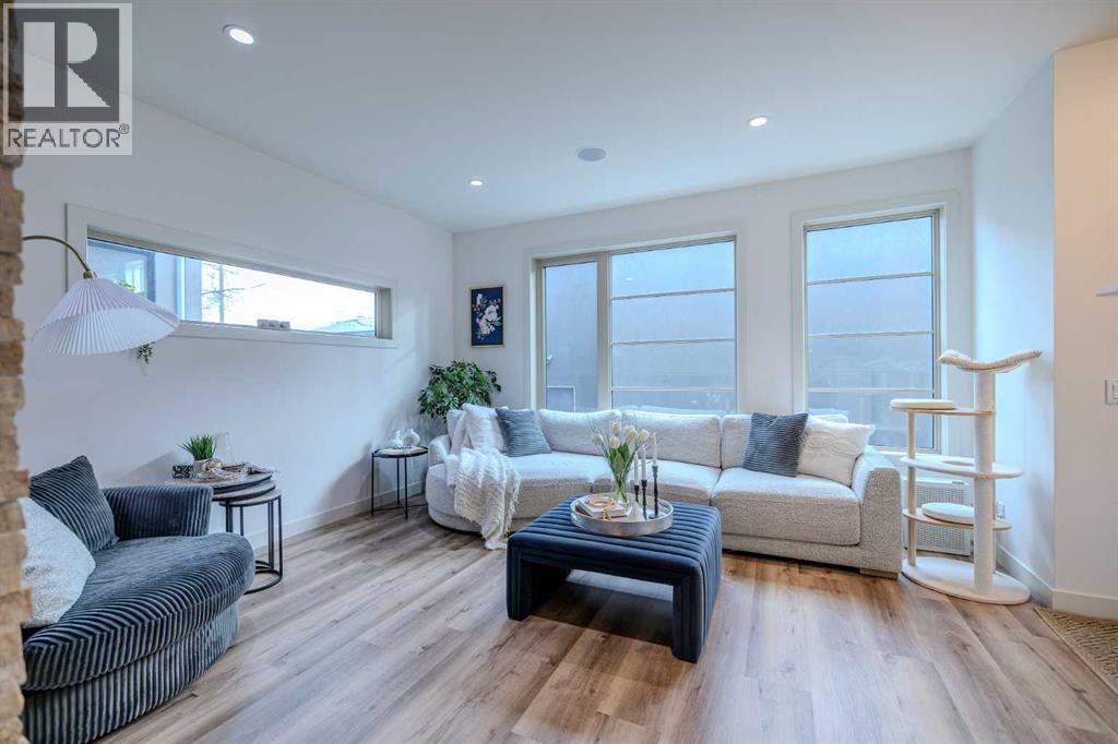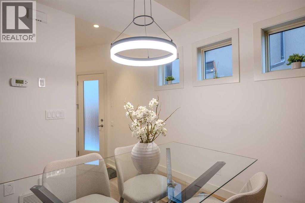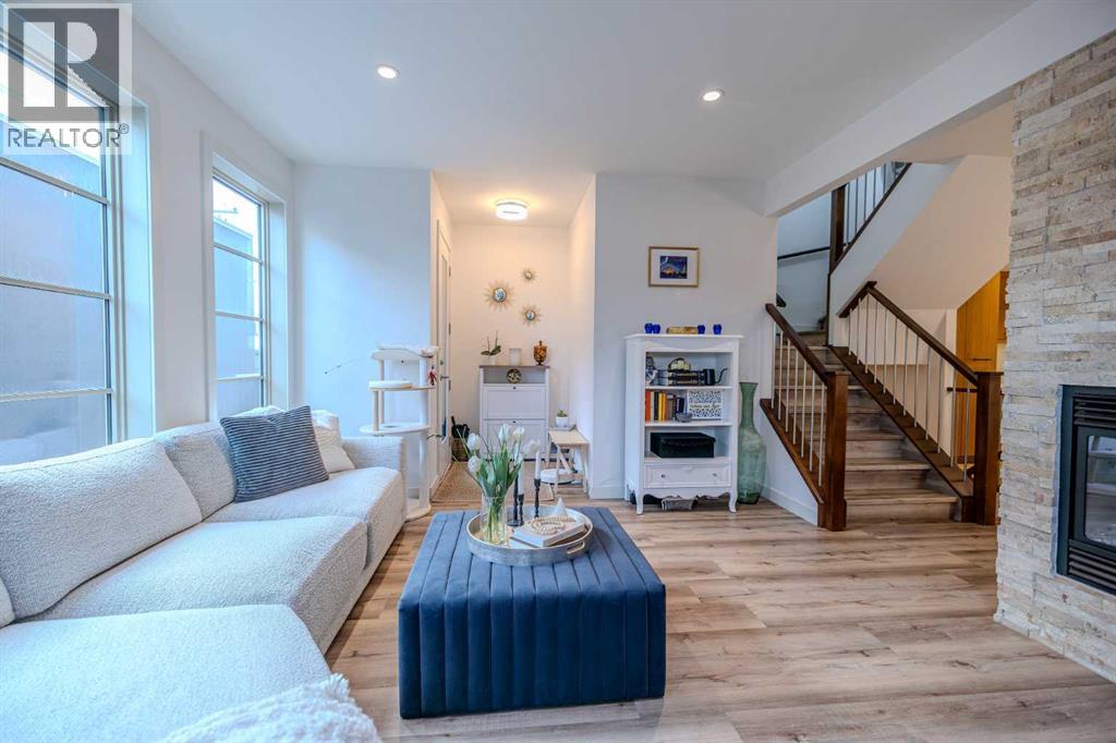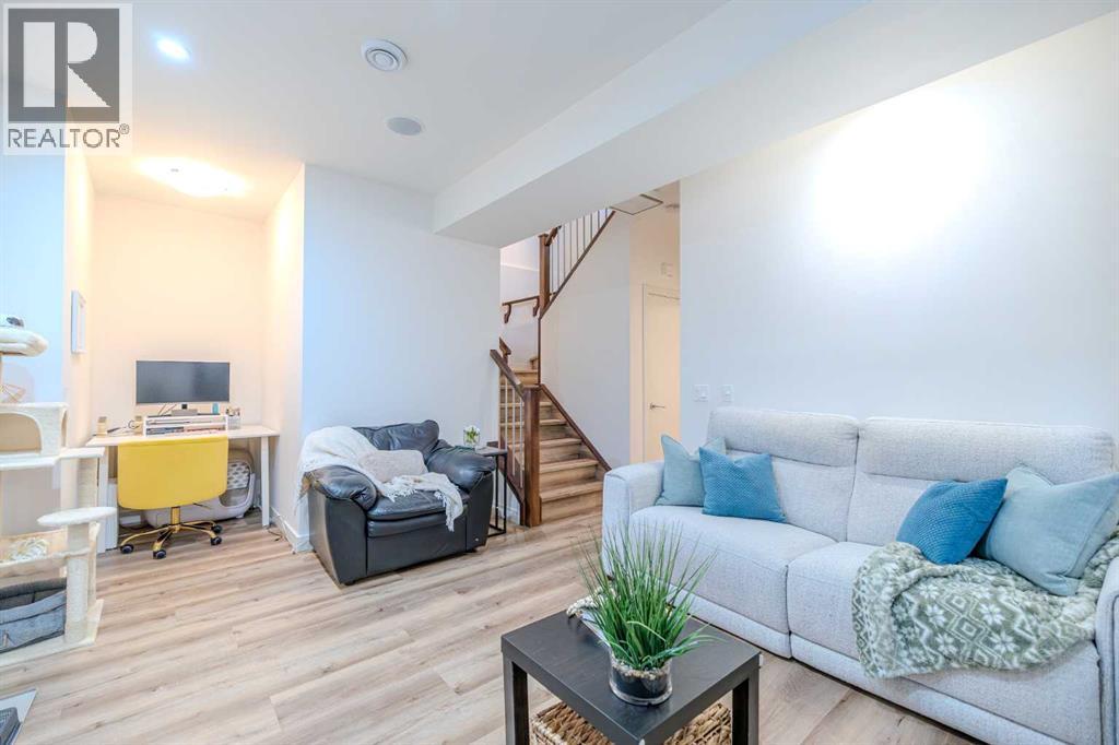 Well maintained, modern, and quiet 2-storey townhome offering nearly 2,000 sq ft of developed living space in the heart of Killarney. This 3-bedroom, 3.5-bath home features 2 bedrooms up and 1 down. The primary bedroom offers high ceilings, double sinks, a spacious shower, and walk-in closet. The second upstairs bedroom includes its own ensuite, plus convenient second-floor laundry.Fully developed basement with a large third bedroom, 4-piece bathroom, and second living room—ideal for guests or a home office. Recent updates include new flooring, fresh paint, and updated light fixtures. Features include a double-sided fireplace between the living and dining rooms, quartz countertops, gas range, stainless steel appliances, and ample storage.Low condo fees, single detached garage, and an excellent inner-city location—just a 3-minute walk to the LRT for an easy commute downtown, with quick access to 17 Ave, Crowchild Trail, transit, and local amenities. (31489706)