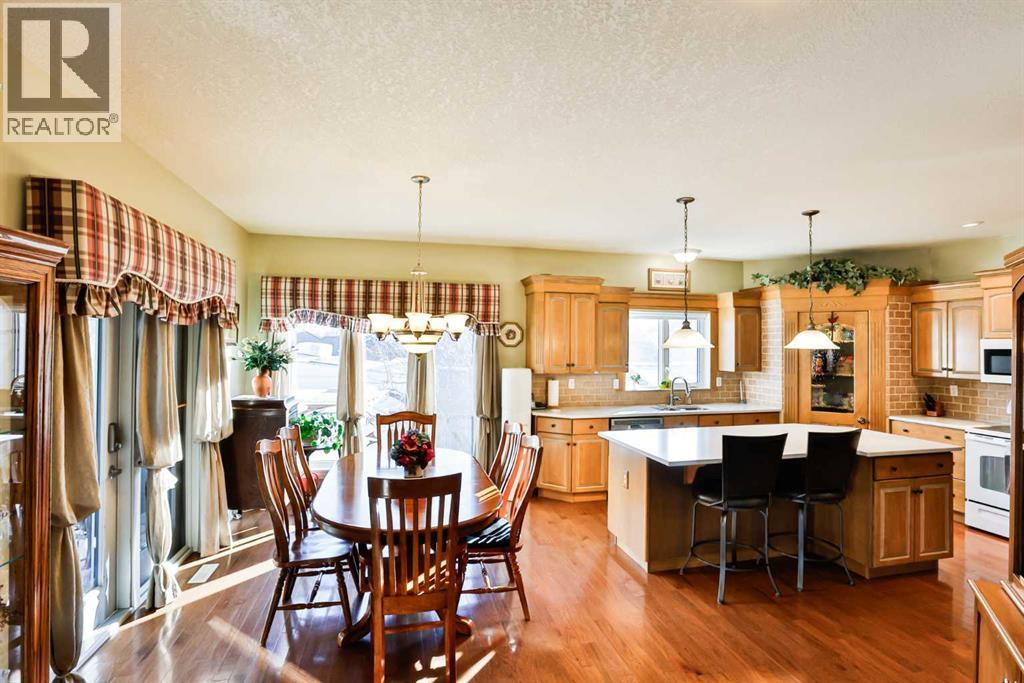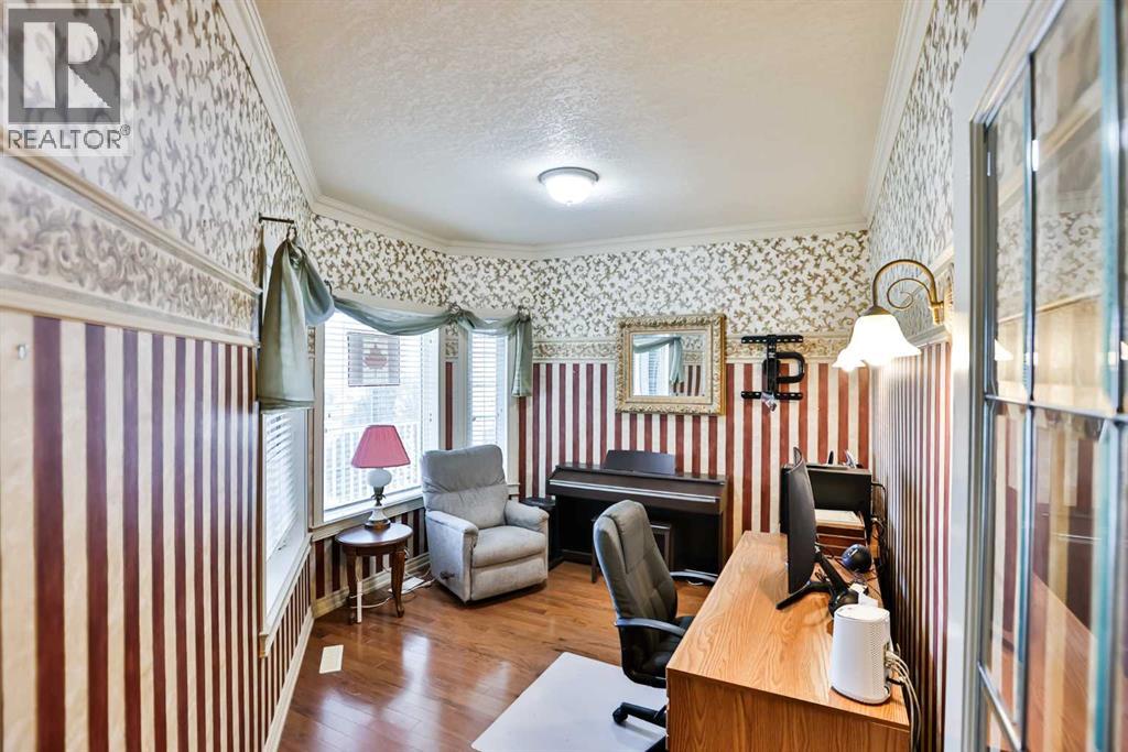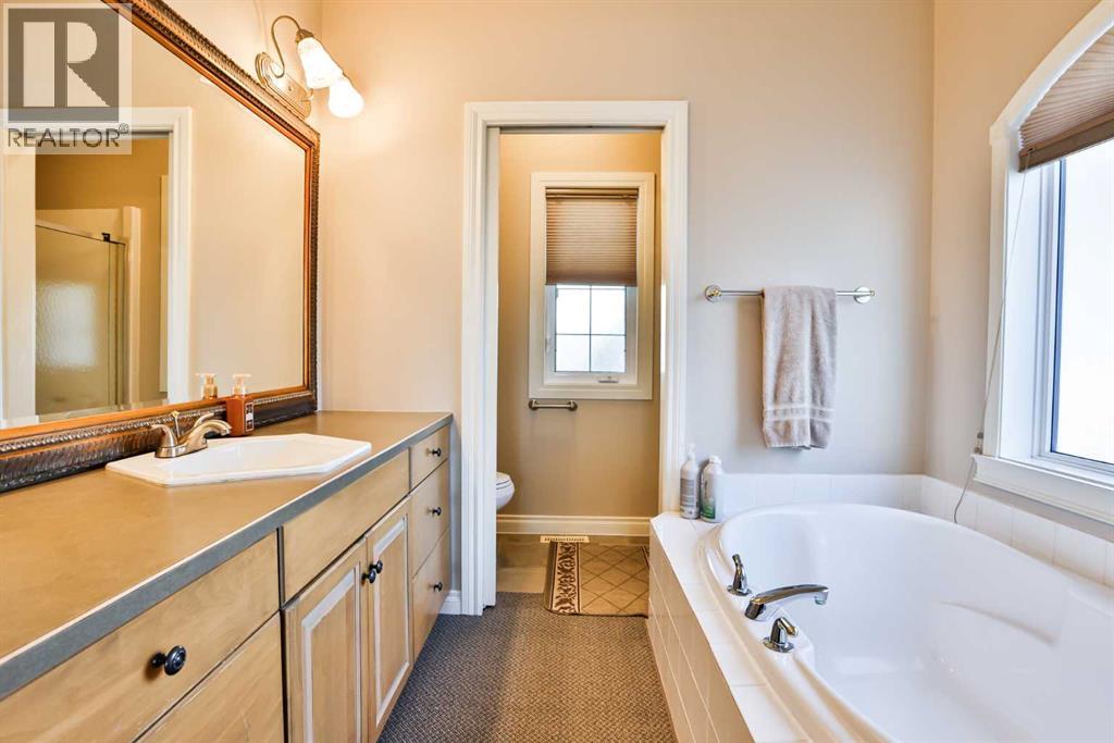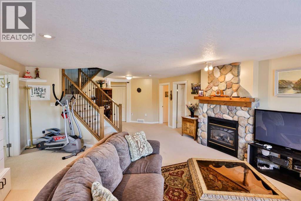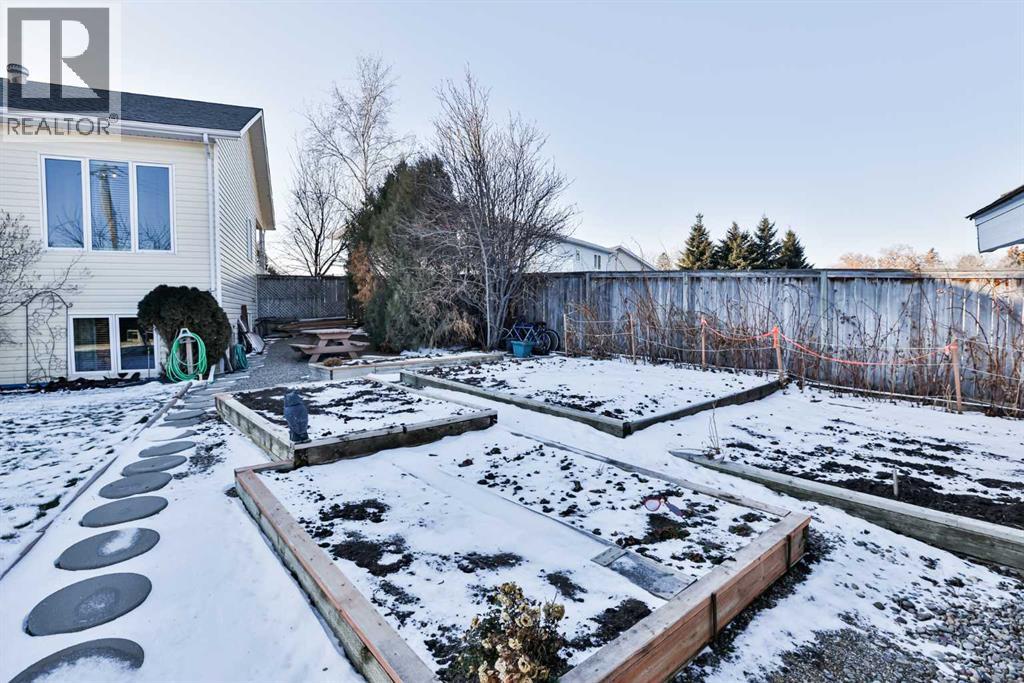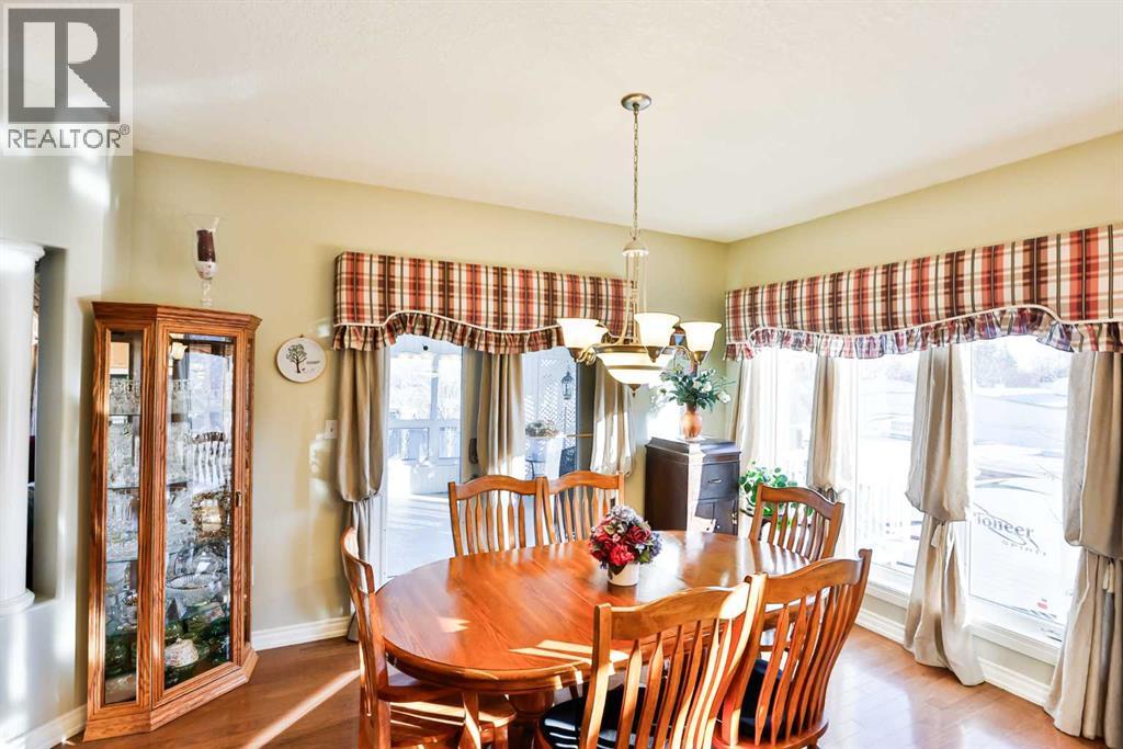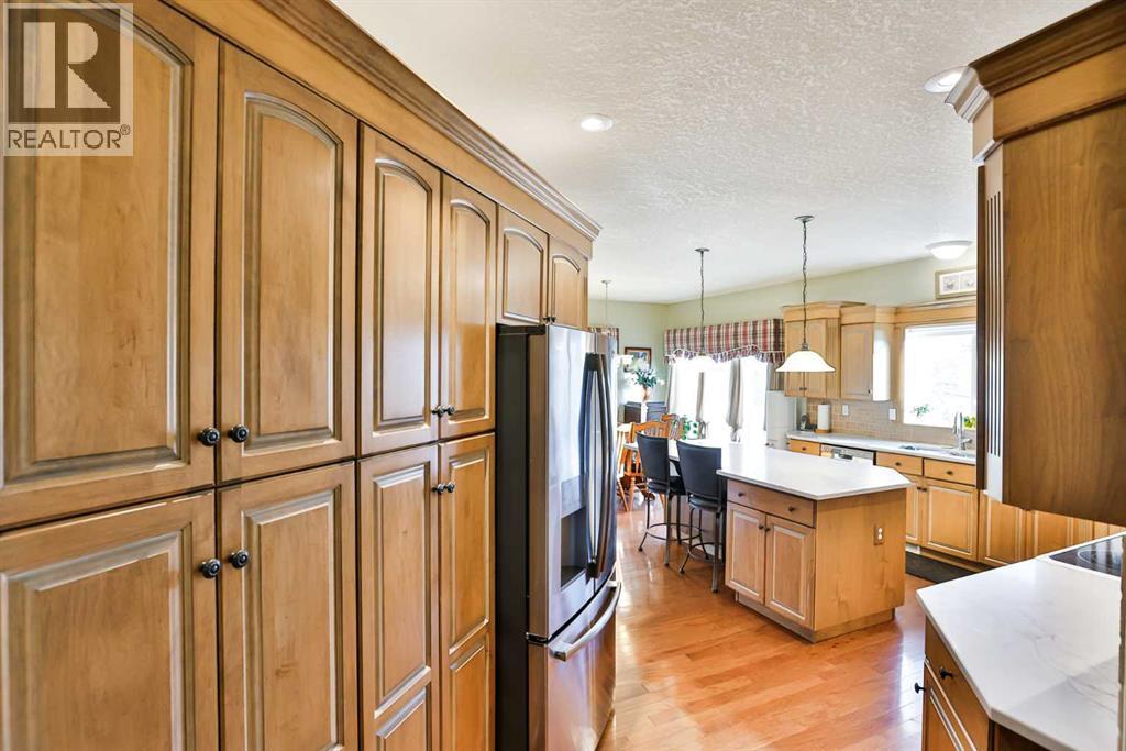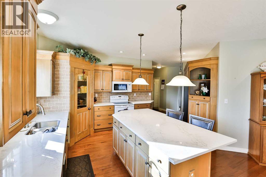This sprawling, well maintained bungalow was thoughtfully custom designed with one level living in mind. From the moment you drive up you'll appreciate the curb appeal, and especially the lovely front porch with space to sit and take it all in. There is no shortage of space here! Each room is a fantastic size. Through the front door you are greeted with a nice size foyer, which leads to your office just off the front door, and then flows in to your large living room with the most incredible wall of windows across the back of the home. A cozy fireplace rounds off this great space. You will absolutely love the massive kitchen island with newer quartz countertops, and there are cabinets for days in here. Not only is there an entire wall of extra cabinets, but there is a corner pantry as well. A lovely window right over the kitchen sink is the perfect touch to finish off this space. The kitchen flows nicely in to a good size dining room, and just off that is your enclosed deck that you will love using all year round. The primary bedroom is nicely tucked away from the living area, giving you your own private oasis. It comes complete with a walk in closet, and a 4 piece ensuite with soaker tub, shower, and a nice size vanity too. Also on the main floor is a large laundry room that doubles as a fantastic craft/hobby space. There is another whole wall of cabinets, and a built in desk to sew or craft all your masterpieces. The half bath is nicely tucked away in the back entrance, away from your living area, and just off the garage. We haven't even got to the basement yet...but it was carefully and thoughtfully designed as well. Down the stairs with custom wrought iron railing, you enter in to your cozy family room with another gas fireplace, and you'll immediately note the huge windows across the back of the space as well. The walkout basement provides the most amazing natural light that floods this whole space, and hardly feels like a basement at all. There are 3 large bedr ooms all with nice size closets, as well as another full four piece bathroom with tub, shower, and a large vanity with plenty of storage. You'll love the big cold storage room with prep space, and two additional storage closets as well as more storage space under the stairs. This home has it all! Located in an absolutely unbeatable location, this home is tucked quietly away at the end of a cul de sac on a fantastic size pie lot, with RV parking off the back lane. This home is centrally located and is just a few minutes walk to K-12 schools, groceries, pharmacies, the cutest coffee shop, swimming pool, tennis courts and so much more. There is a nice rear patio space under your upper deck to enjoy the day, and a shed and garden space as well. We can't forget the oversized attached double garage either! You truly need to see this home to appreciate each thoughtful detail that was poured in to it. Give your favourite Realtor® a call and come see everything this beautiful home has to offer. (31491619)