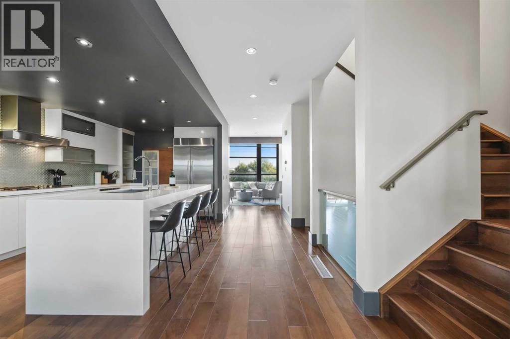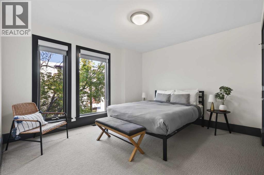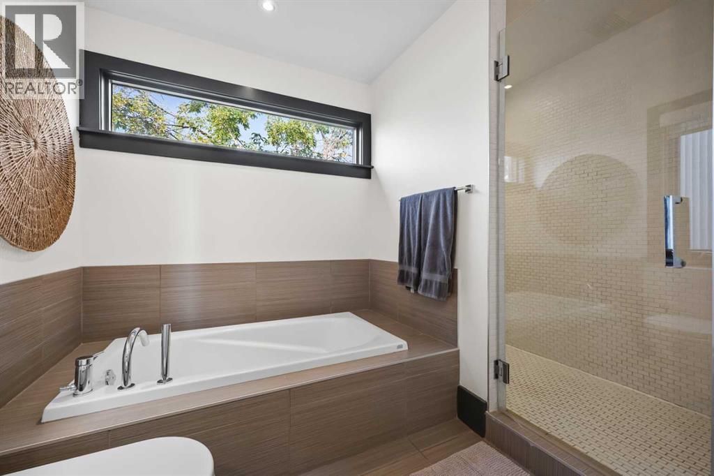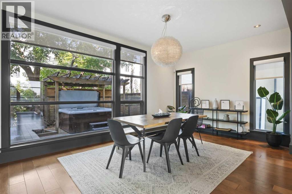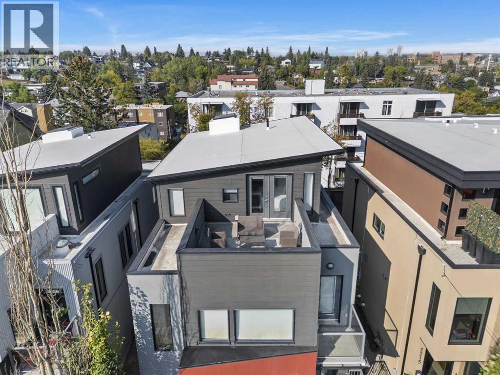 Nestled in the prestigious inner-city enclave of Bankview, this exceptional nearly 3,000 sqft architectural gem is a masterful blend of West Coast sophistication and timeless elegance with breathtaking views of the City Skyline from the Master Bedroom! As an established Airbnb property all furniture and furnishings are included, this property allows you to seamlessly take over the reins and continue reaping the rewards of this venture. Exquisite walnut millwork, soaring ceilings adorned with exposed beams, and expansive walls of glass frame captivating skyline views while flooding the home with natural light. The gourmet kitchen is a true showpiece, featuring premium stainless-steel appliances, a professional-grade gas range, an oversized quartz island with breakfast bar, and a seamless connection to the refined dining area—perfect for hosting in style. Beyond, your private outdoor sanctuary awaits, complete with a pergola-covered lounge, hot tub ($12k value and was craned into the backyard!), and lush mature landscaping, offering the ultimate in alfresco luxury. The second level showcases a dramatic vaulted-ceiling flex space, two generously appointed bedrooms, and a lavishly finished spa bath. Ascend to the top-floor primary suite, a serene retreat boasting an opulent ensuite, custom walk-in closet, and an exclusive terrace with unobstructed, glittering city views. The lower level offers yet another versatile living space with direct access to the double attached garage. A rare offering that transcends the ordinary, this residence is a statement in refined inner-city living for those who demand beauty, comfort, and distinction in equal measure. Book your private showing today! (31491453)